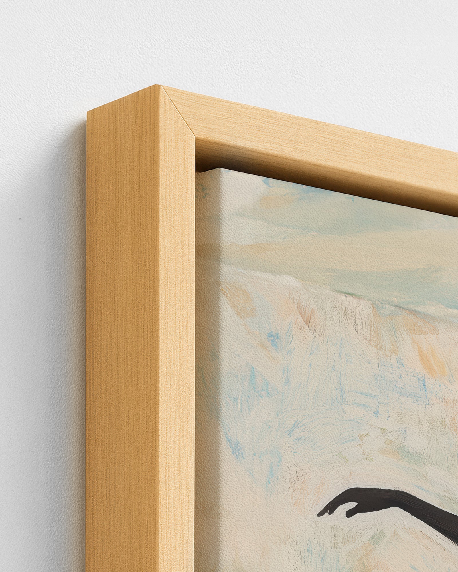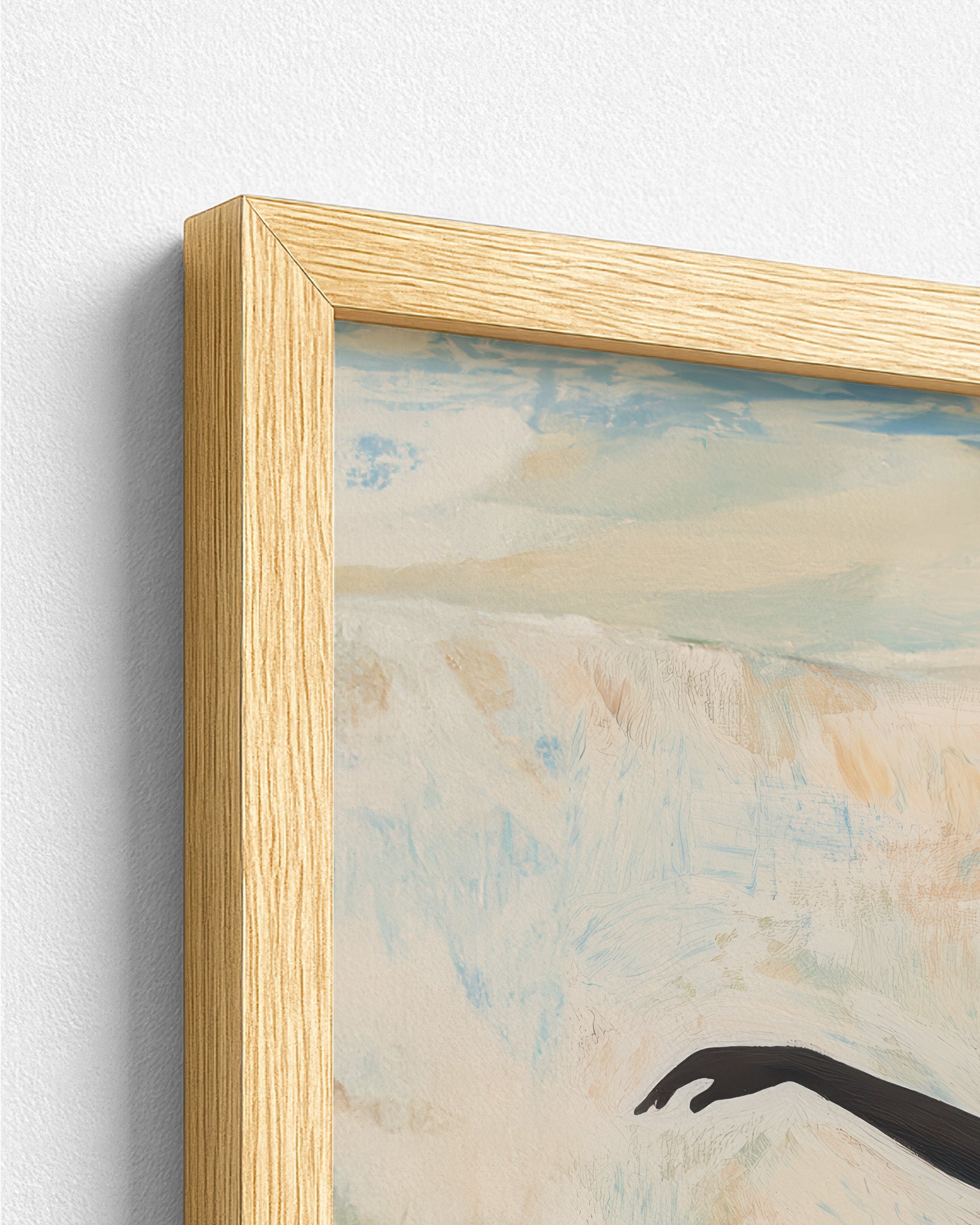 Premium artwork printed on high-quality paper, professionally mounted within a durable pine wood frame.