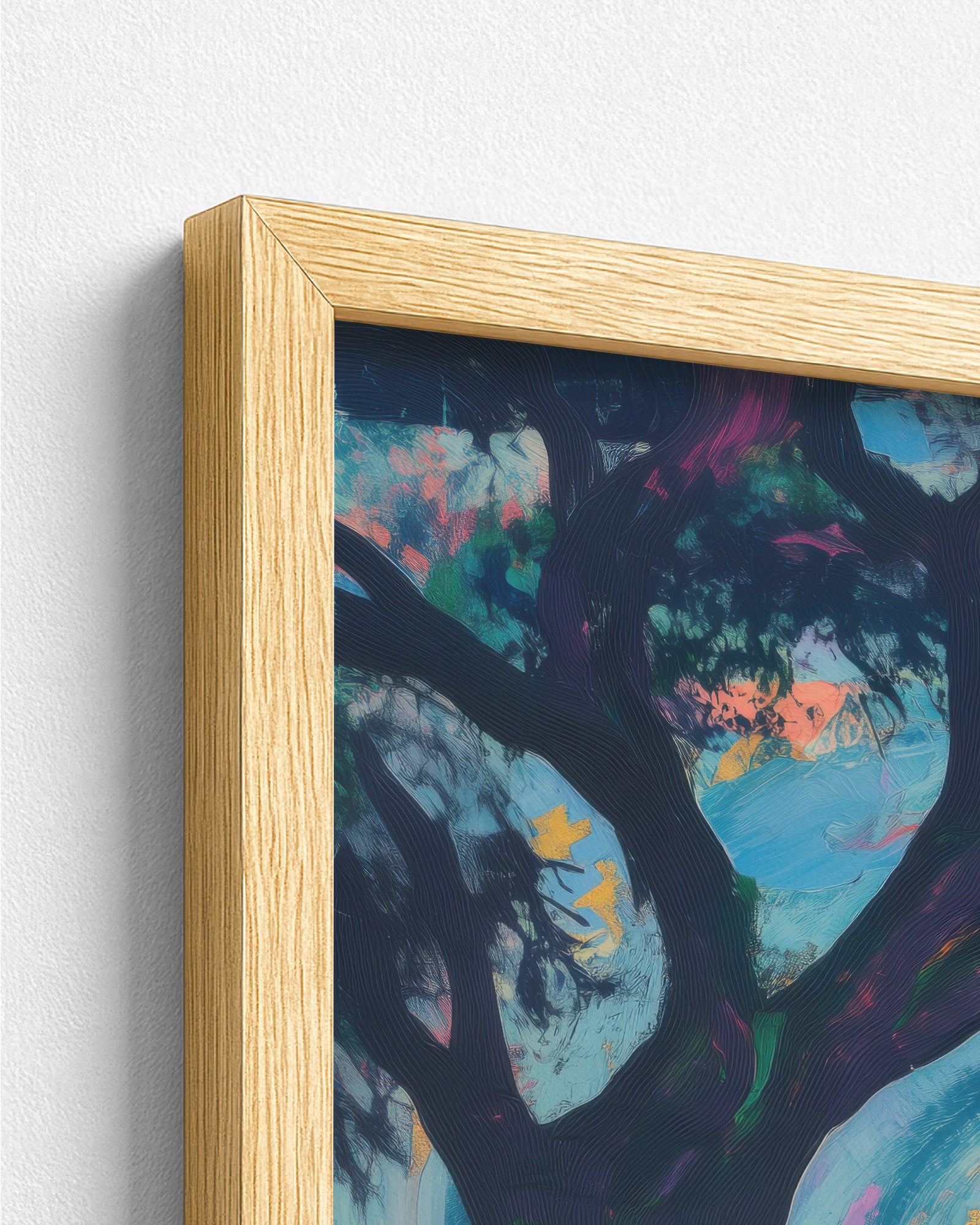 Premium artwork printed on high-quality paper, professionally mounted within a durable pine wood frame.