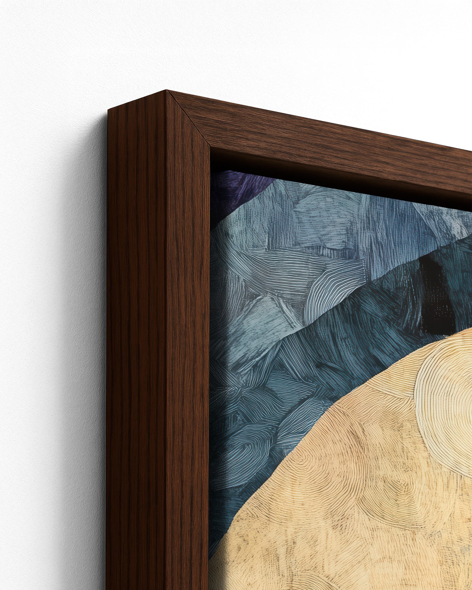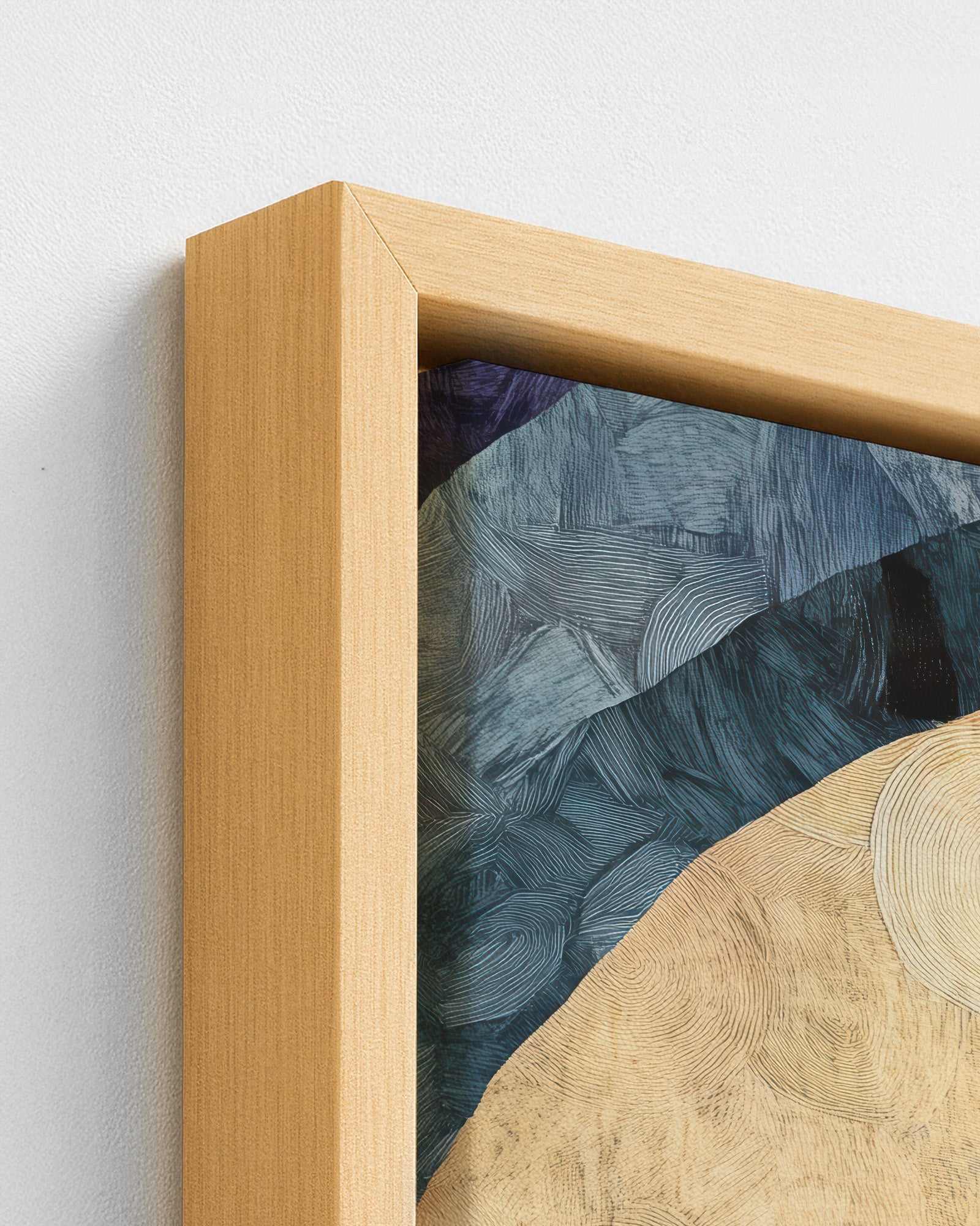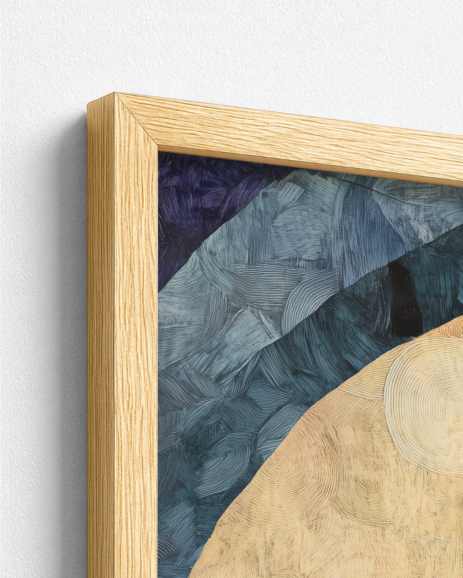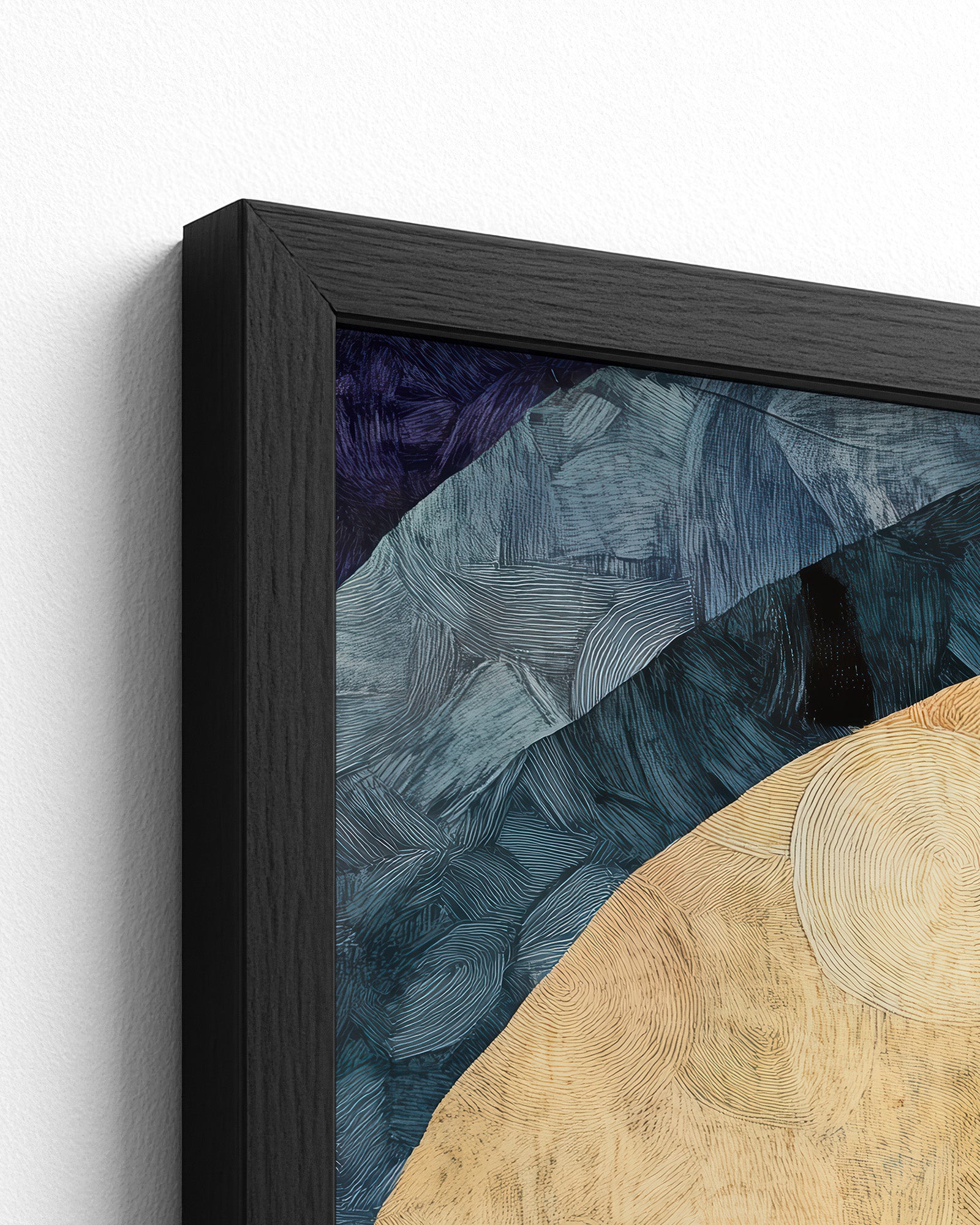 Premium artwork printed on high-quality paper, professionally mounted within a durable pine wood frame.