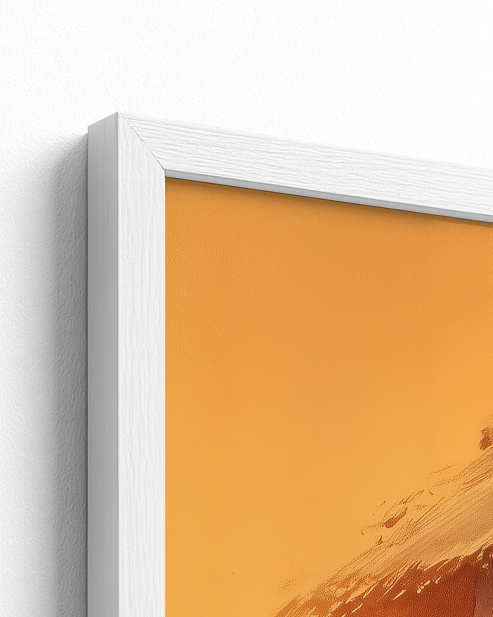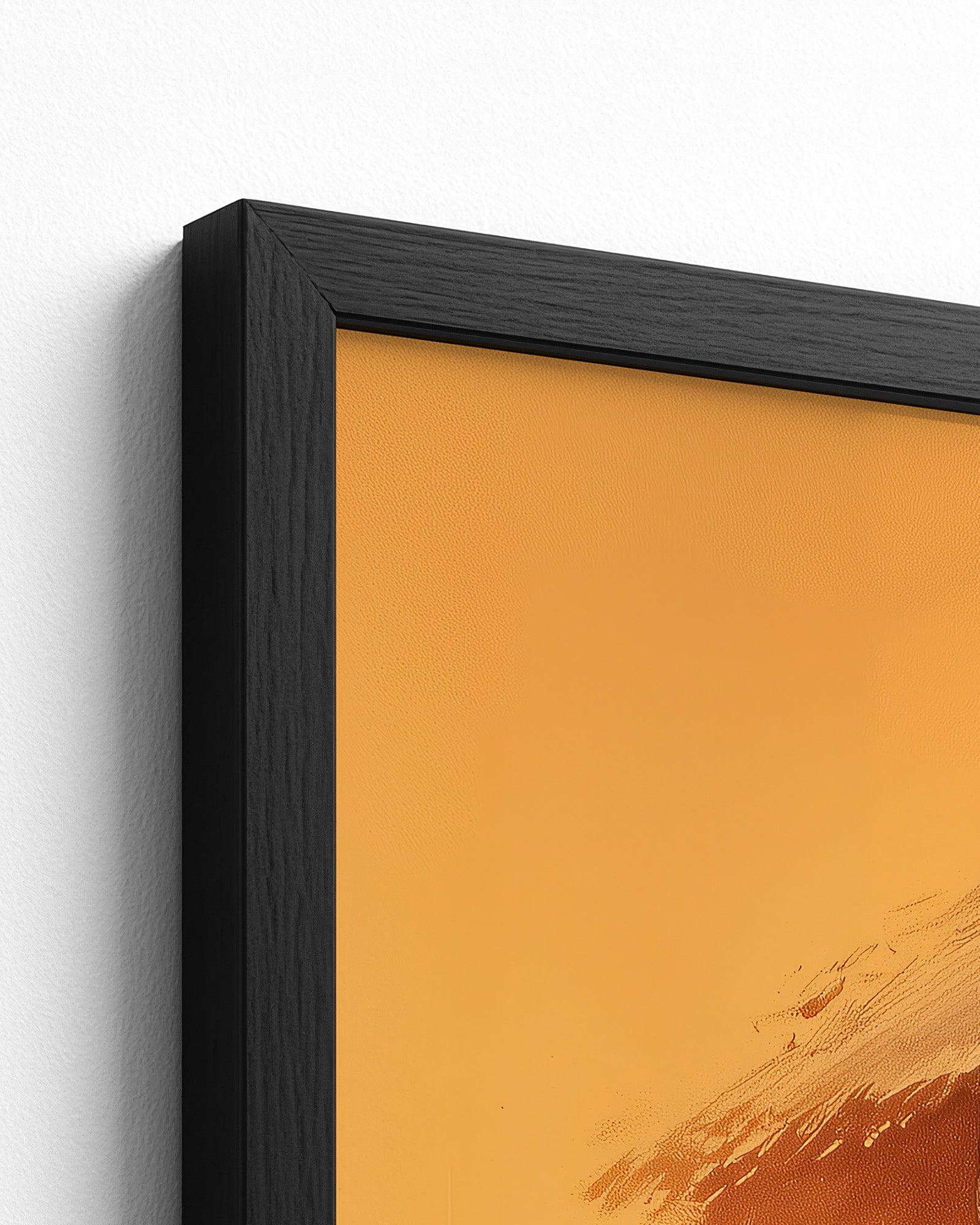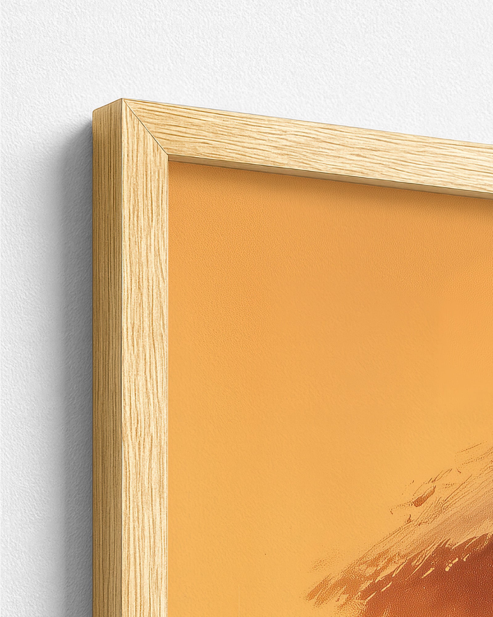 Premium artwork printed on high-quality paper, professionally mounted within a durable pine wood frame.