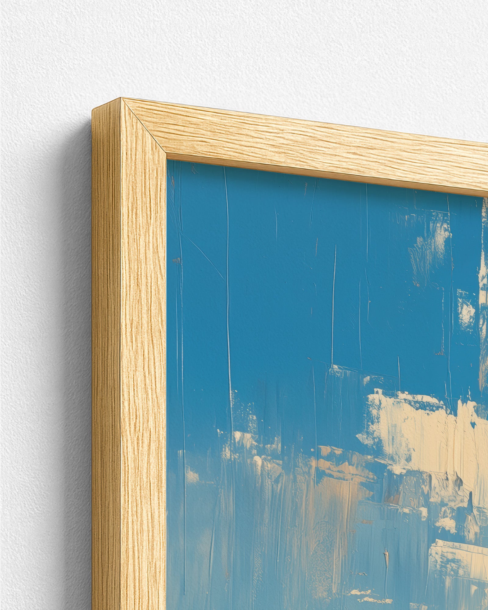 Premium artwork printed on high-quality paper, professionally mounted within a durable pine wood frame.