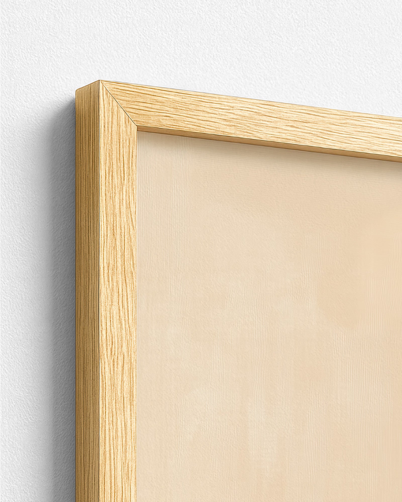 Premium artwork printed on high-quality paper, professionally mounted within a durable pine wood frame.