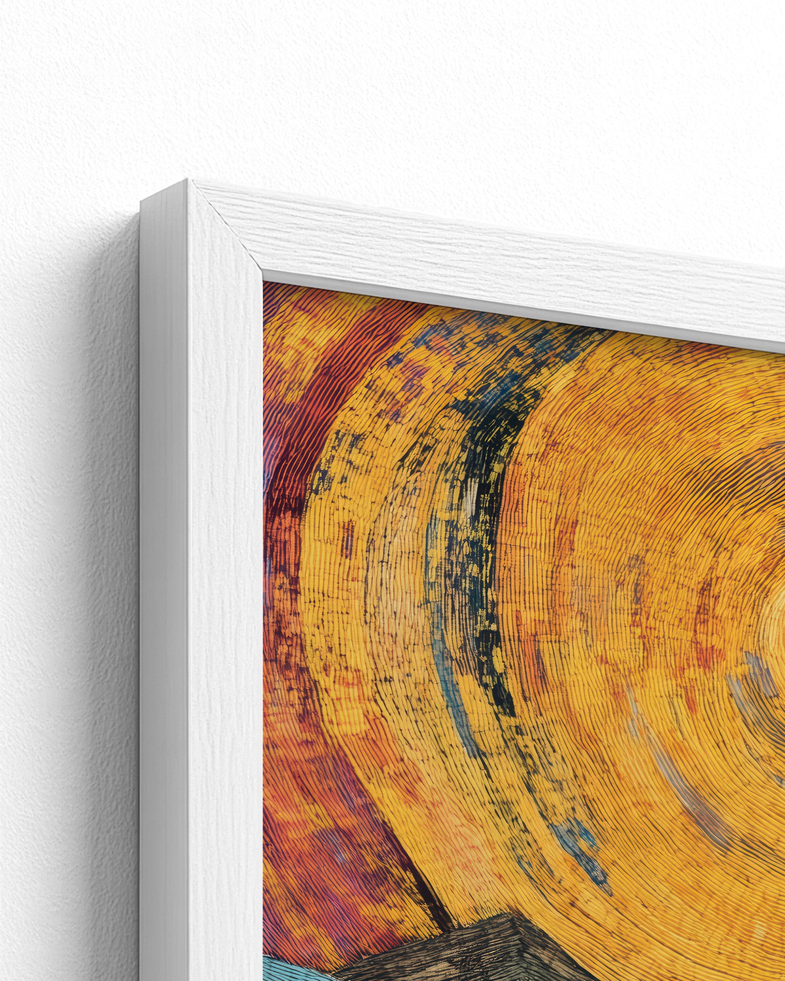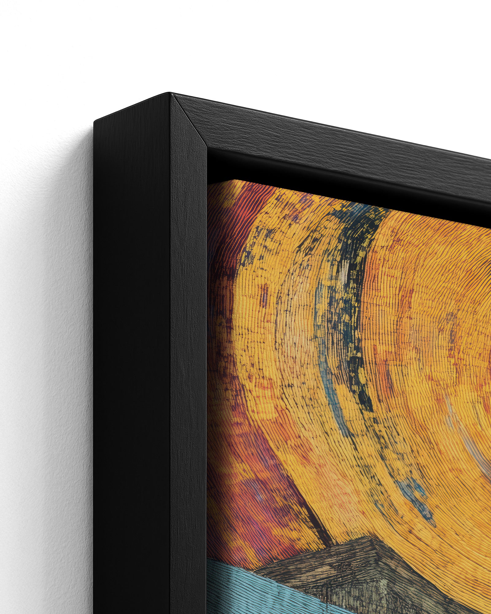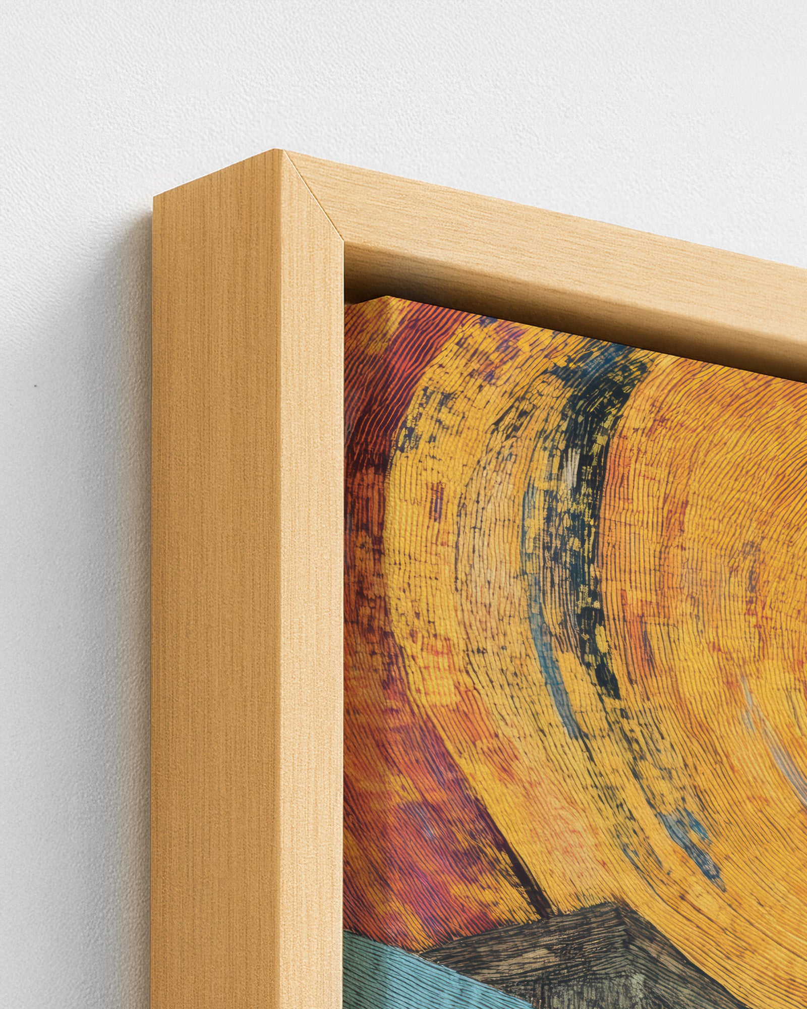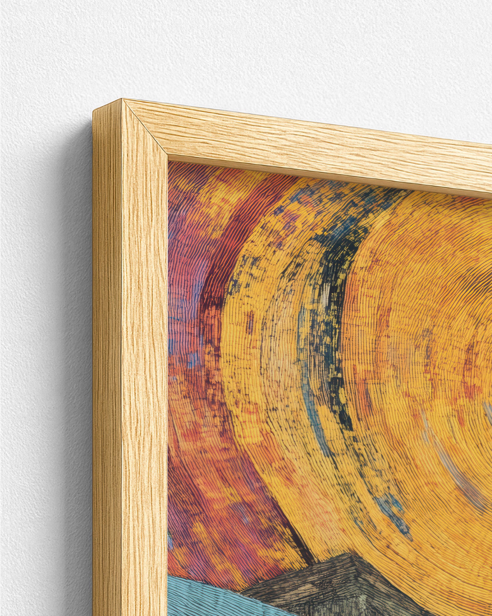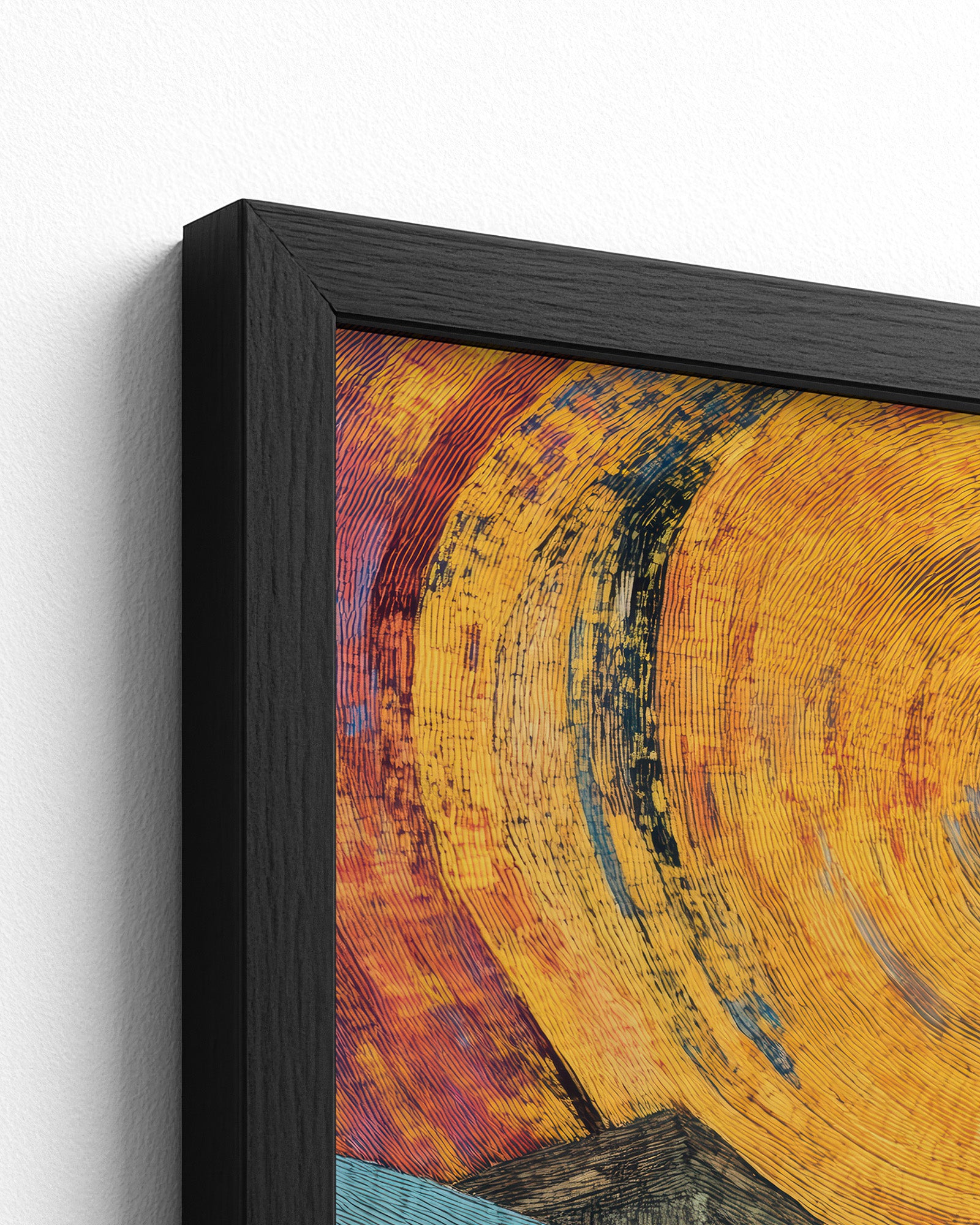 Premium artwork printed on high-quality paper, professionally mounted within a durable pine wood frame.