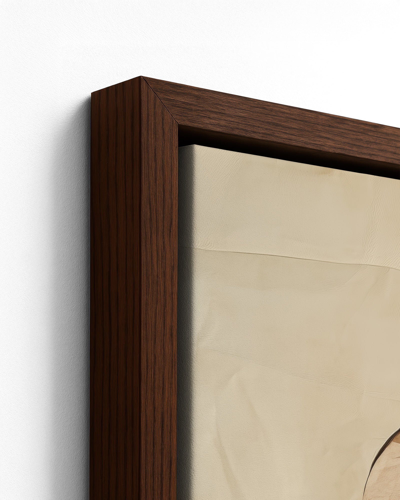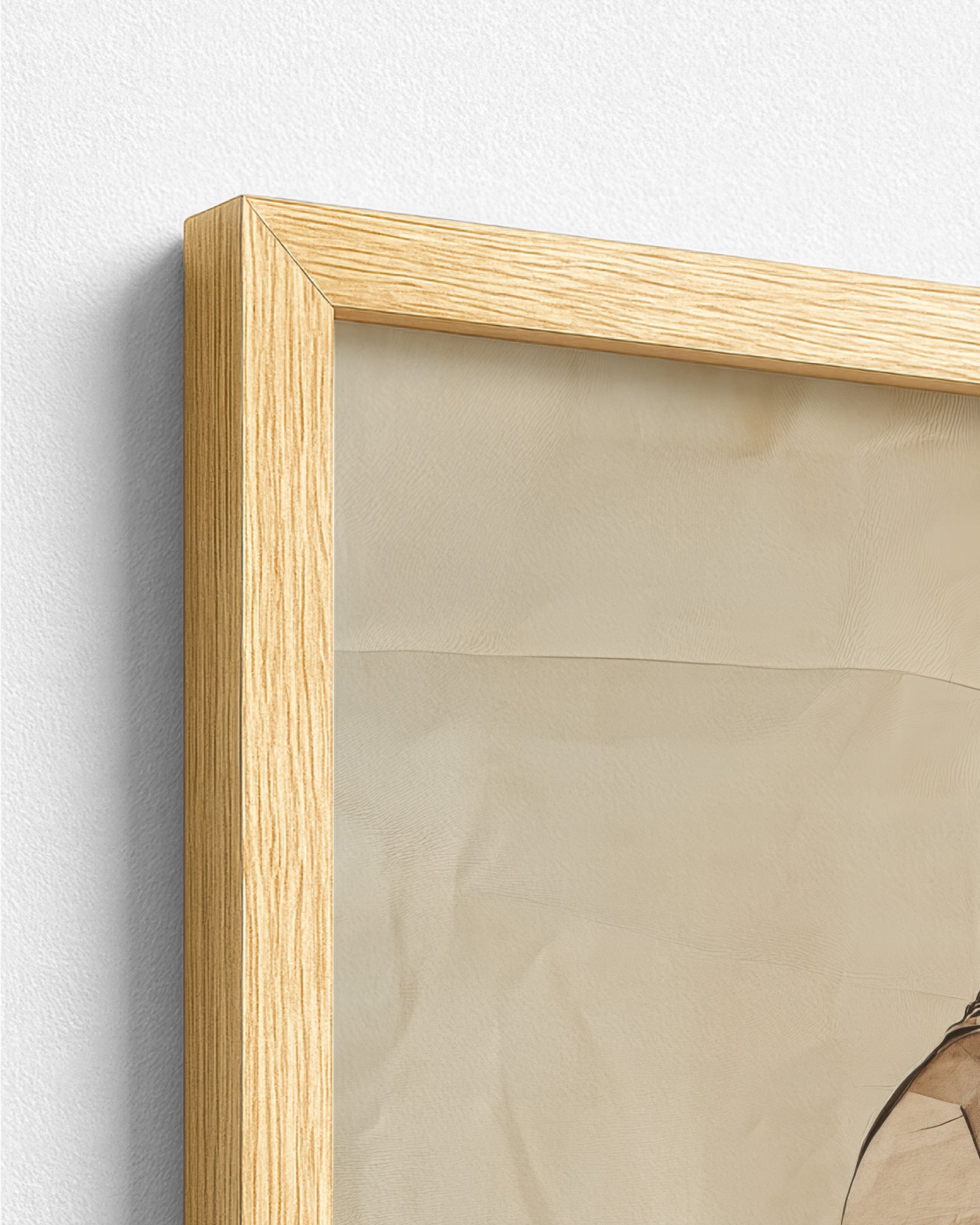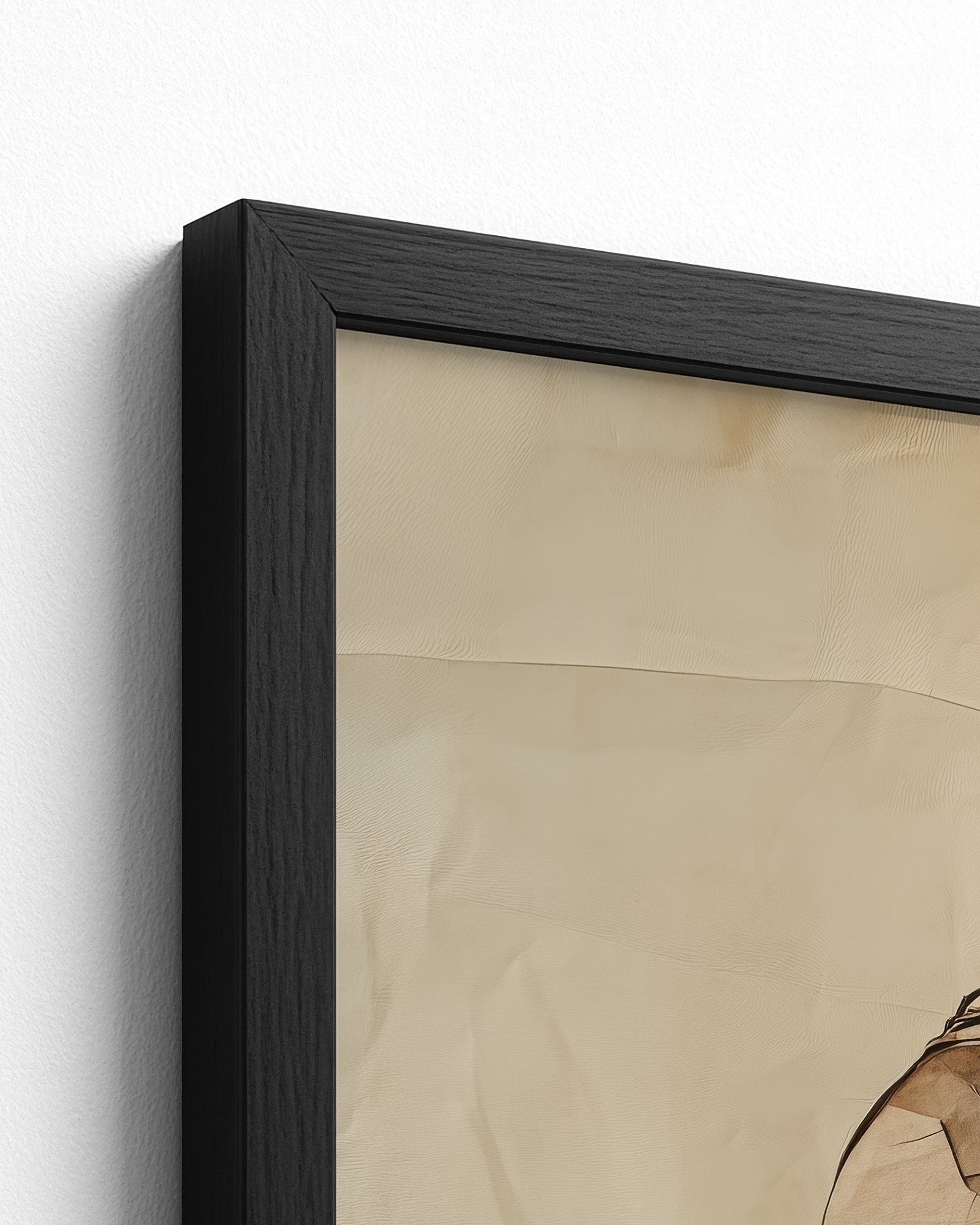 Premium artwork printed on high-quality paper, professionally mounted within a durable pine wood frame.