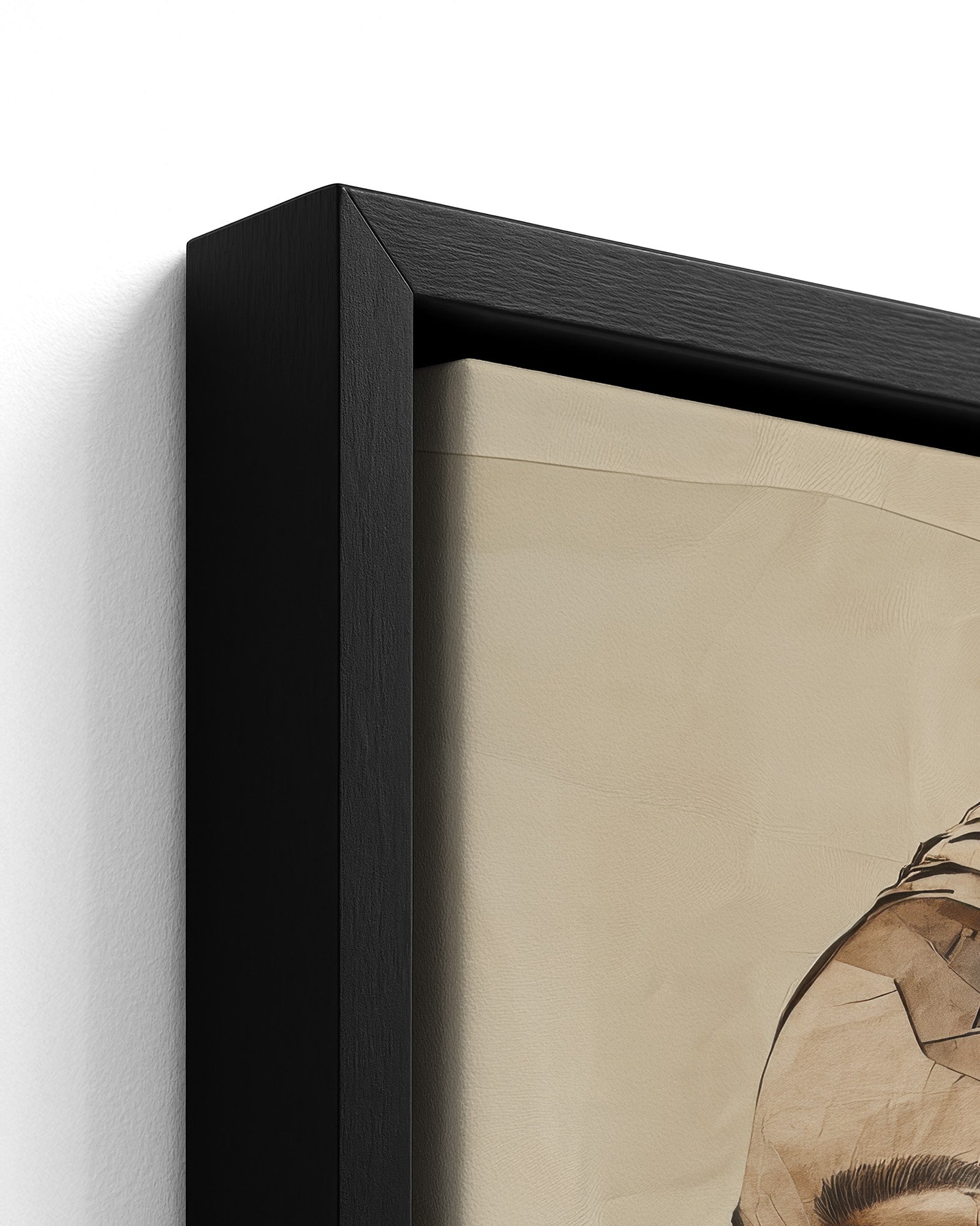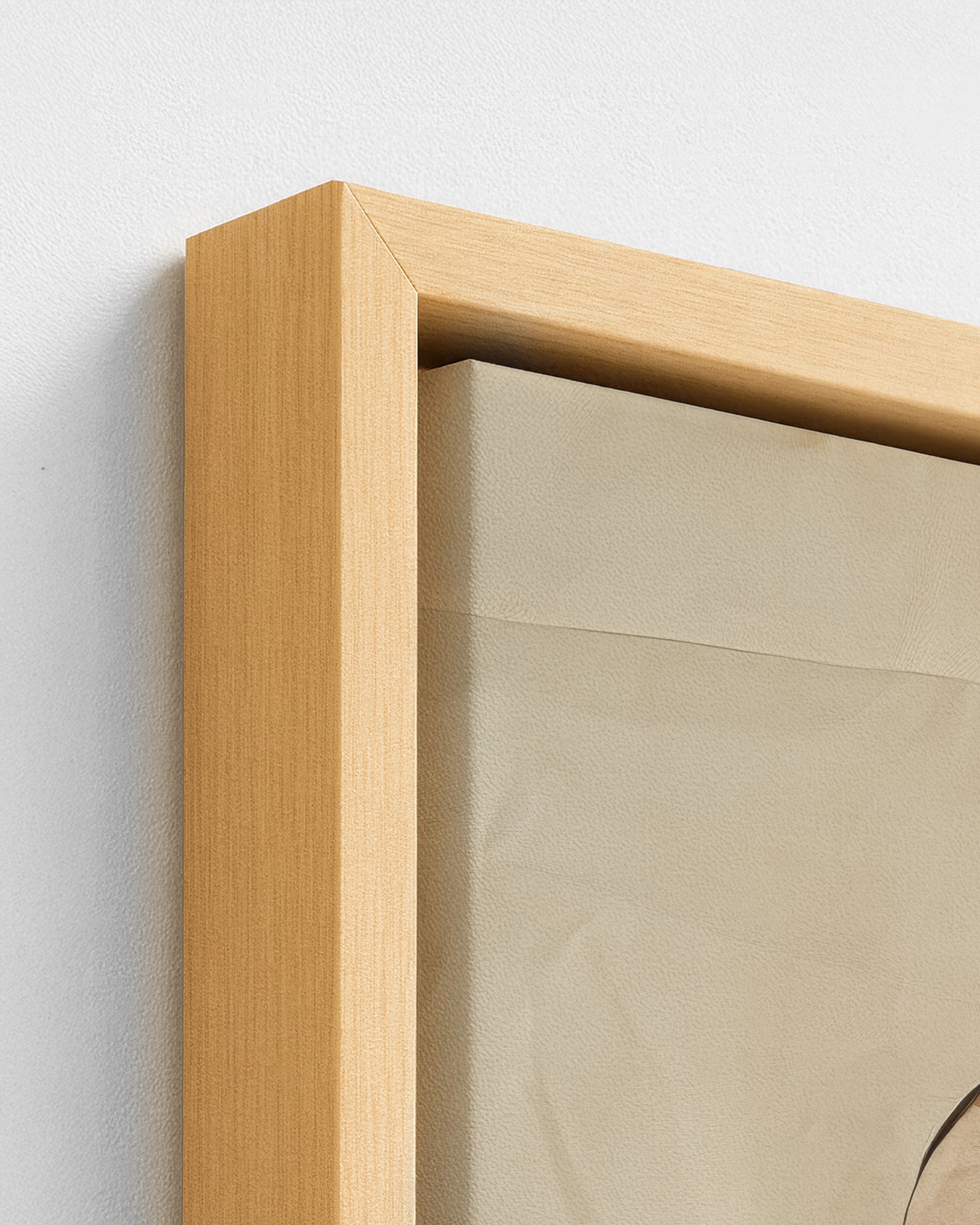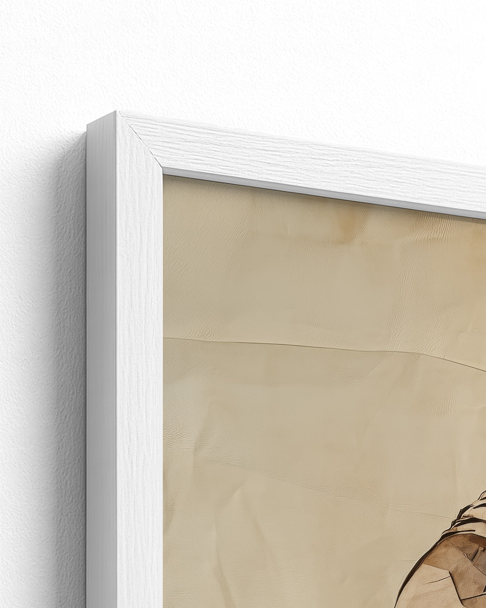 Premium artwork printed on high-quality paper, professionally mounted within a durable pine wood frame.