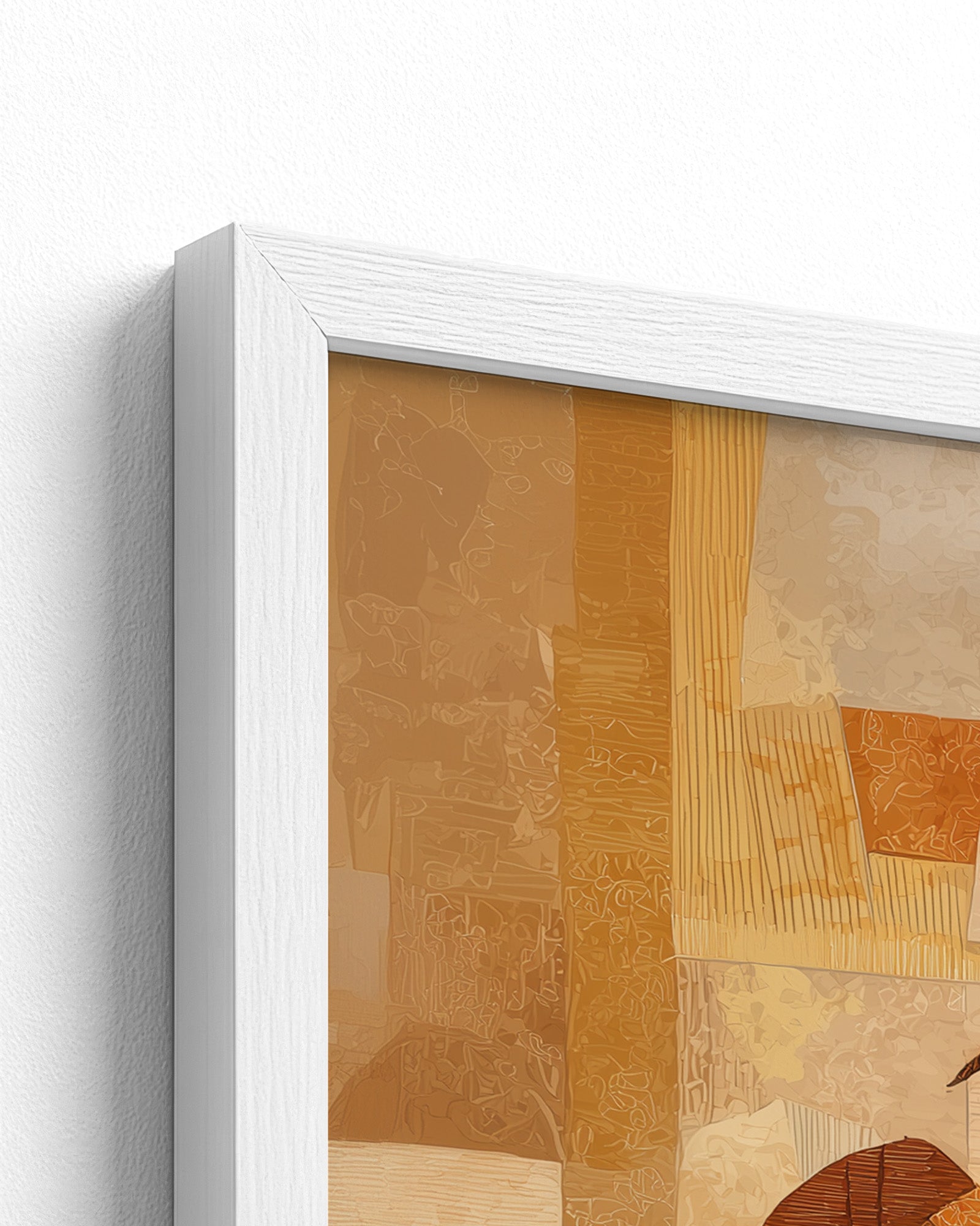 Premium artwork printed on high-quality paper, professionally mounted within a durable pine wood frame.