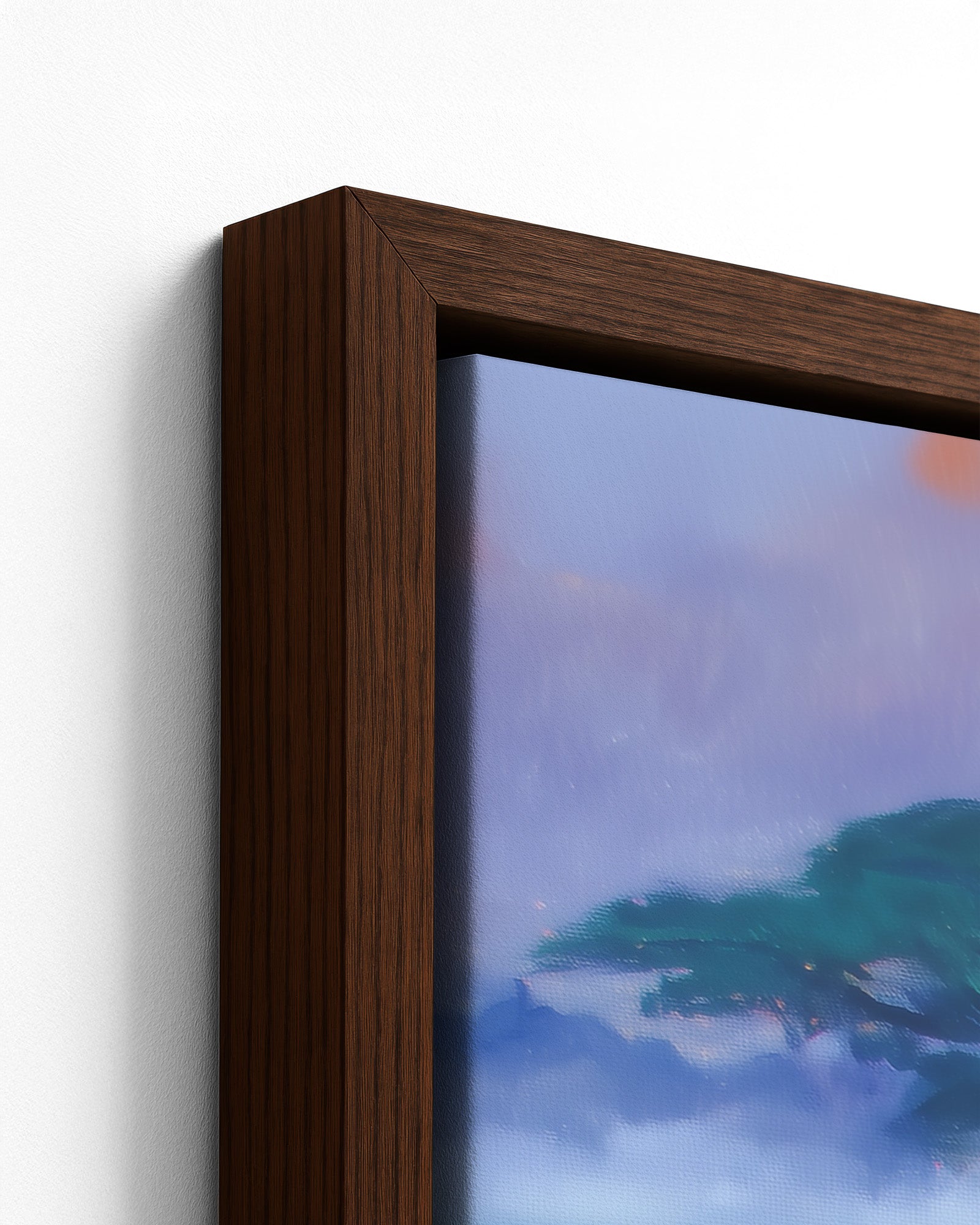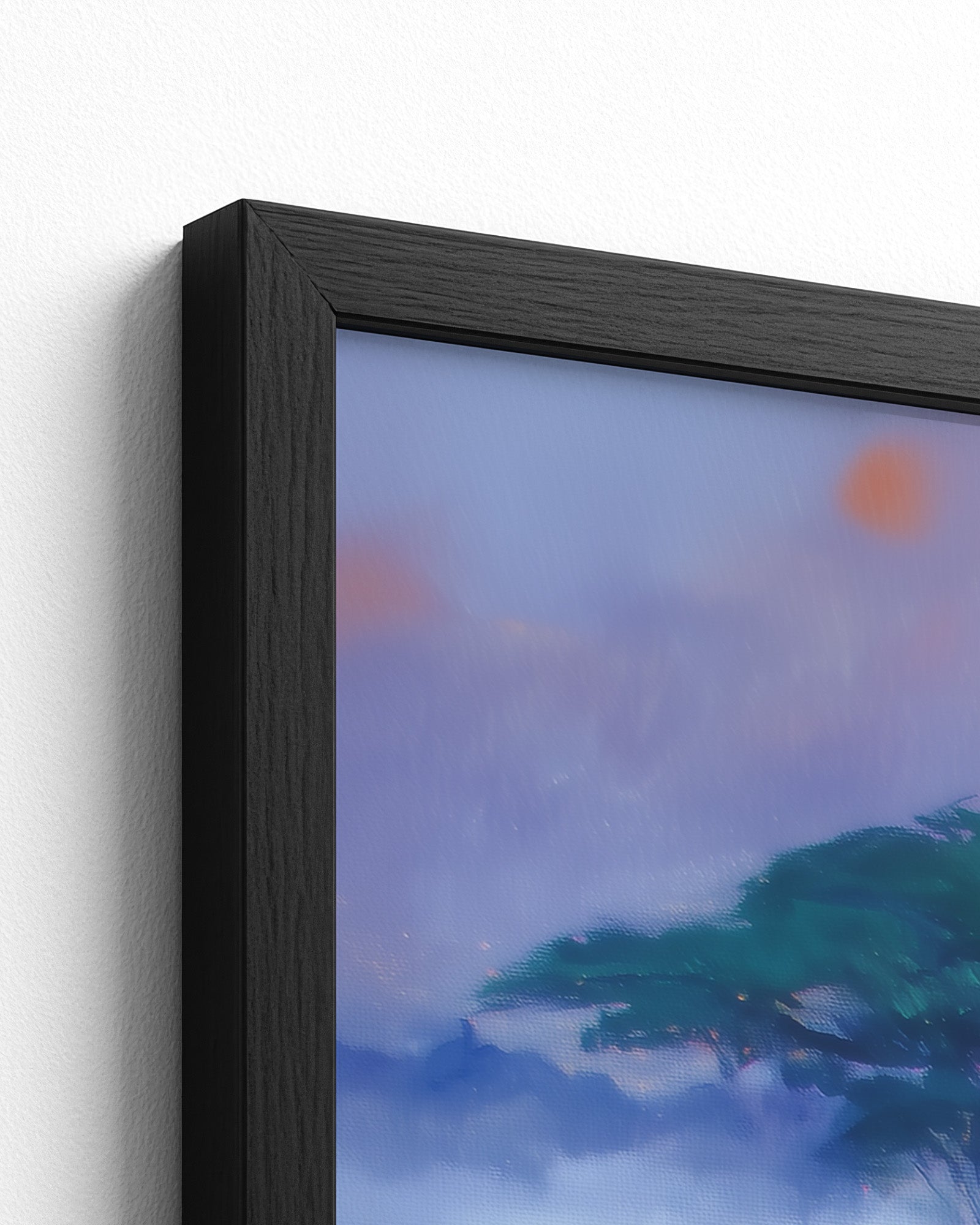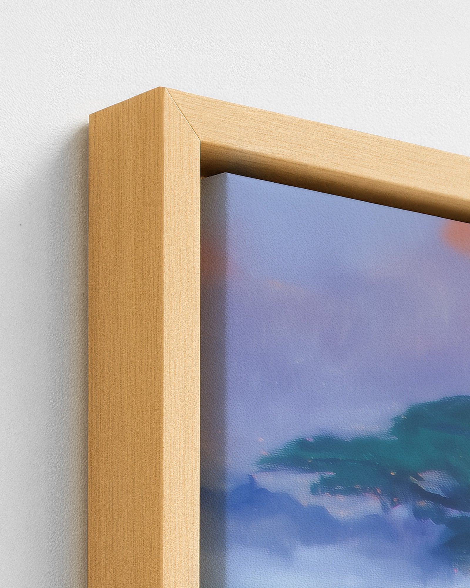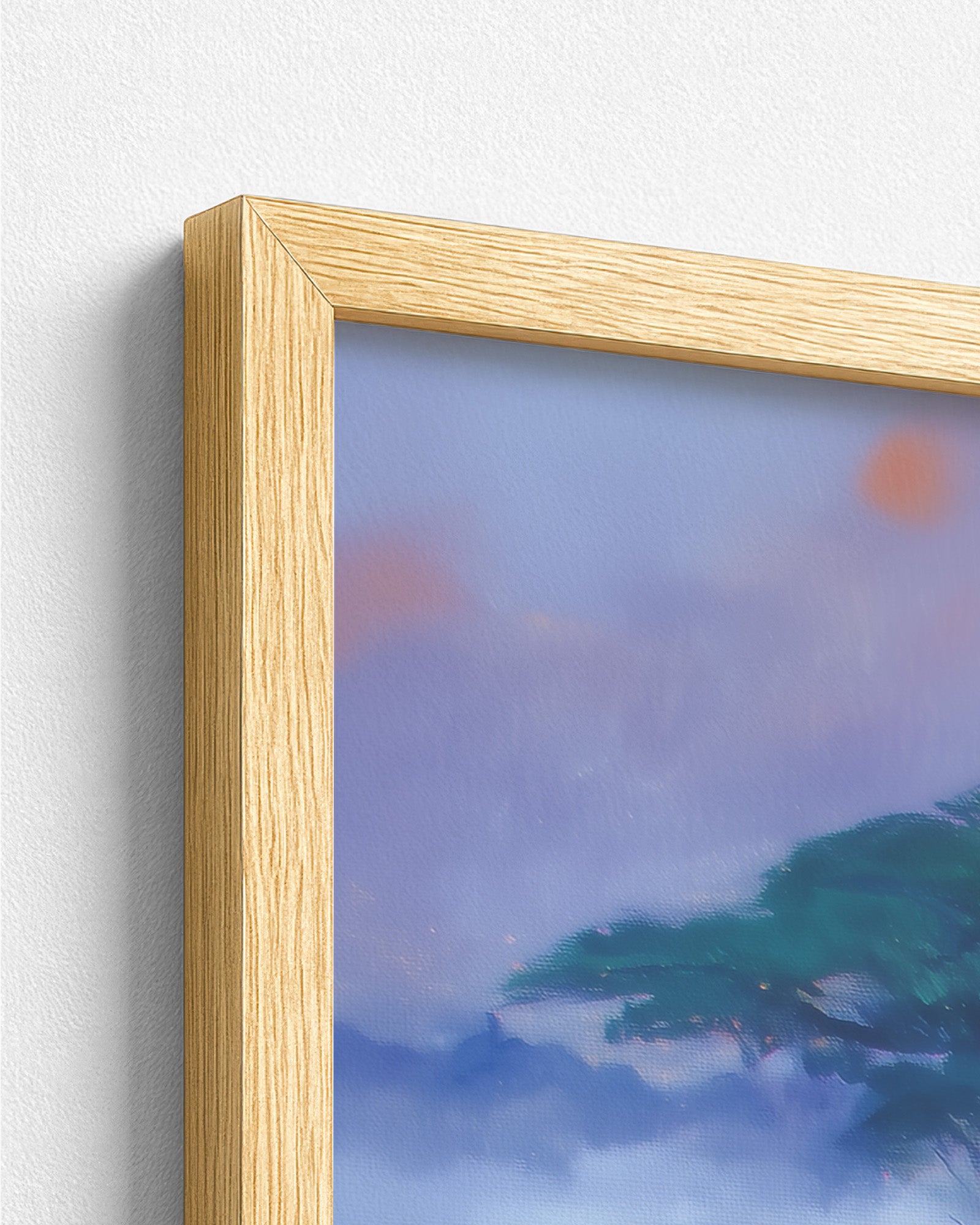 Premium artwork printed on high-quality paper, professionally mounted within a durable pine wood frame.