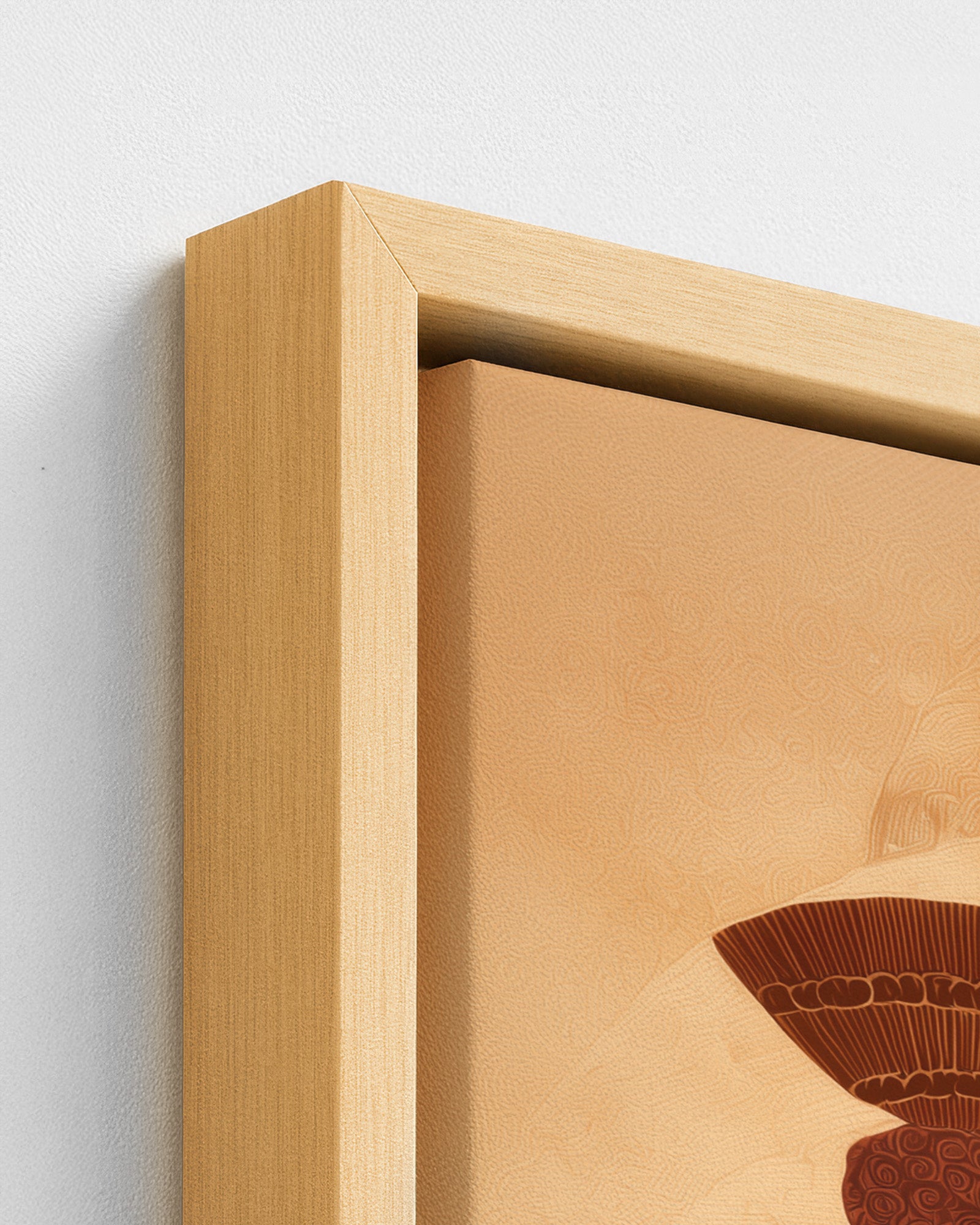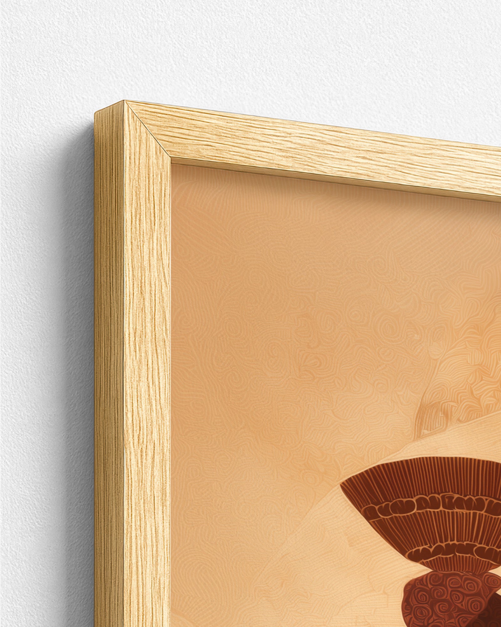 Premium artwork printed on high-quality paper, professionally mounted within a durable pine wood frame.