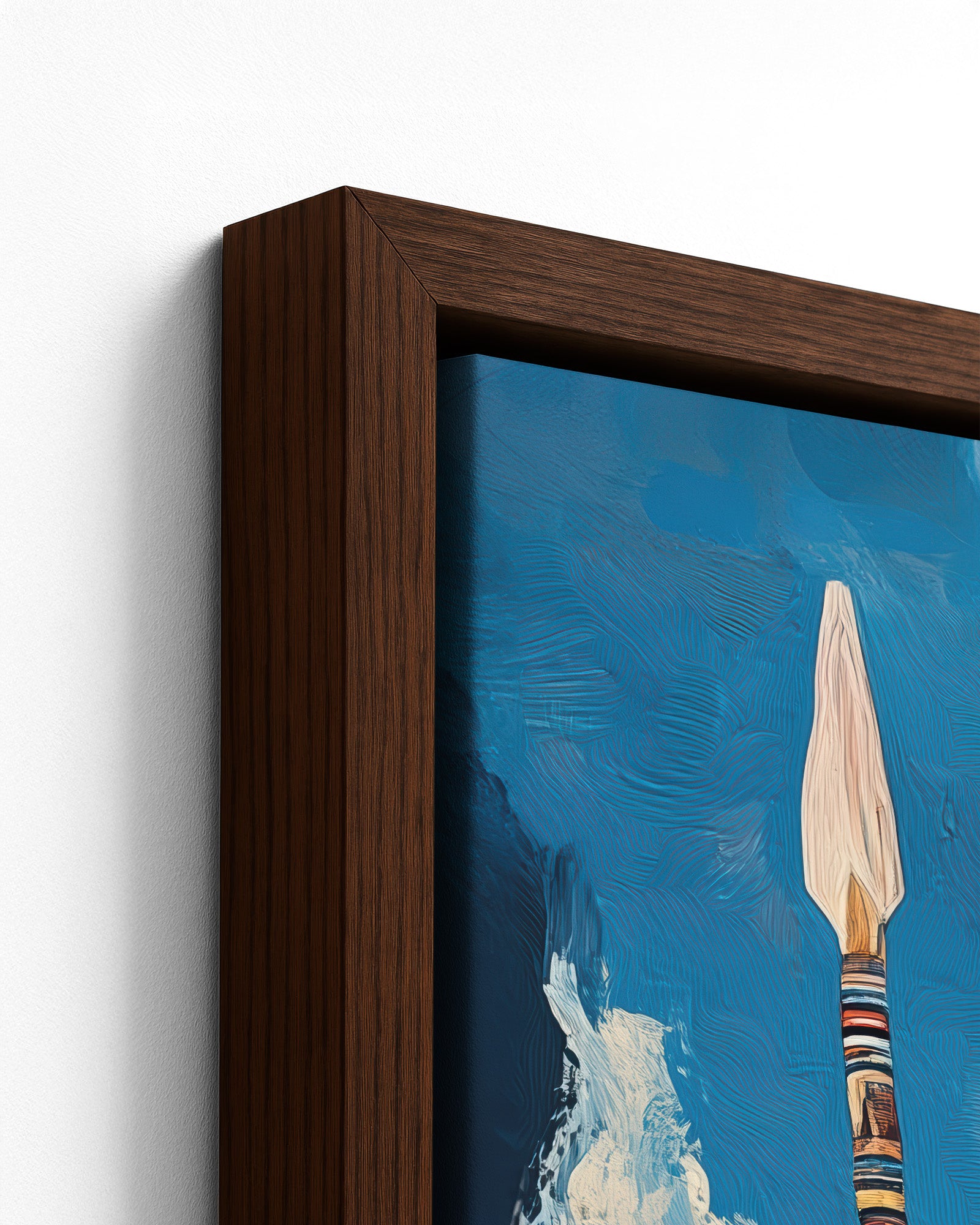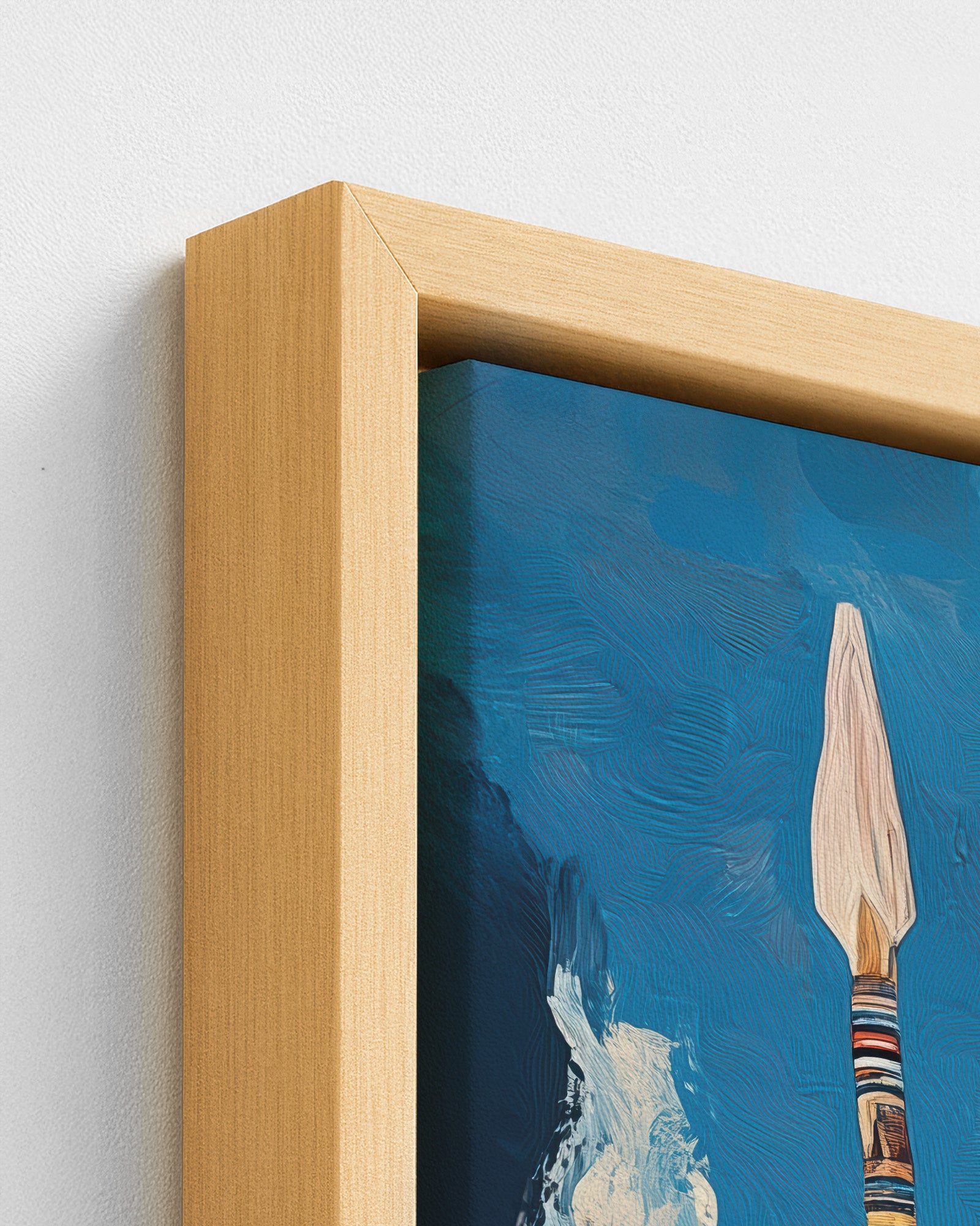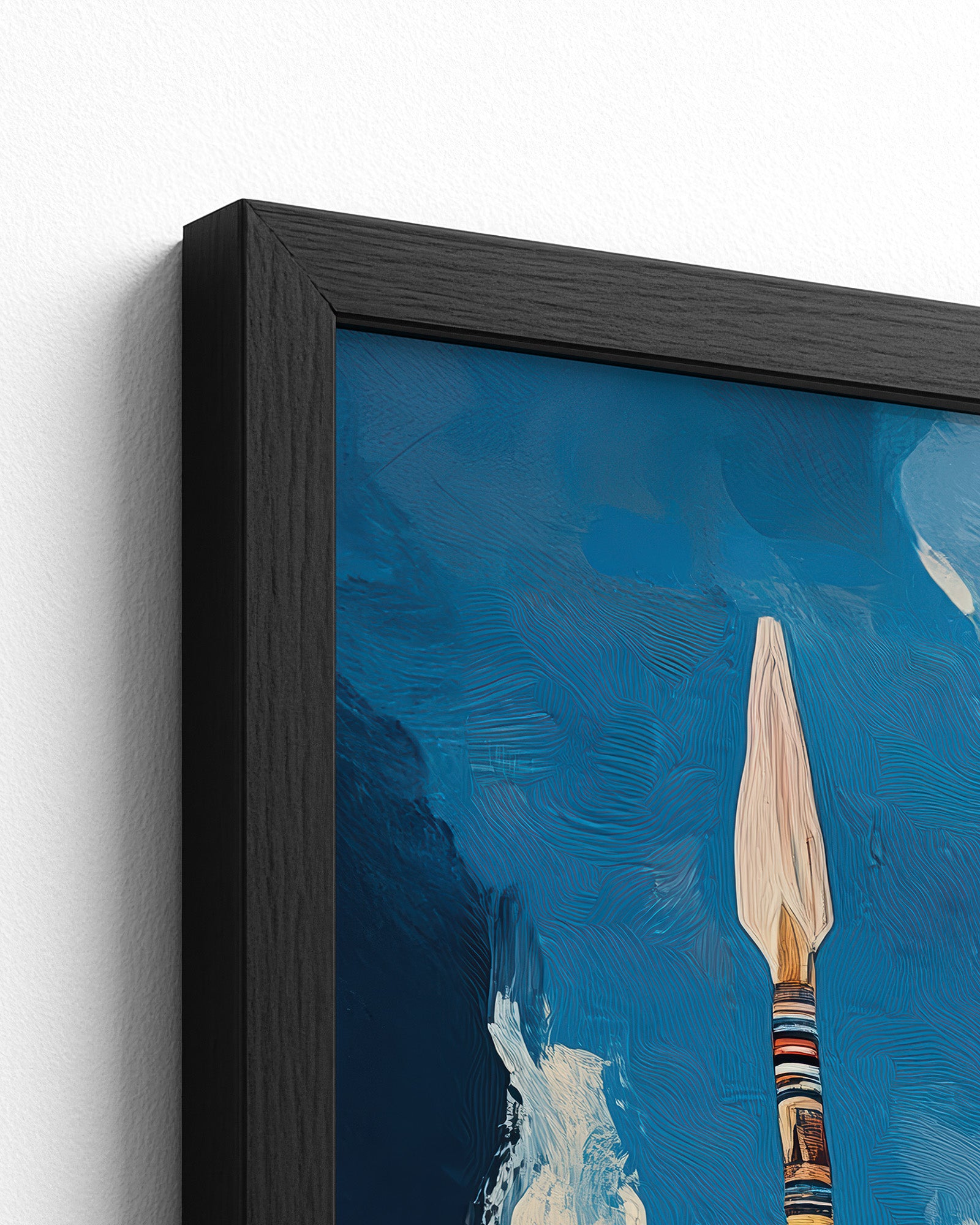 Premium artwork printed on high-quality paper, professionally mounted within a durable pine wood frame.