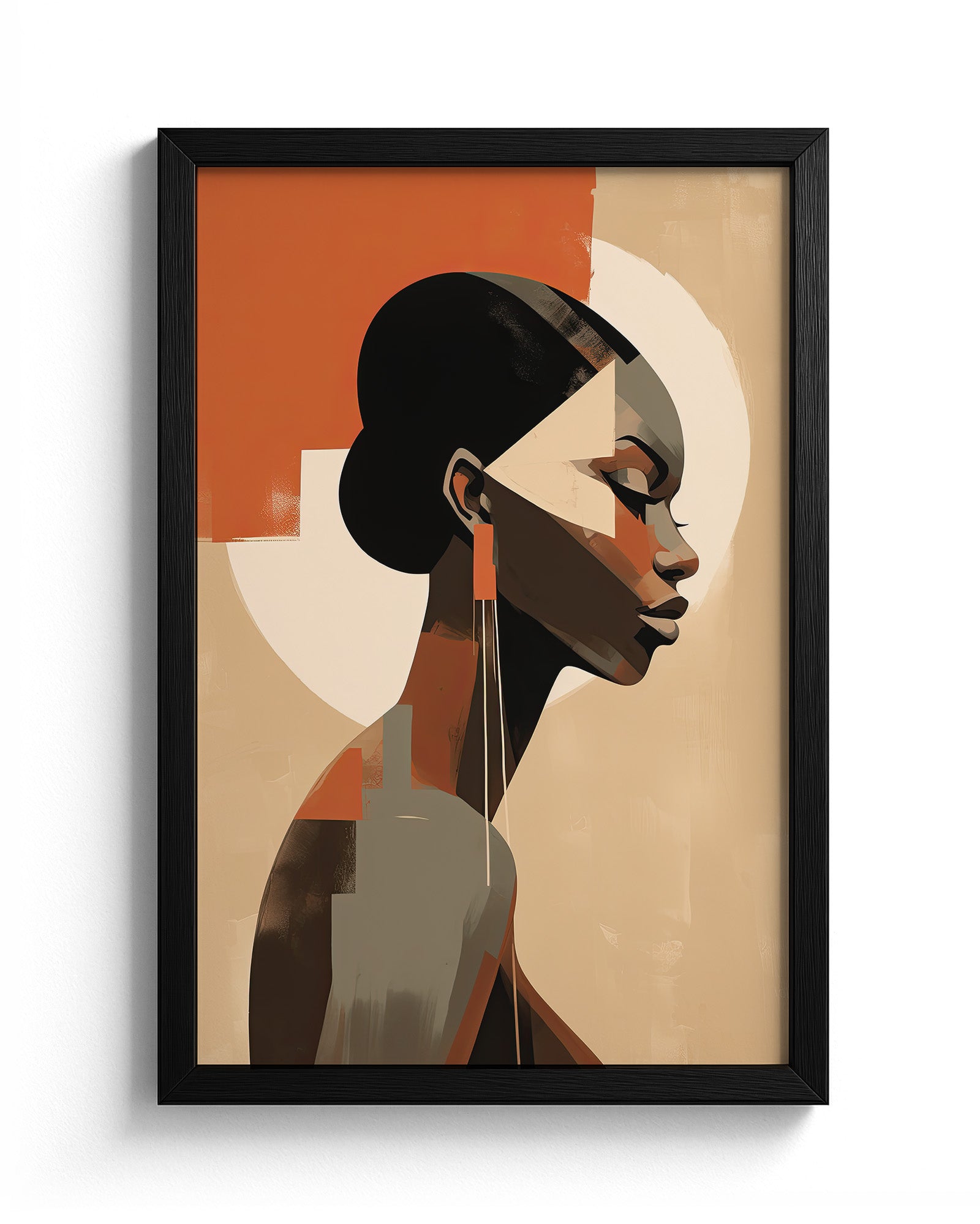 Step into the timeless beauty of our minimalist painting, where a South African beauty is gracefully portrayed against a serene backdrop of brown and nude tones. This captivating artwork embodies grace and simplicity, emphasising the elegant silhouette of the South African woman in a modern, minimalist style.