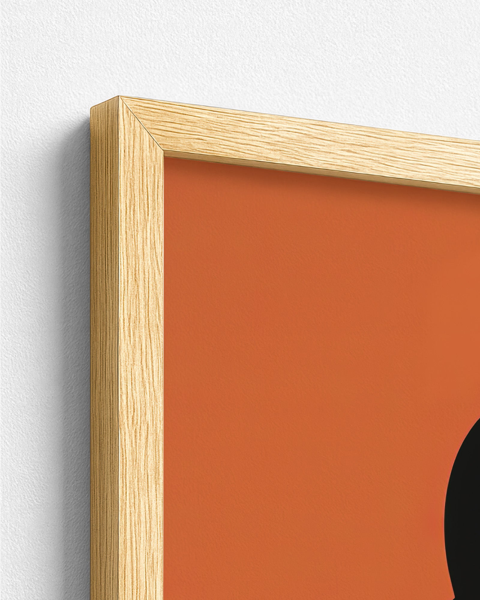 Premium artwork printed on high-quality paper, professionally mounted within a durable pine wood frame.