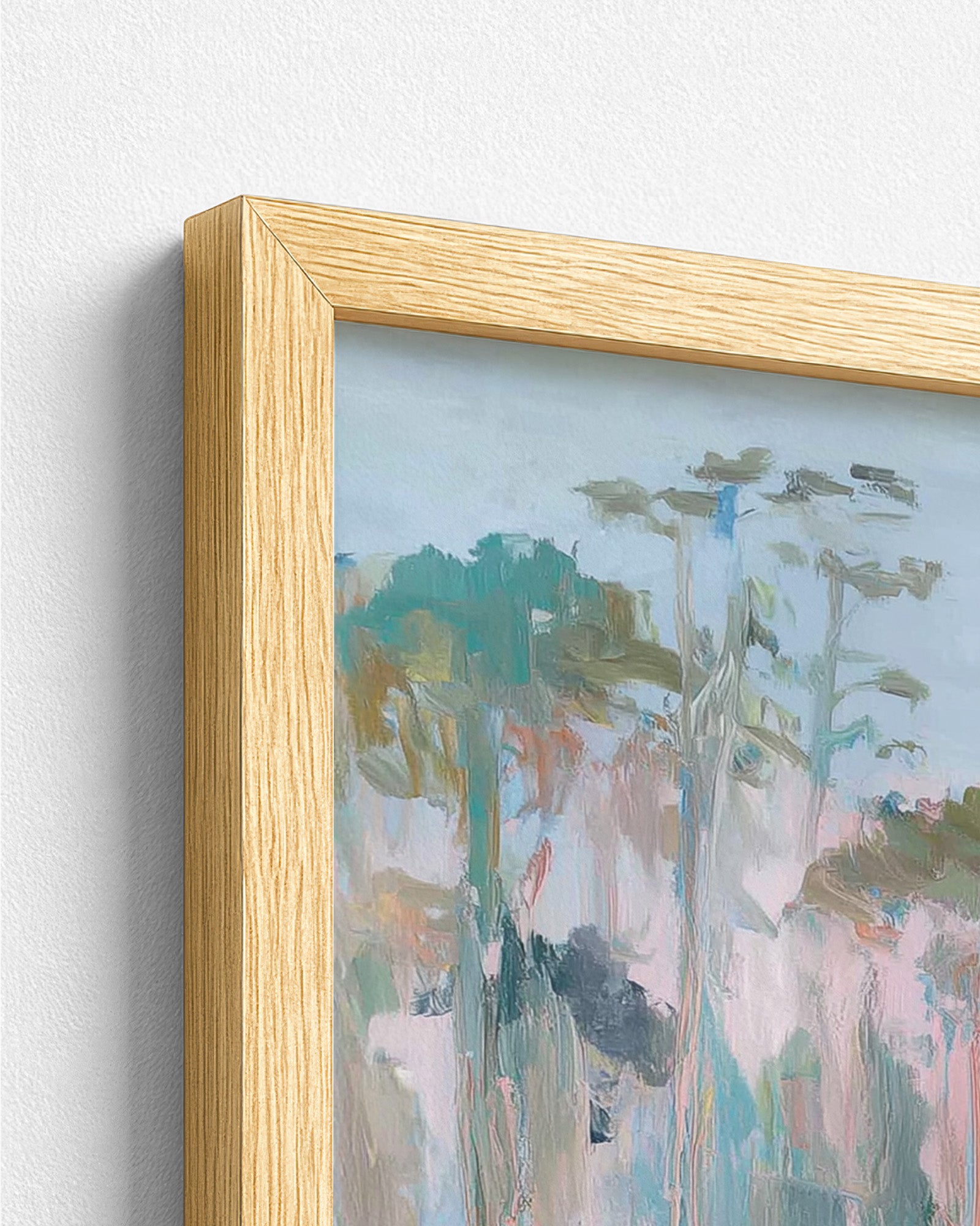 Premium artwork printed on high-quality paper, professionally mounted within a durable pine wood frame.