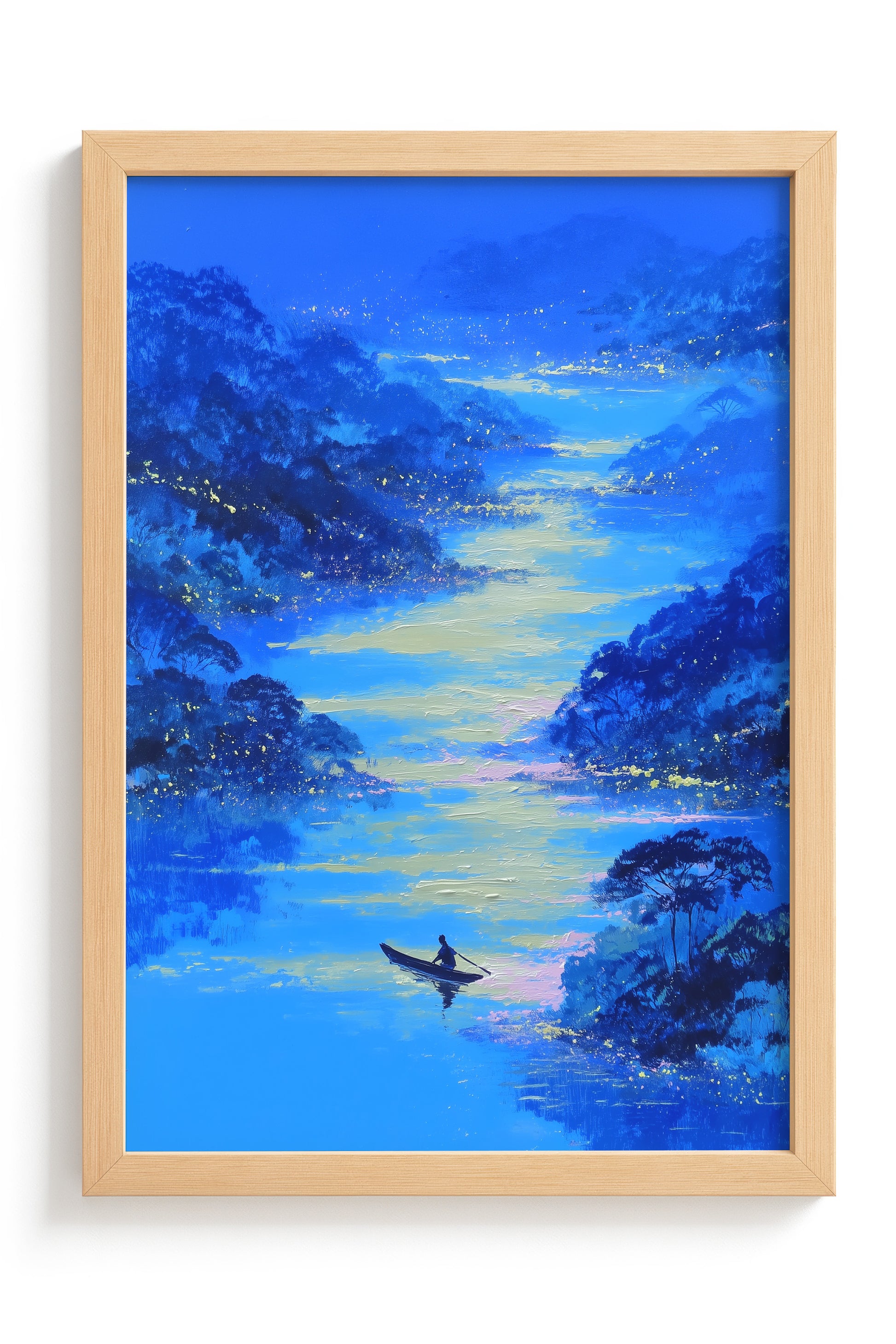 Congo Waters Glow: Art on Congo's Transformation, Spiritual Awakening, and the Power of Light Across Congo's Sacred Waterway. This striking composition captures the moment when Congo dawn illuminates the river's passages, revealing how the Congo transforms through cycles of darkness and light, silence and song.