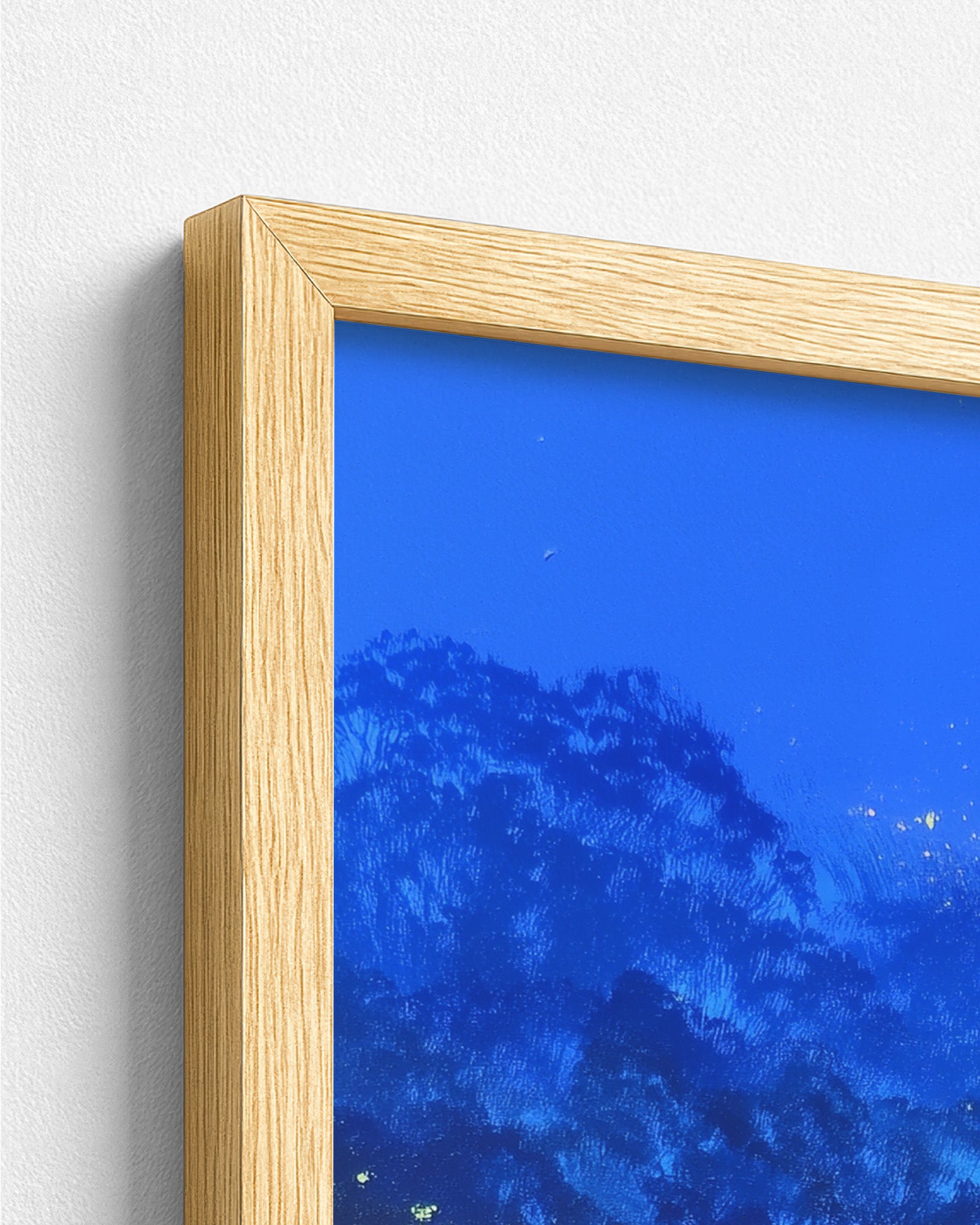 Premium artwork printed on high-quality paper, professionally mounted within a durable pine wood frame.