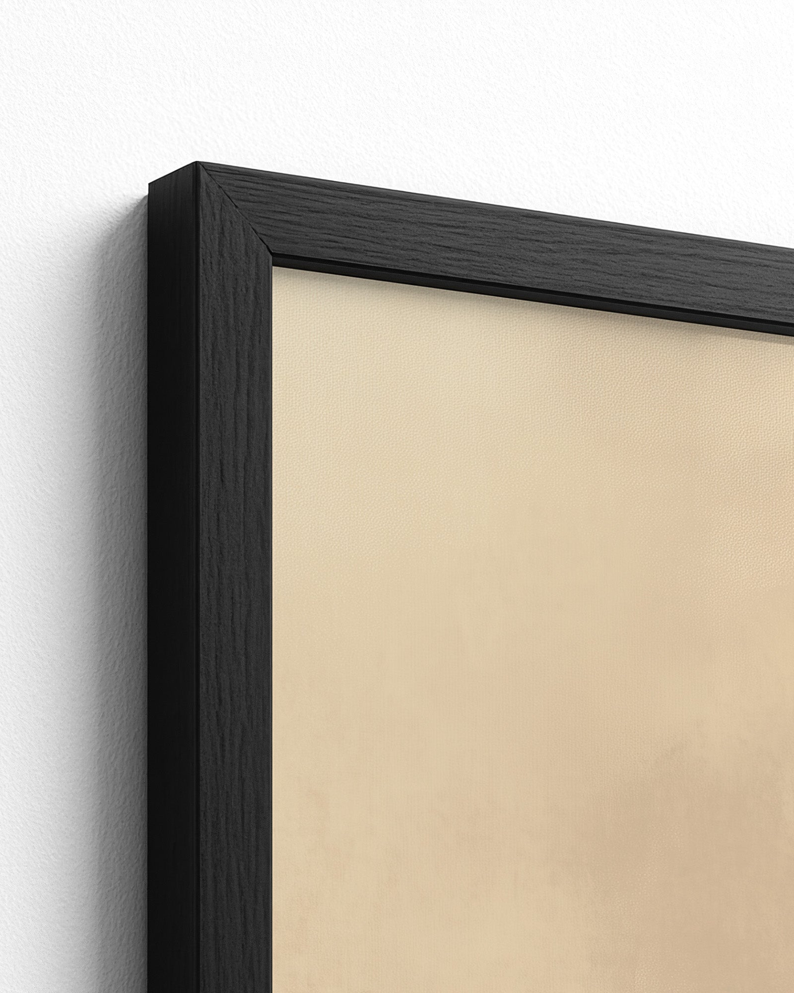 Premium artwork printed on high-quality paper, professionally mounted within a durable pine wood frame.