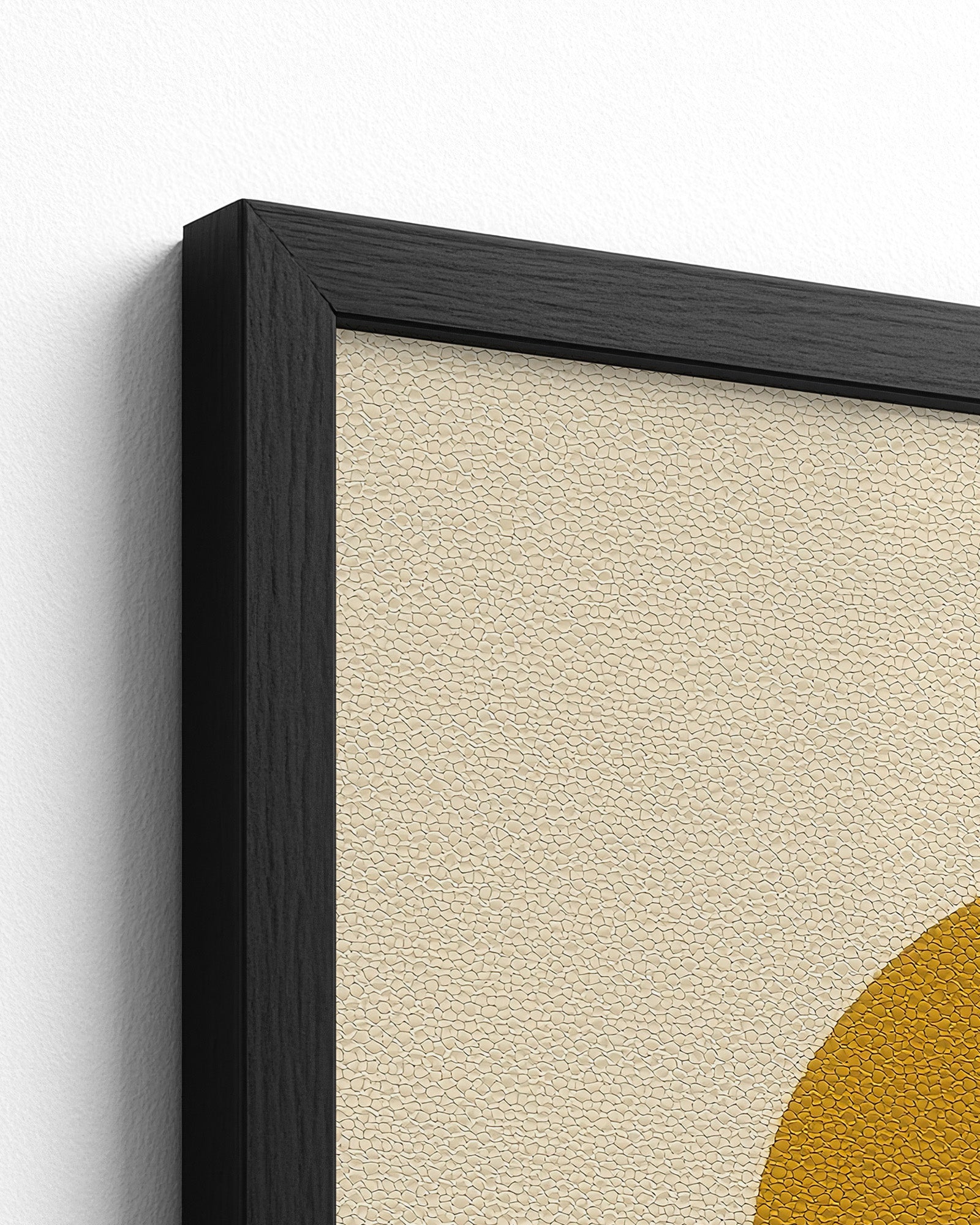 Premium artwork printed on high-quality paper, professionally mounted within a durable pine wood frame.