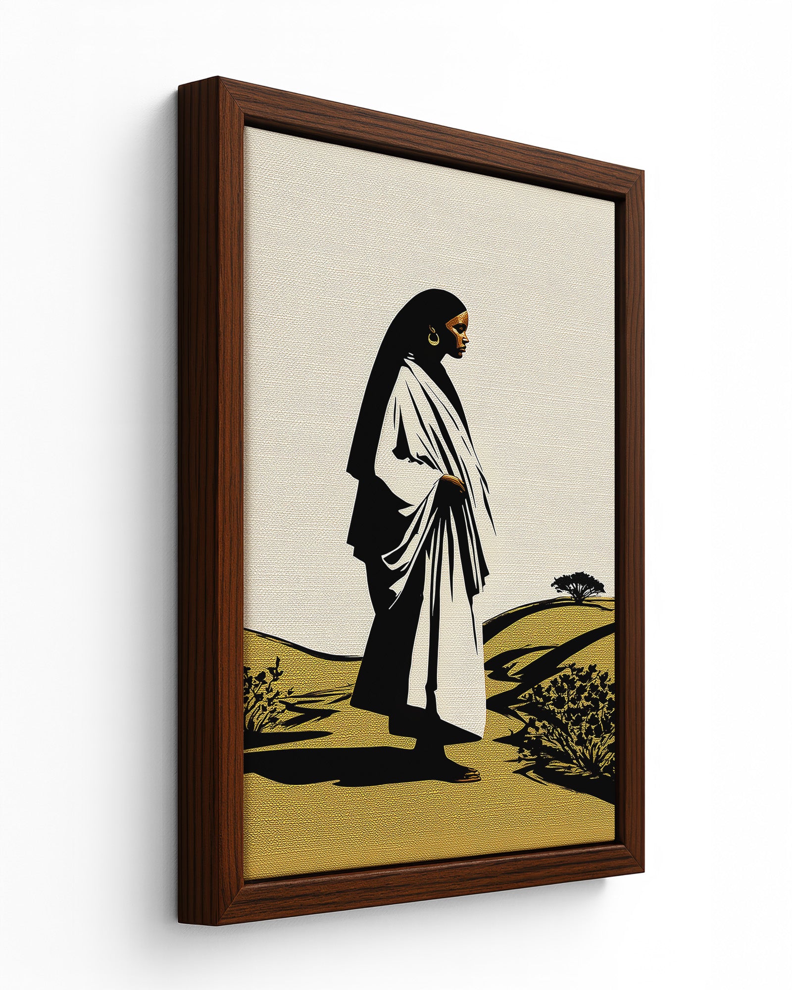Across the rolling landscapes of the Ethiopian highlands, traditional white garments are commonly worn as symbols of cultural identity, spirituality, and everyday life. The flowing cloth seen in this piece reflects the shamma, a lightweight cotton wrap traditionally worn throughout Ethiopia, often associated with both daily wear and religious devotion within Ethiopian Orthodox culture.