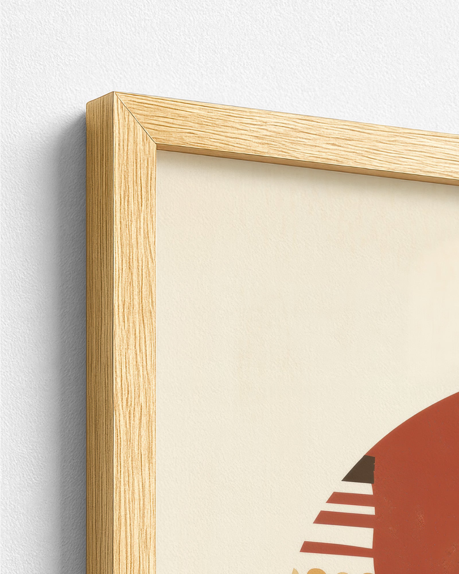 Premium artwork printed on high-quality paper, professionally mounted within a durable pine wood frame.