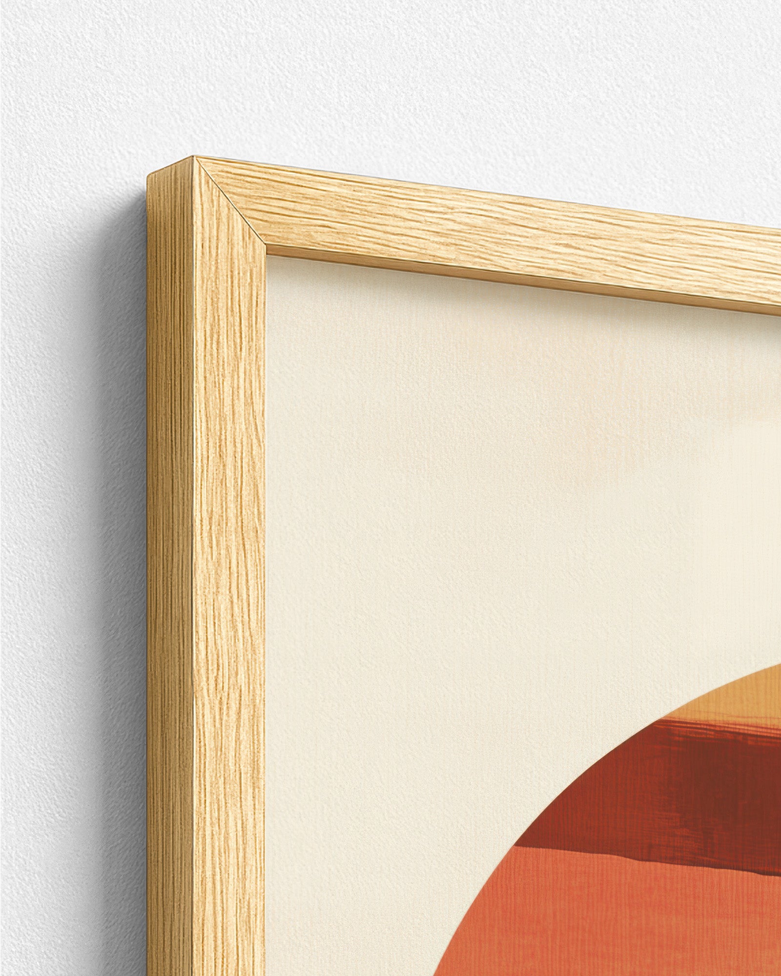 Premium artwork printed on high-quality paper, professionally mounted within a durable pine wood frame.