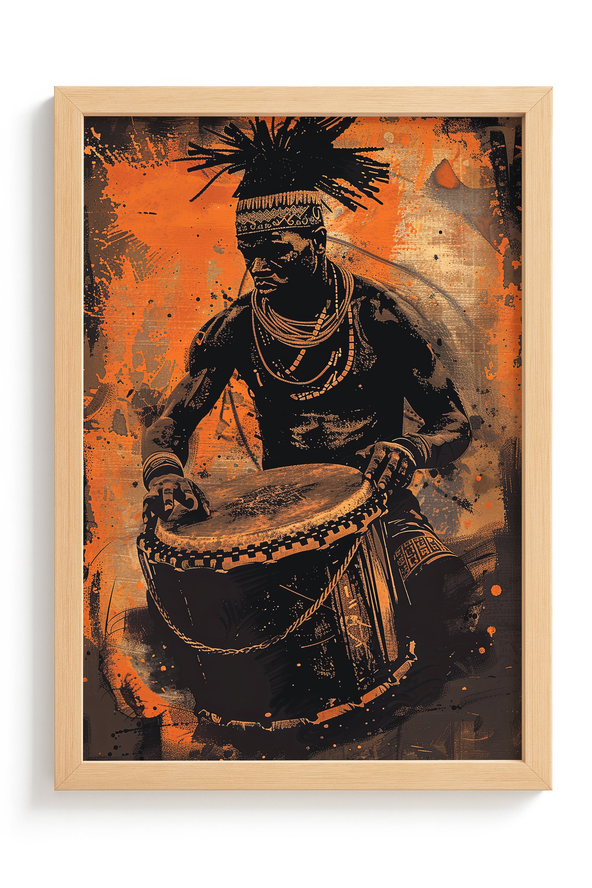Immerse yourself in the rhythmic beats of Mali with our vibrant painting capturing the essence of a male drummer in action. This dynamic artwork resonates with the authentic sounds of Mali, depicted in bold strokes of black and orange that evoke the energy and passion of African drumming.