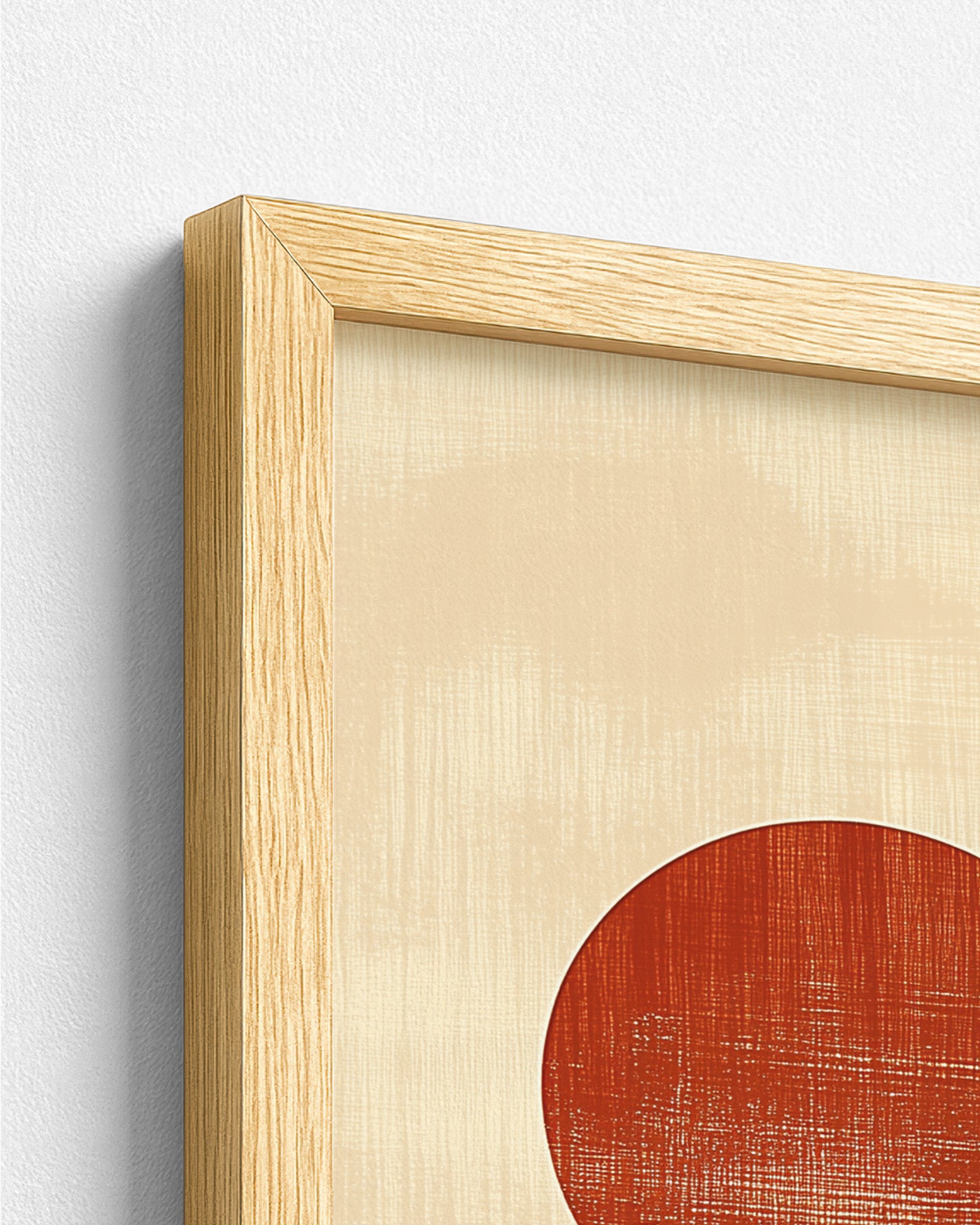 Premium artwork printed on high-quality paper, professionally mounted within a durable pine wood frame.