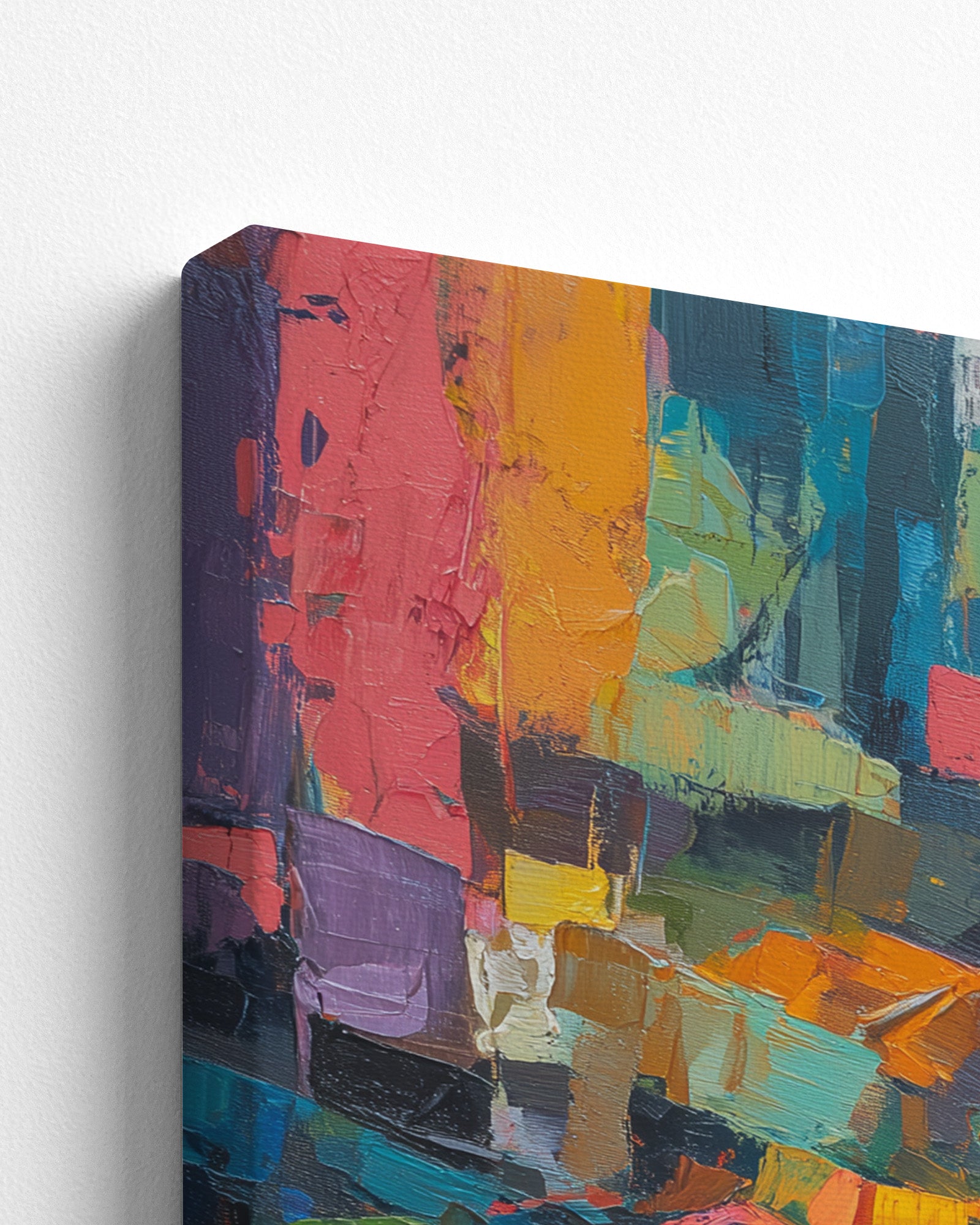 The canvas is stretched over a slim wooden frame with a 2–3 cm depth.
