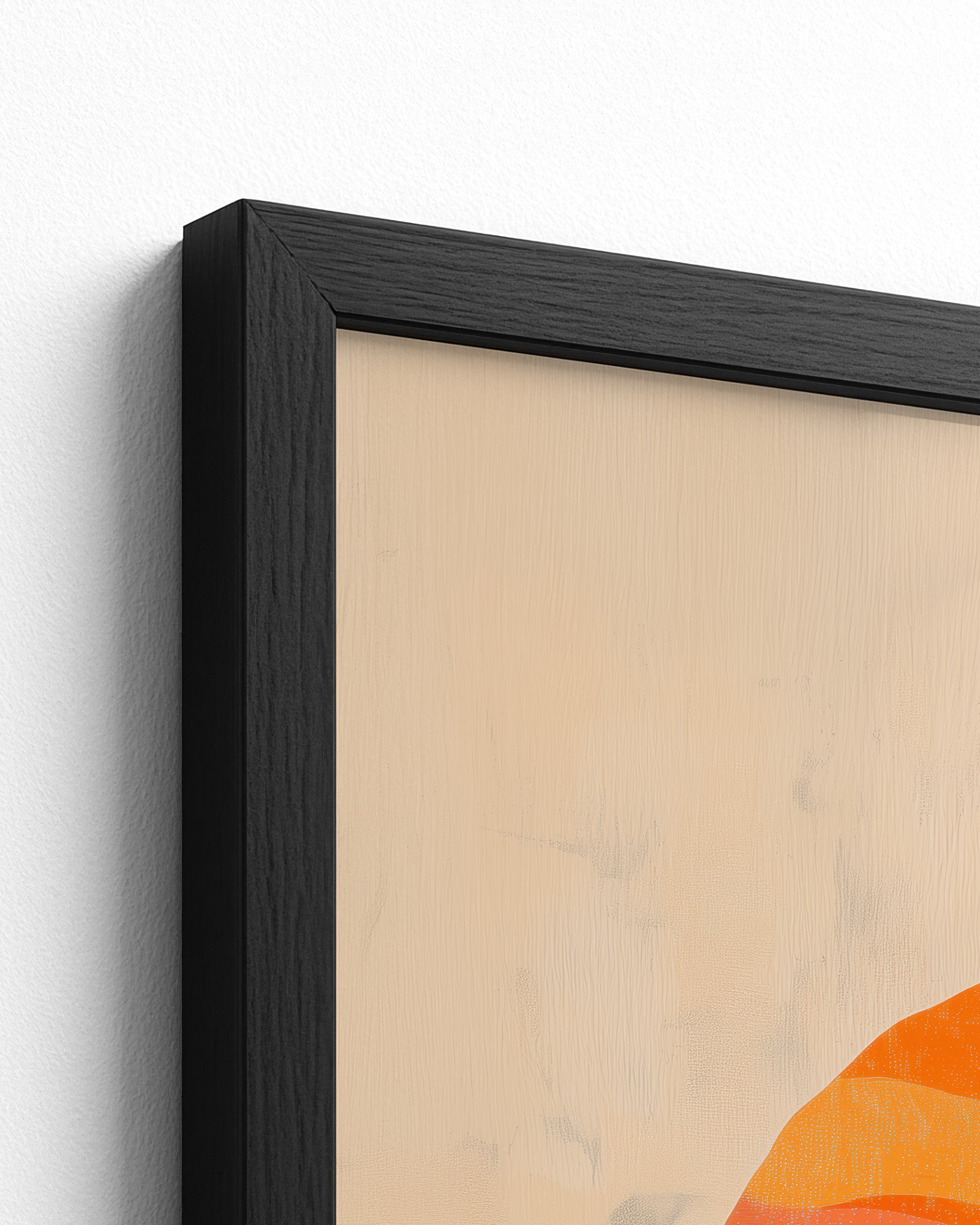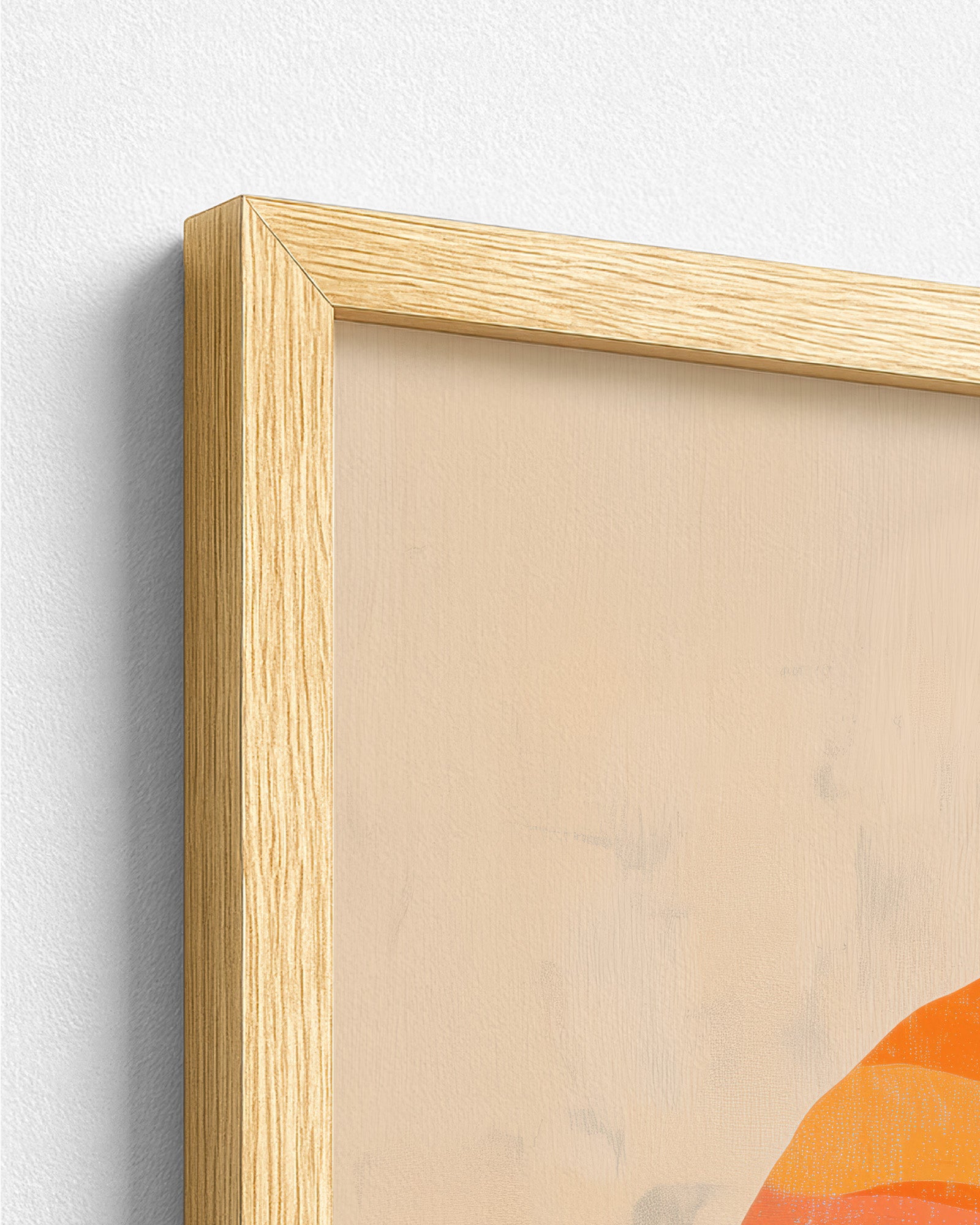 Premium artwork printed on high-quality paper, professionally mounted within a durable pine wood frame.