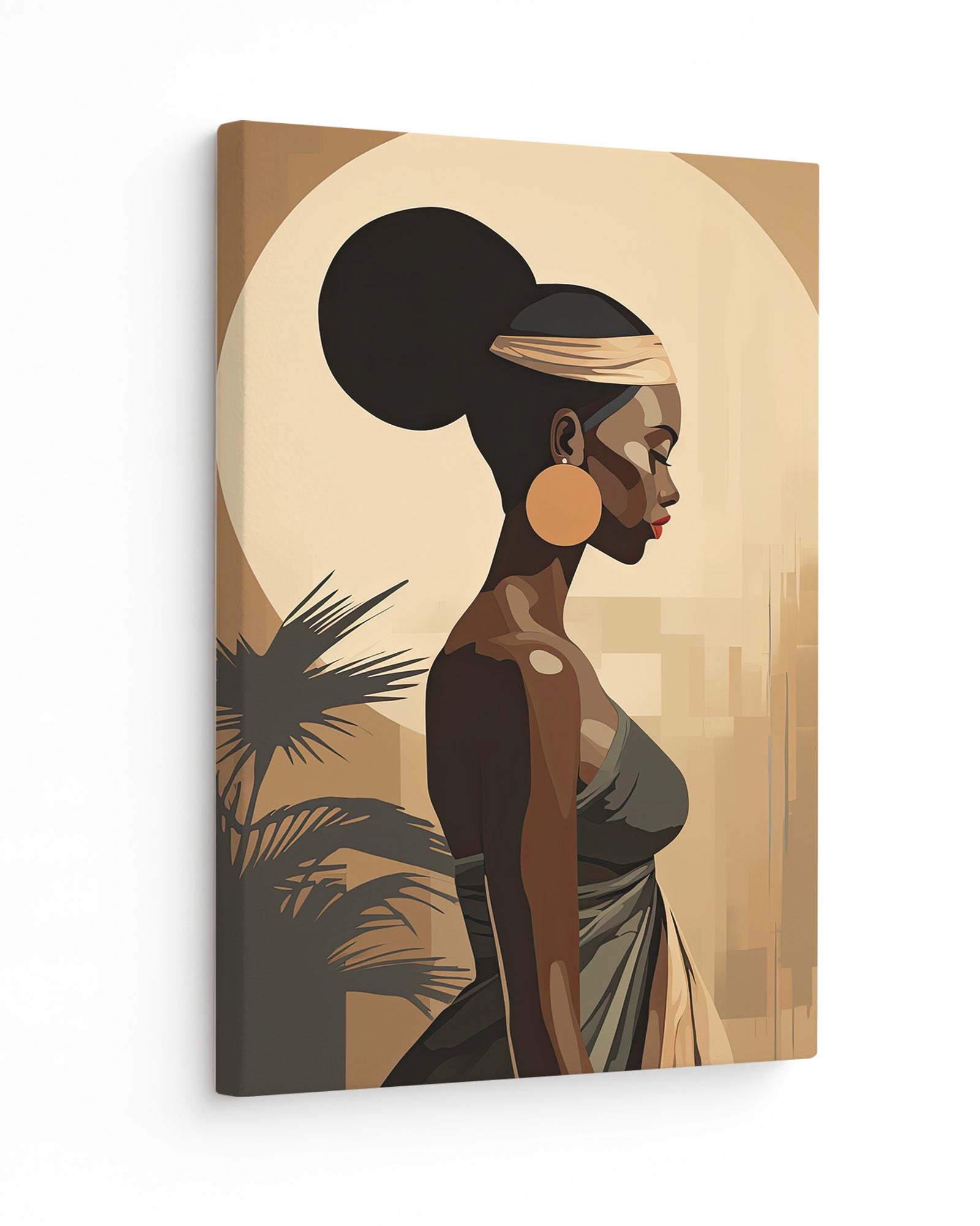 Add a touch of elegance and cultural beauty to your space with this stunning watercolour painting of an African woman. This minimalistic piece features a serene African woman with the moon glowing softly in the background and delicate plants surrounding her.