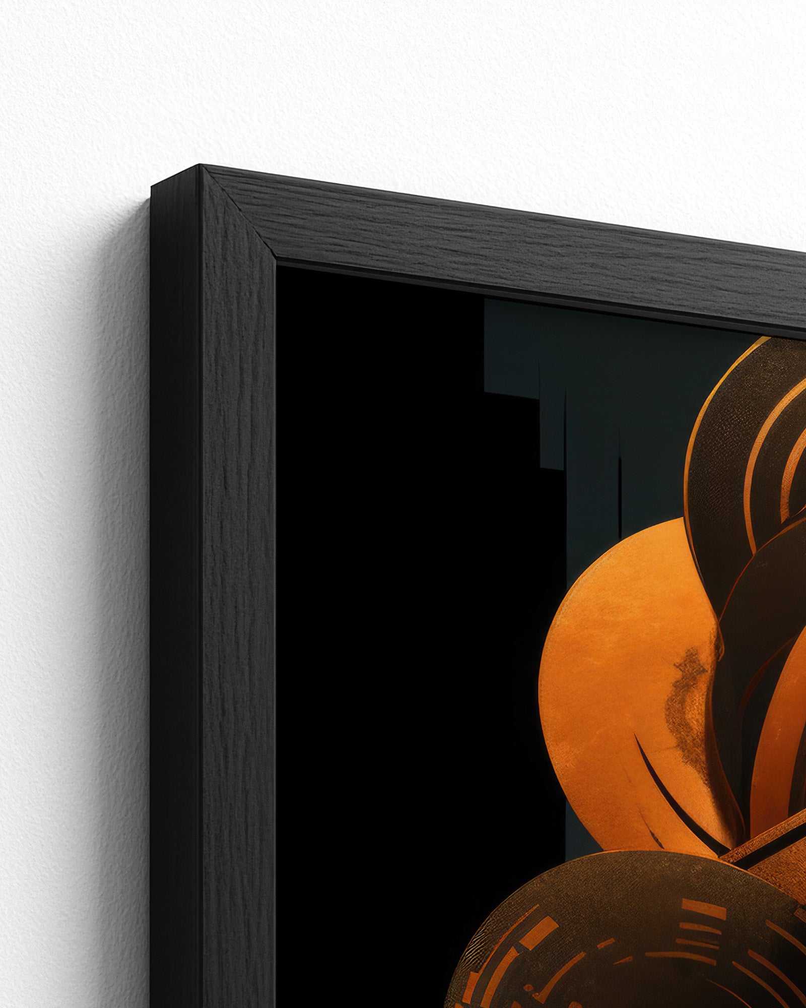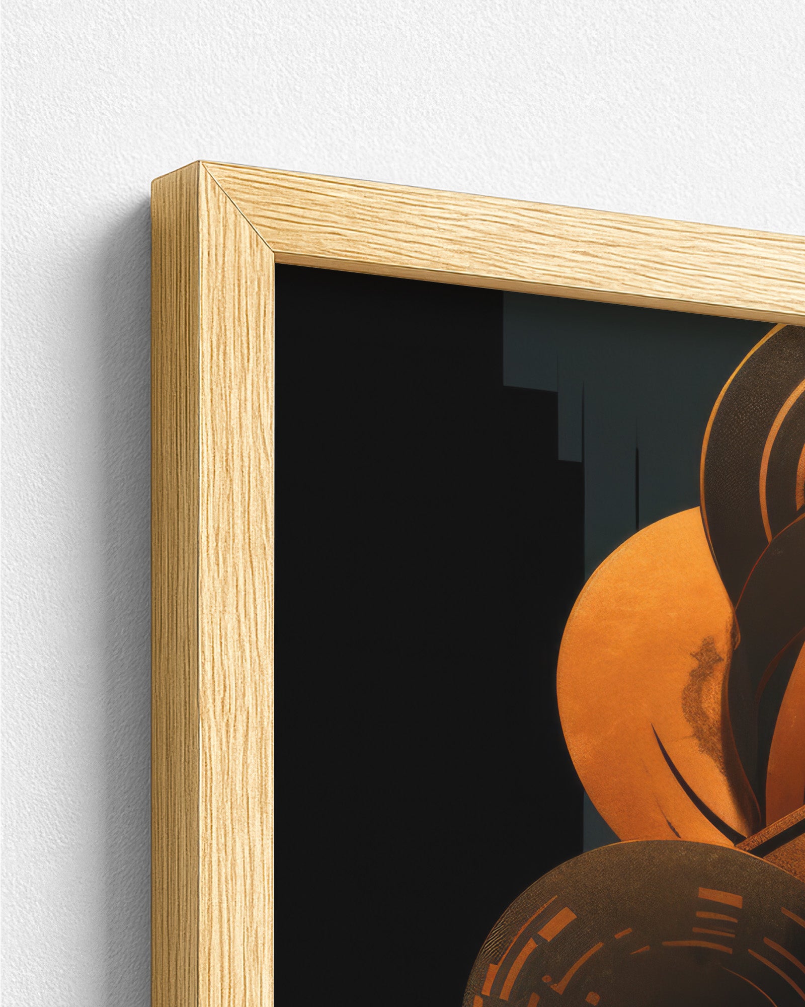 Premium artwork printed on high-quality paper, professionally mounted within a durable pine wood frame.