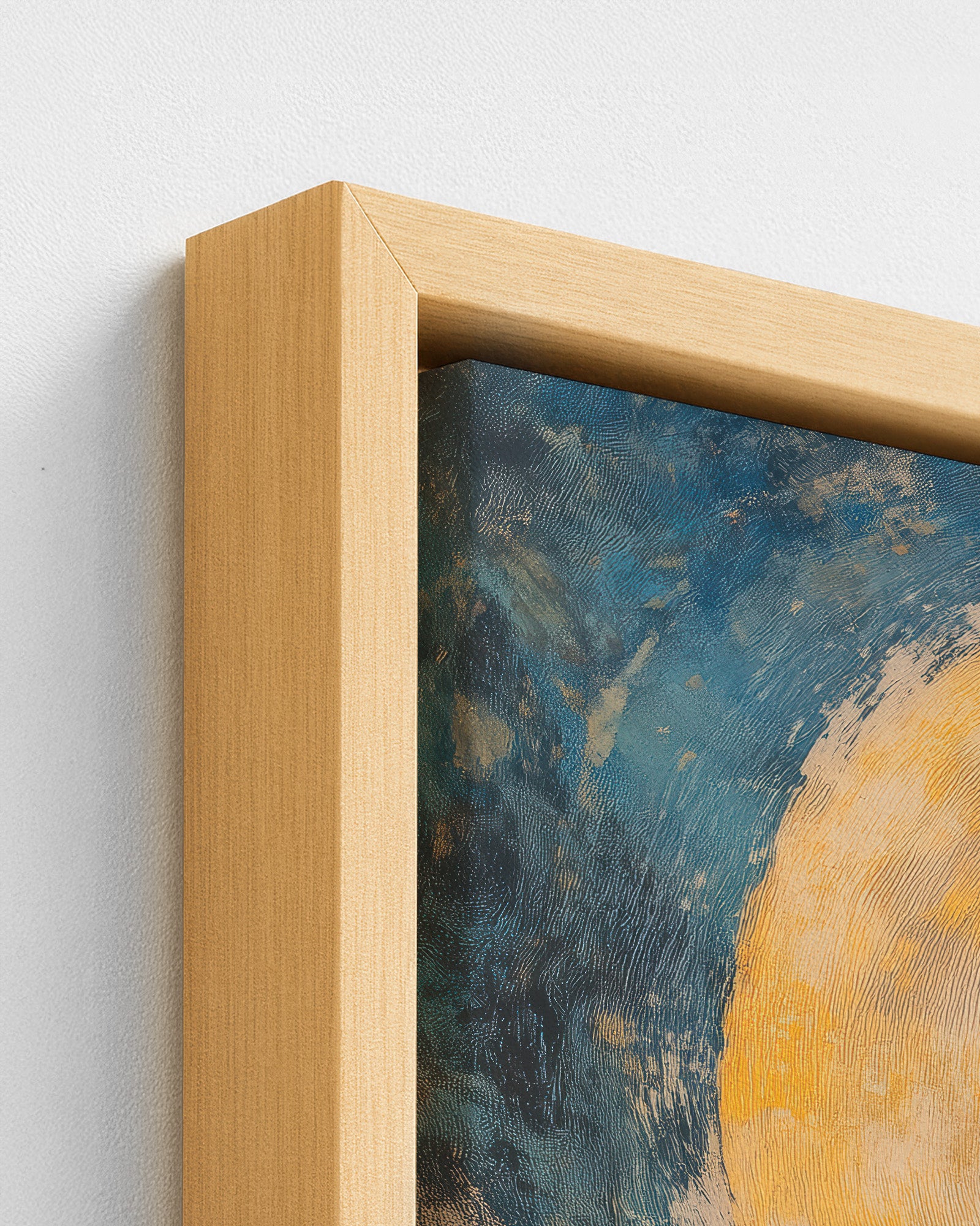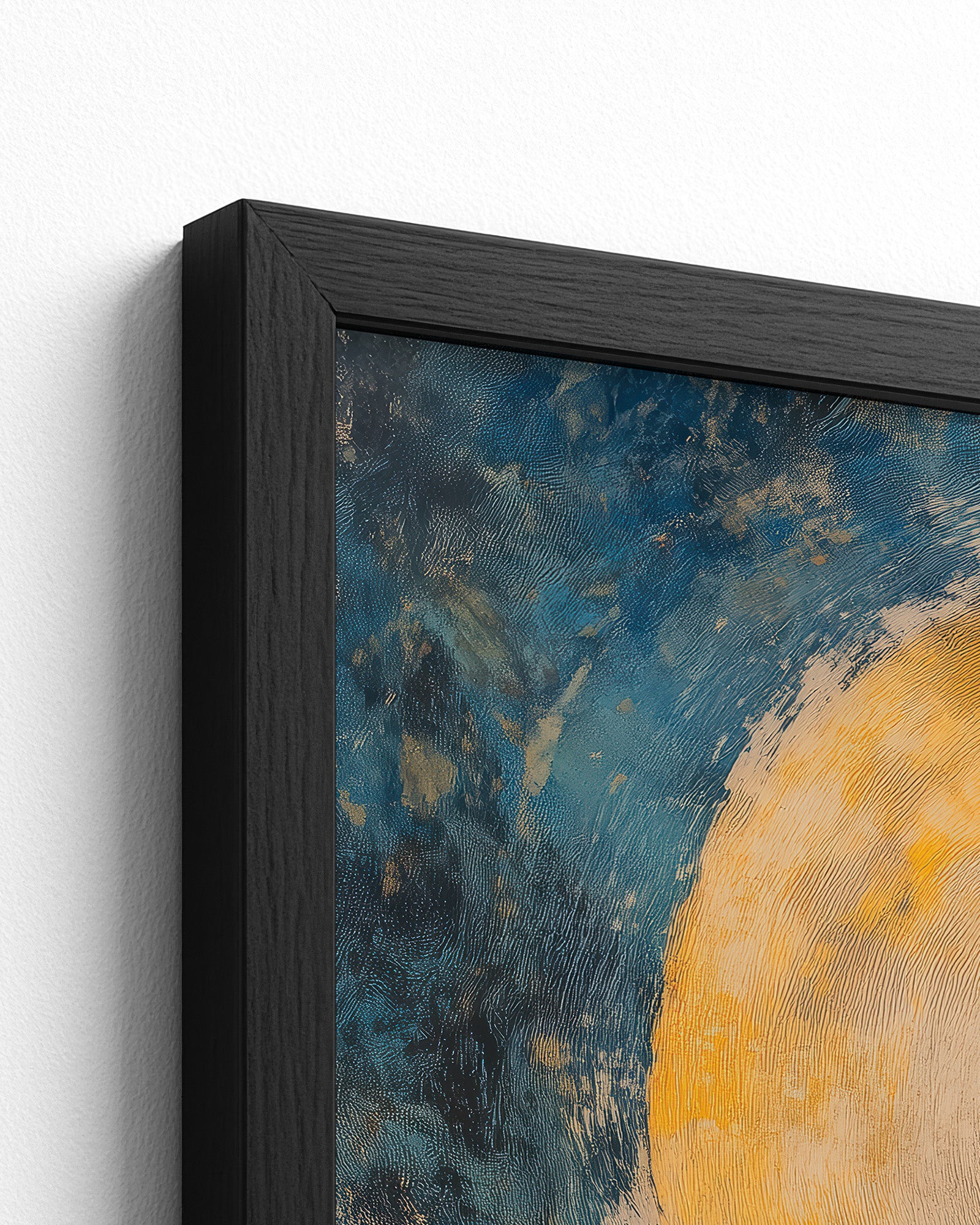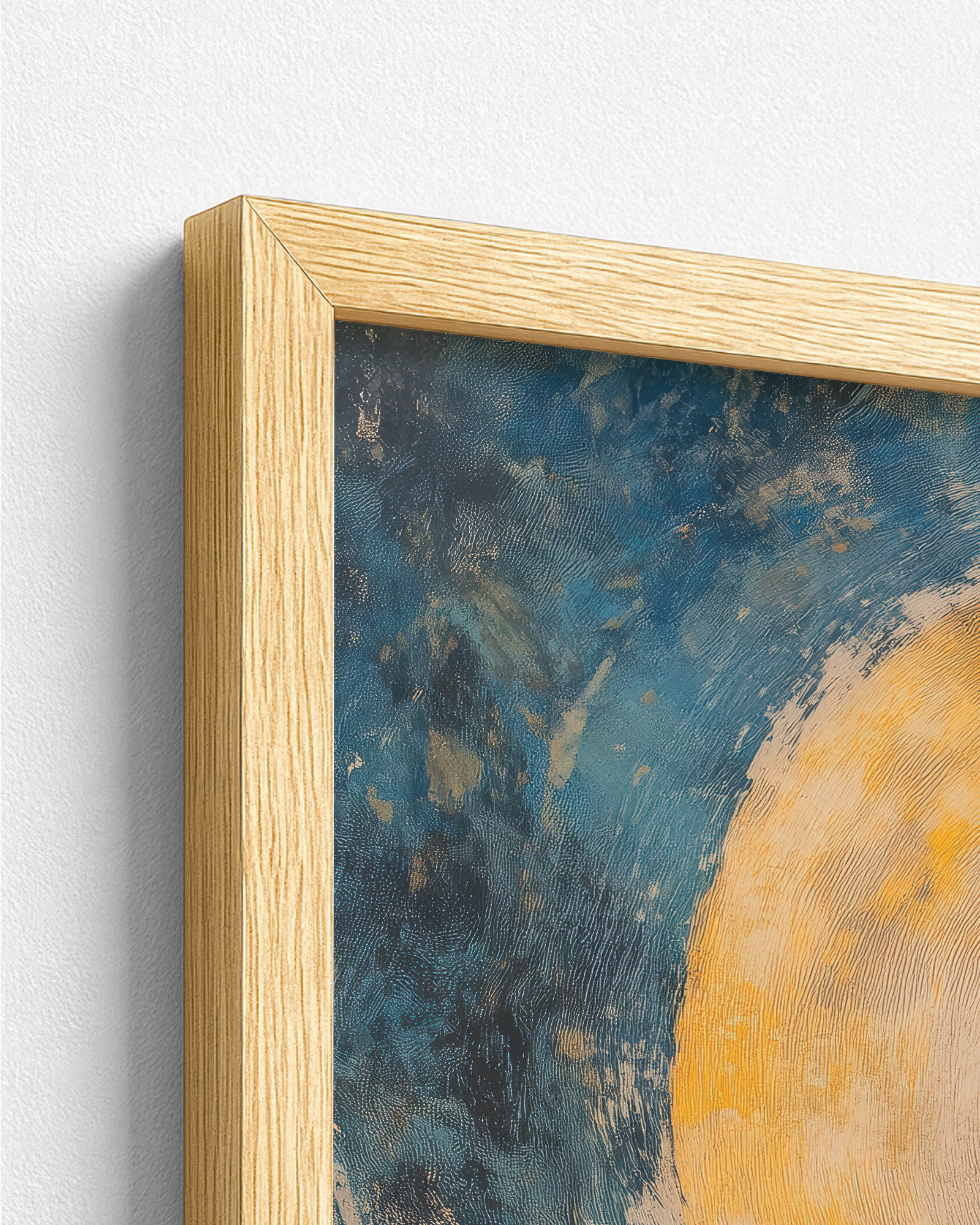 Premium artwork printed on high-quality paper, professionally mounted within a durable pine wood frame.