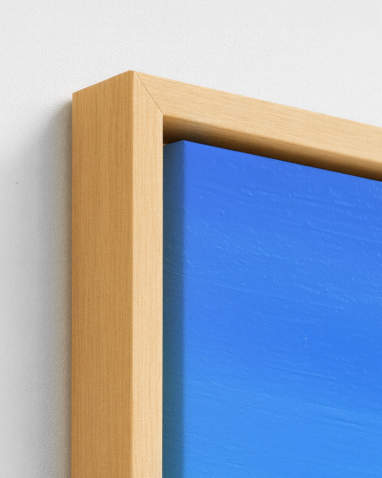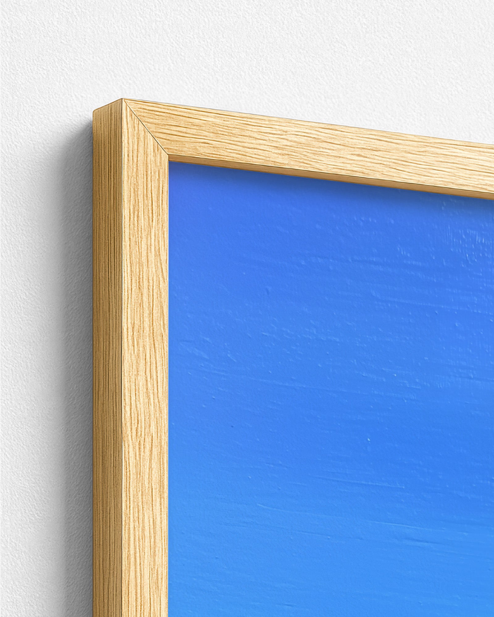 Premium artwork printed on high-quality paper, professionally mounted within a durable pine wood frame.