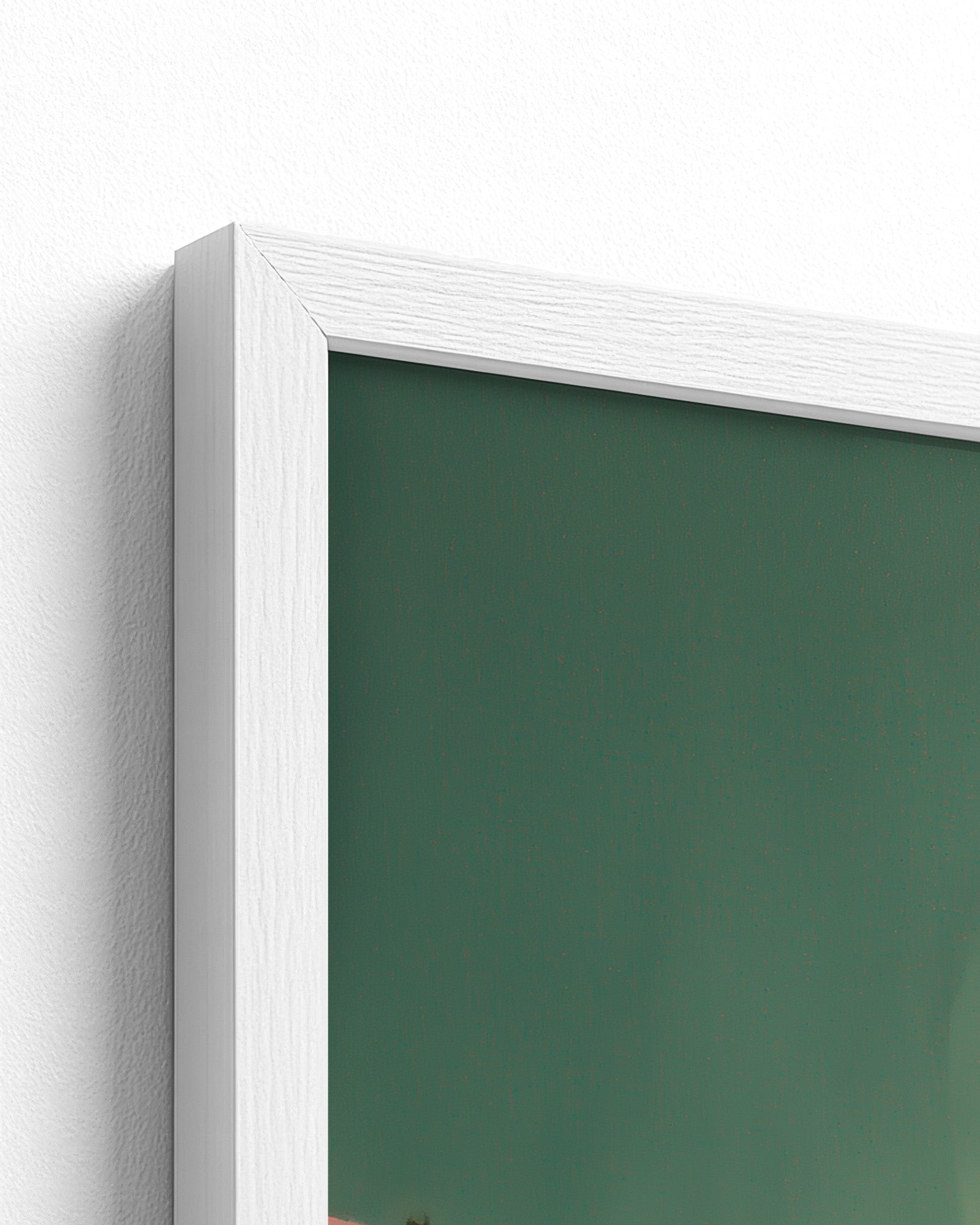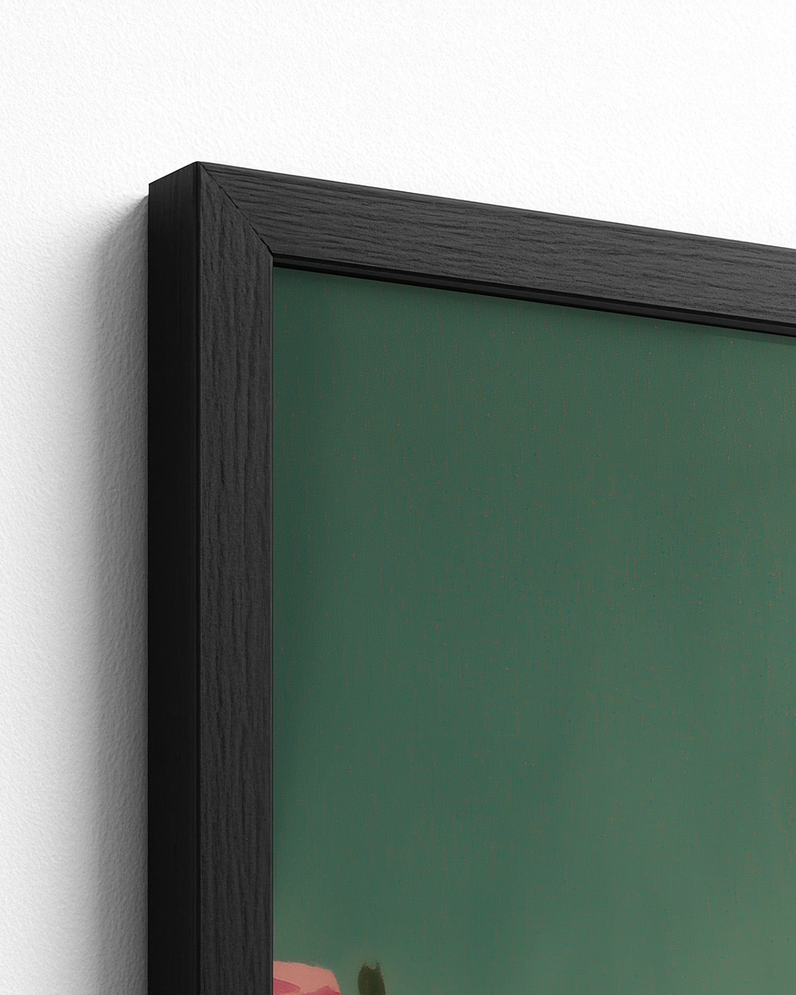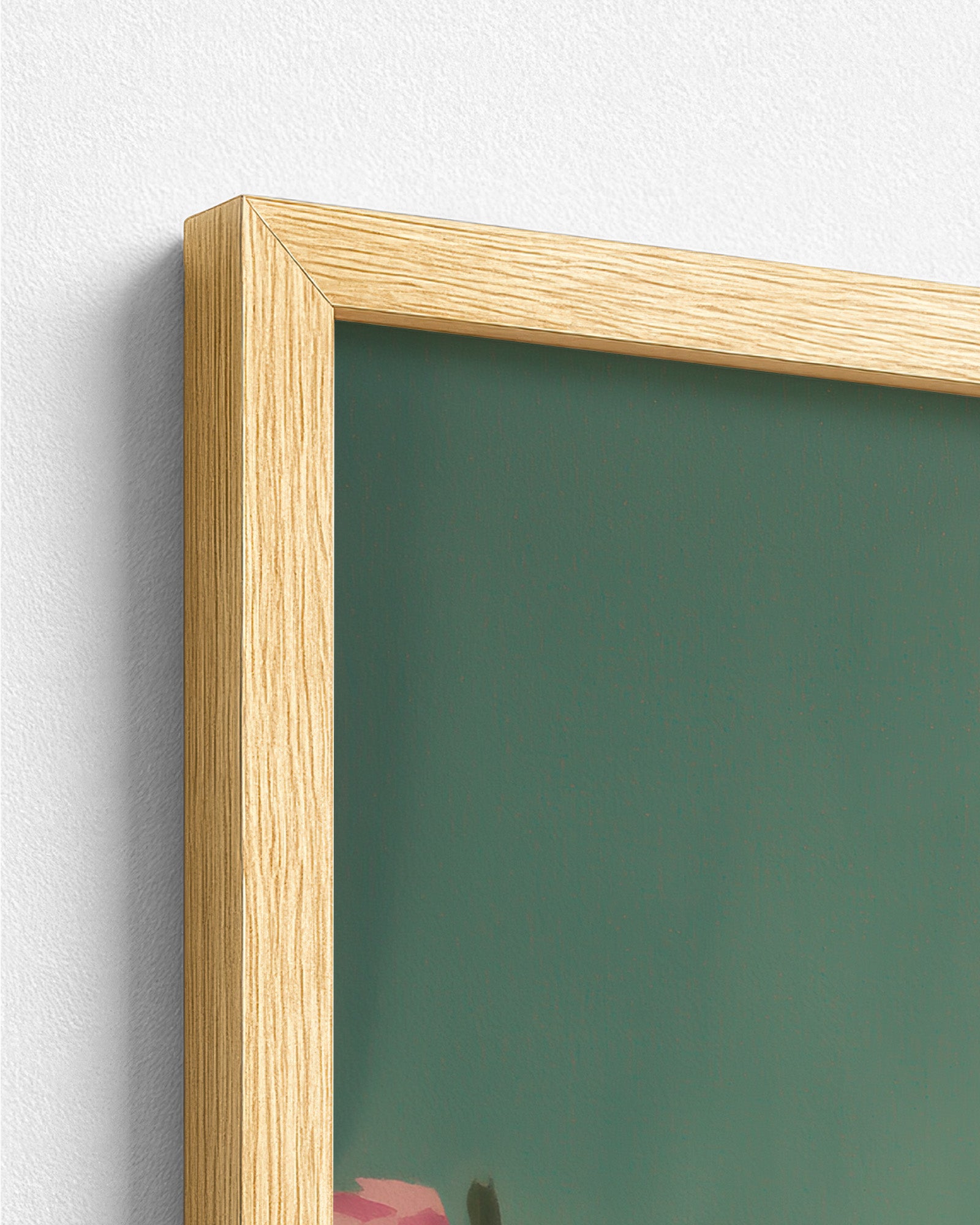 Premium artwork printed on high-quality paper, professionally mounted within a durable pine wood frame.