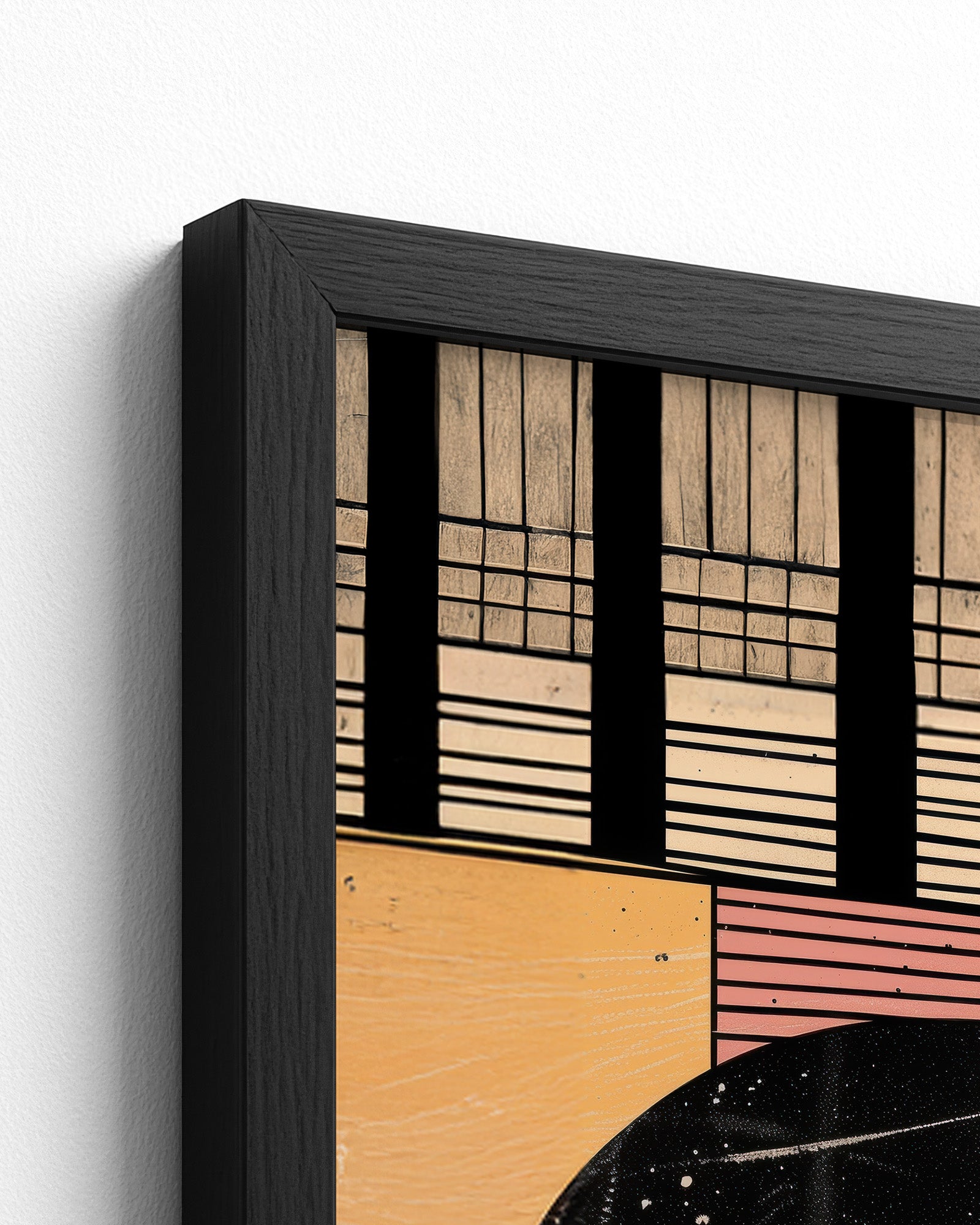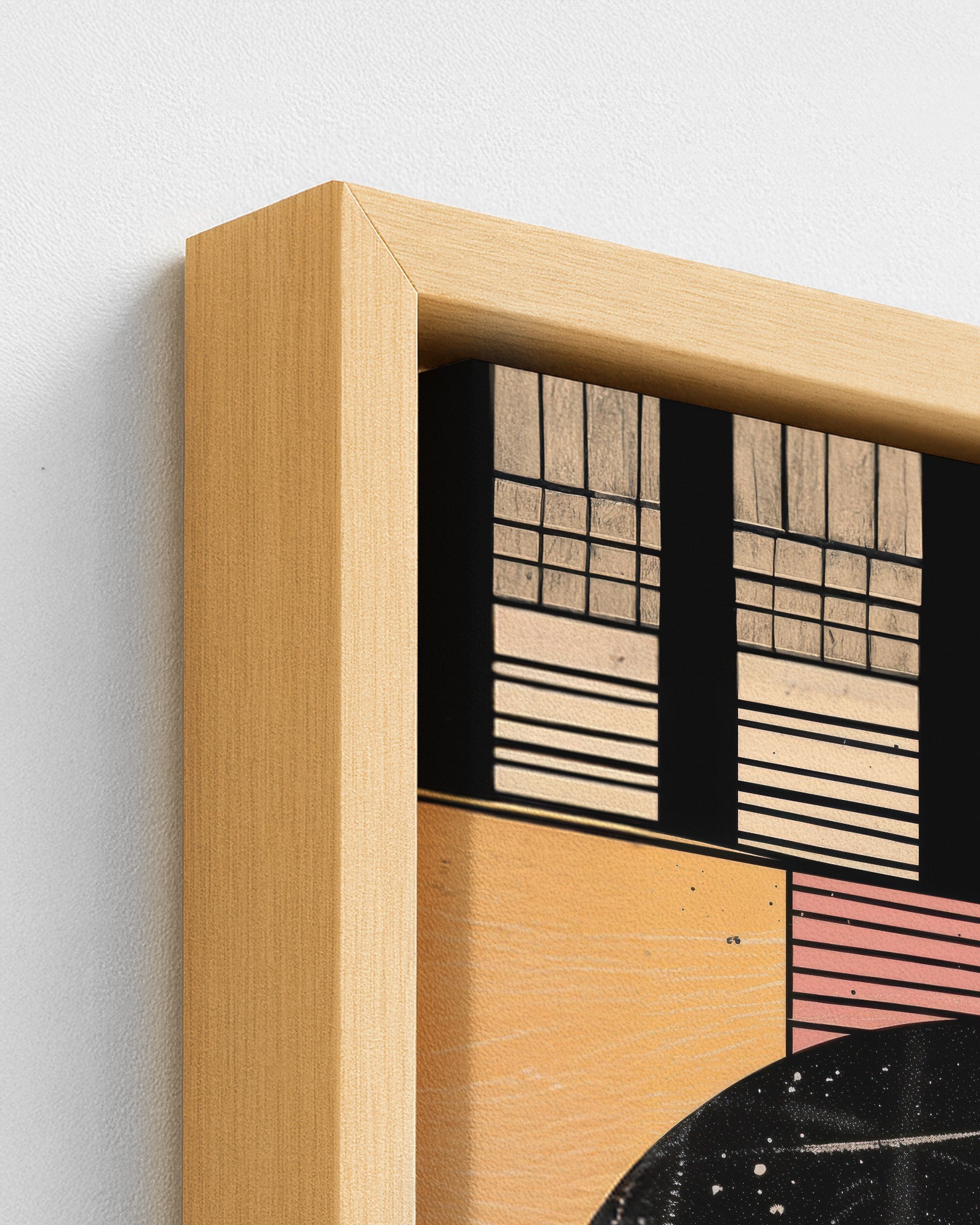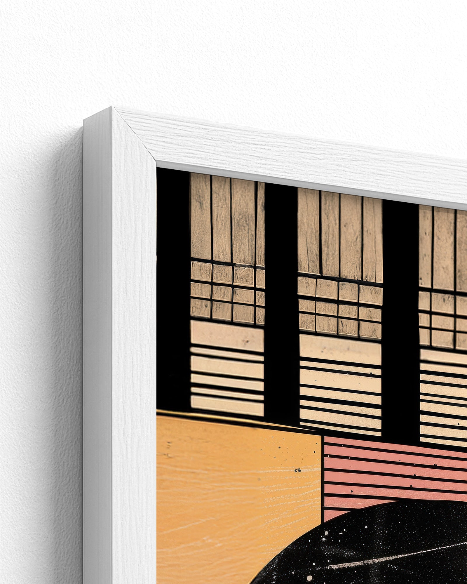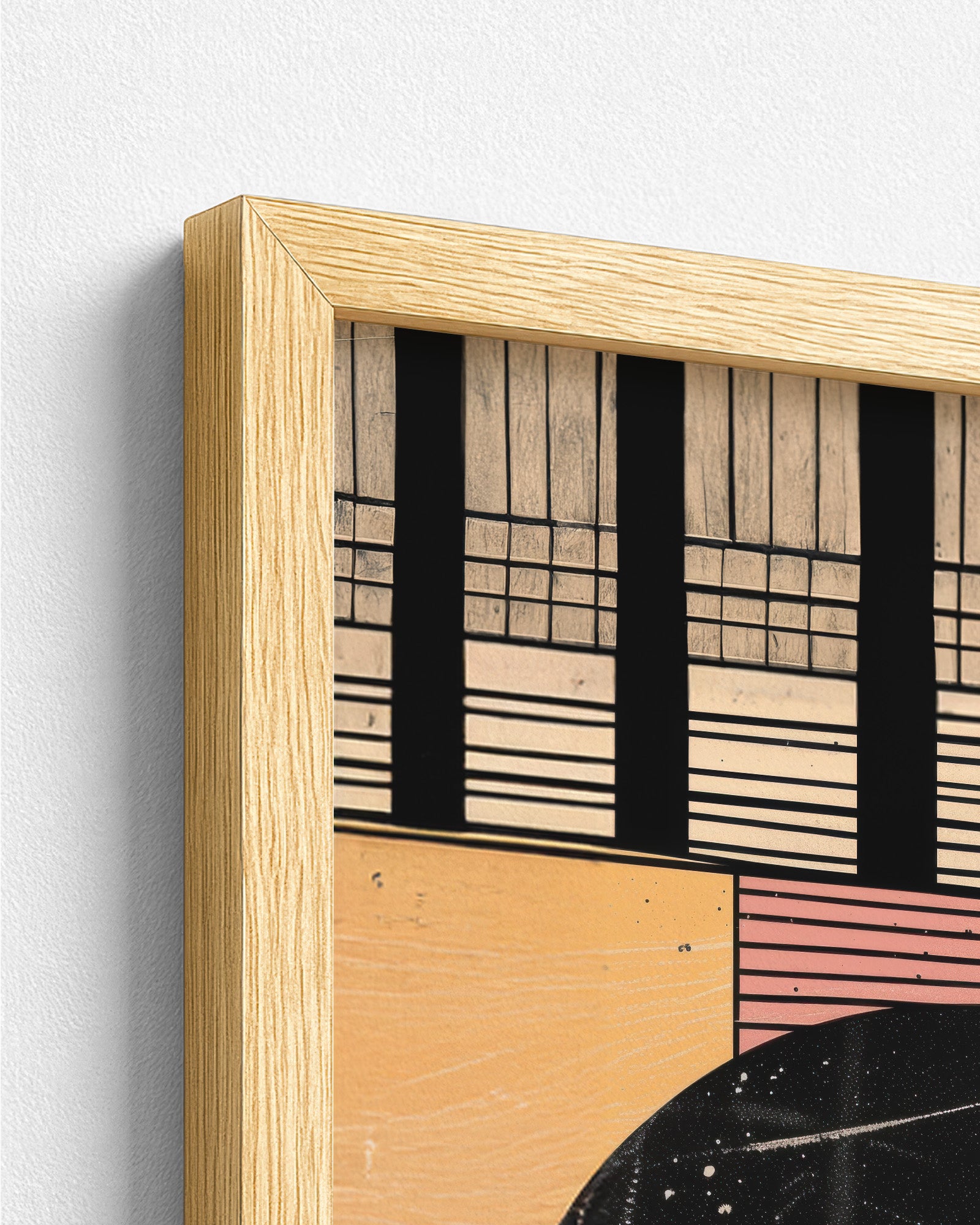 Premium artwork printed on high-quality paper, professionally mounted within a durable pine wood frame.