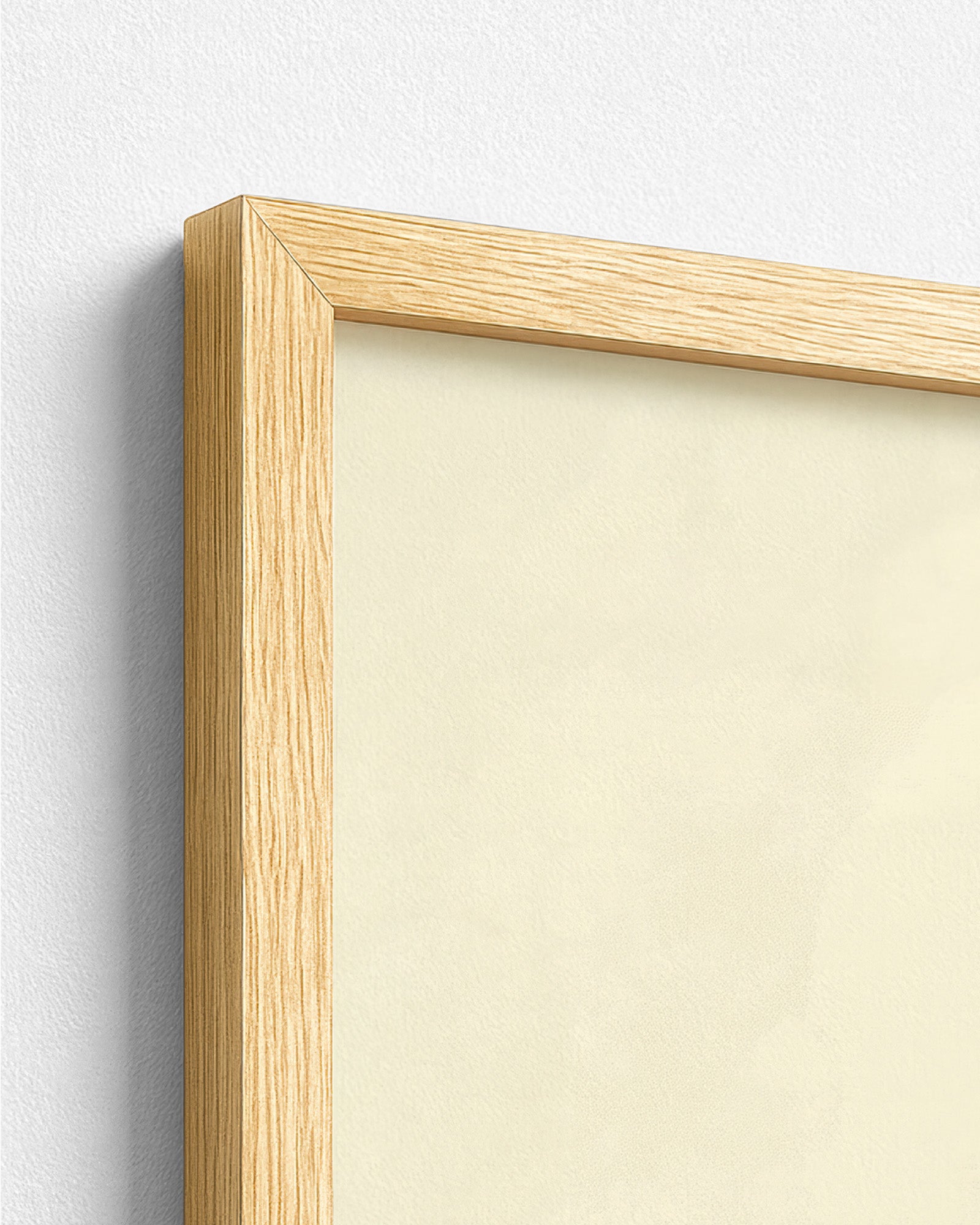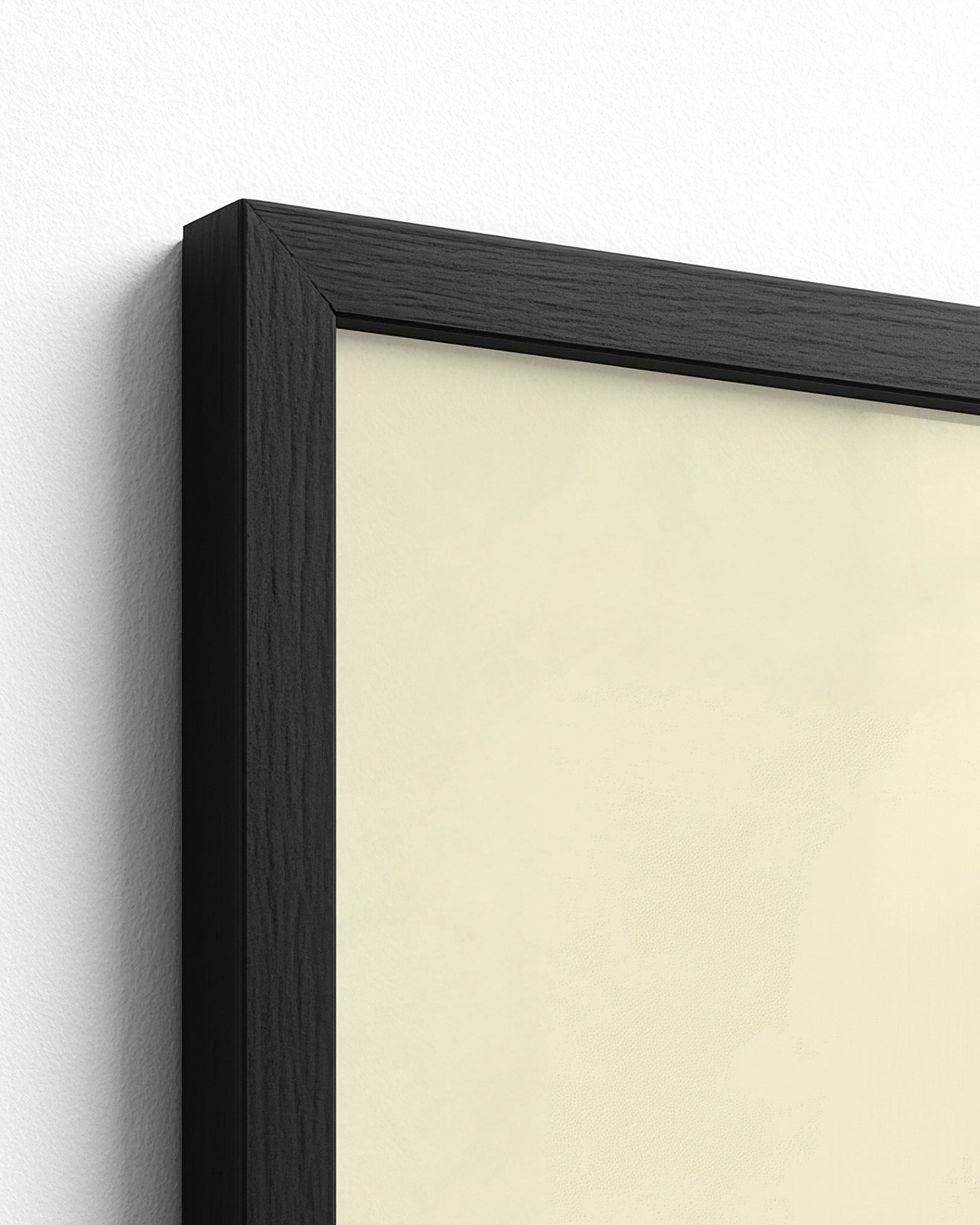Premium artwork printed on high-quality paper, professionally mounted within a durable pine wood frame.