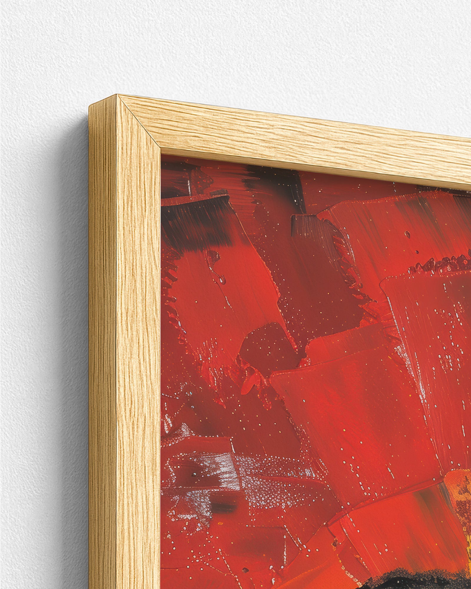 Premium artwork printed on high-quality paper, professionally mounted within a durable pine wood frame.