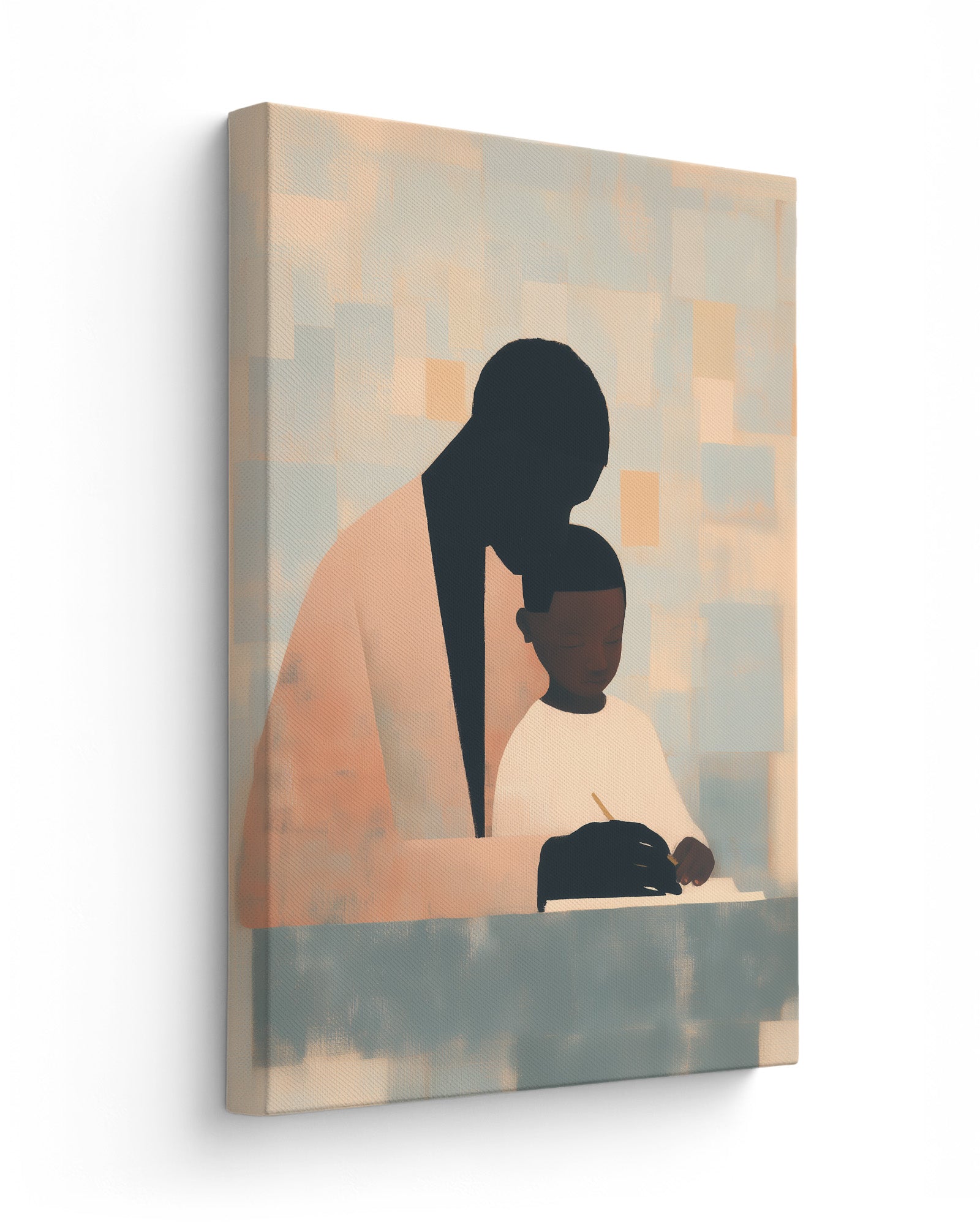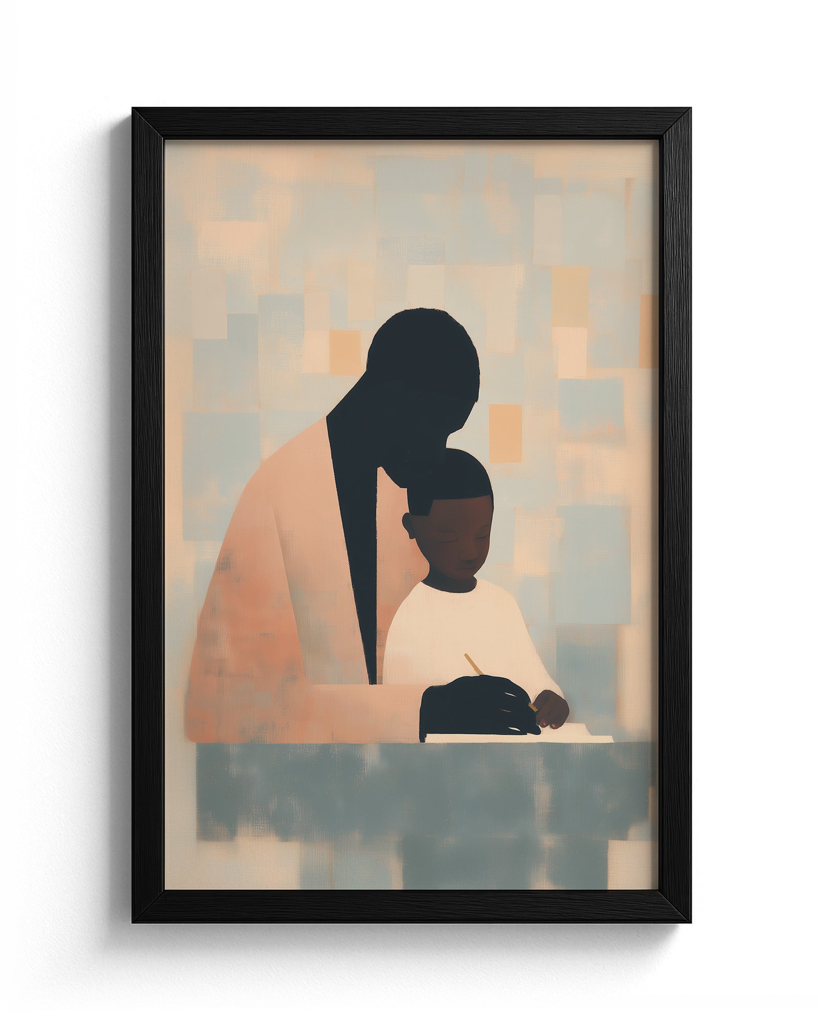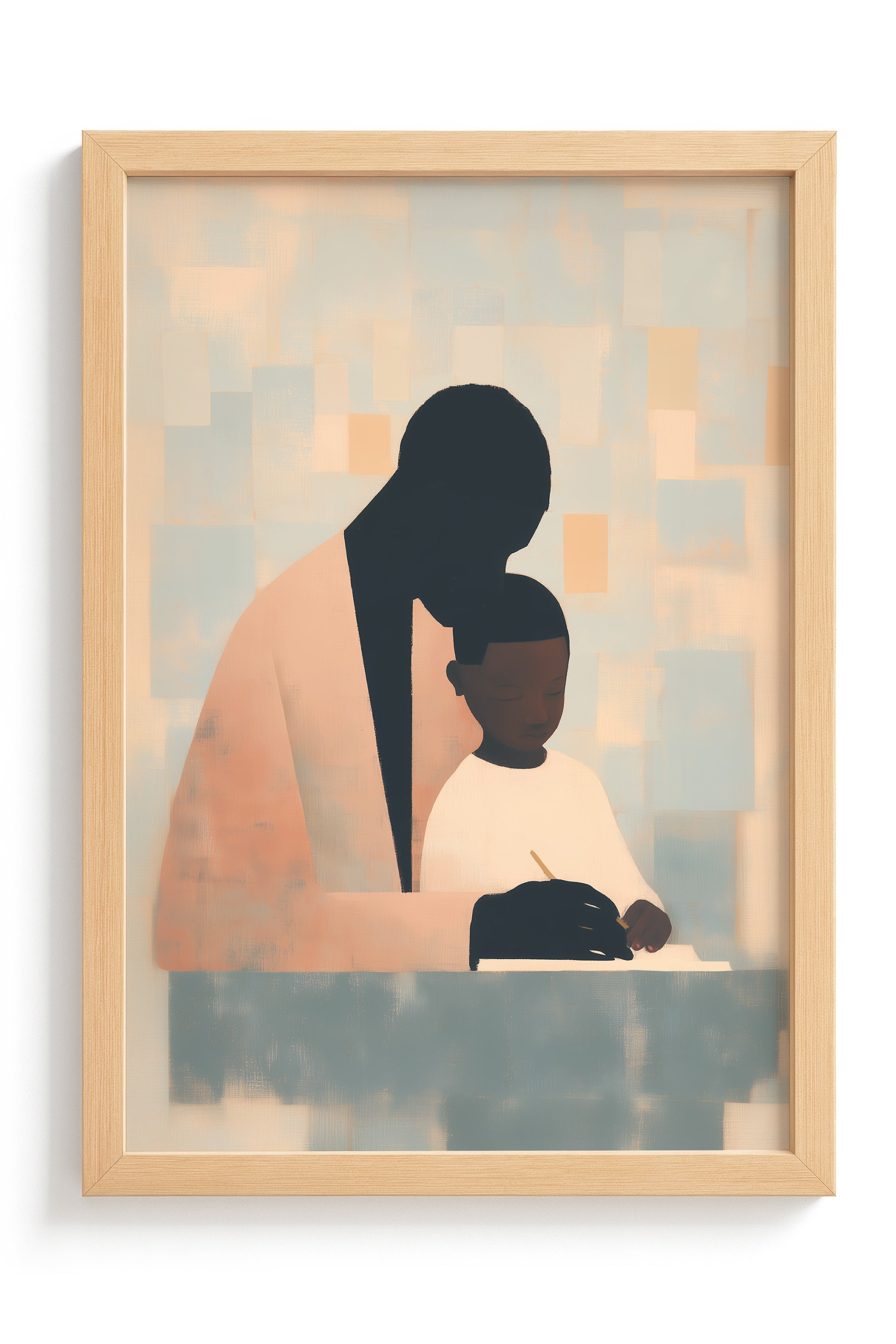 Guided Hands: Art on Paternal Presence, Educational Mentorship, and the Power of Attentive Care. This tender composition explores the profound intimacy of knowledge transfer between parent and child, revealing how guidance transcends mere academic instruction to become an act of deep presence and emotional investment.
