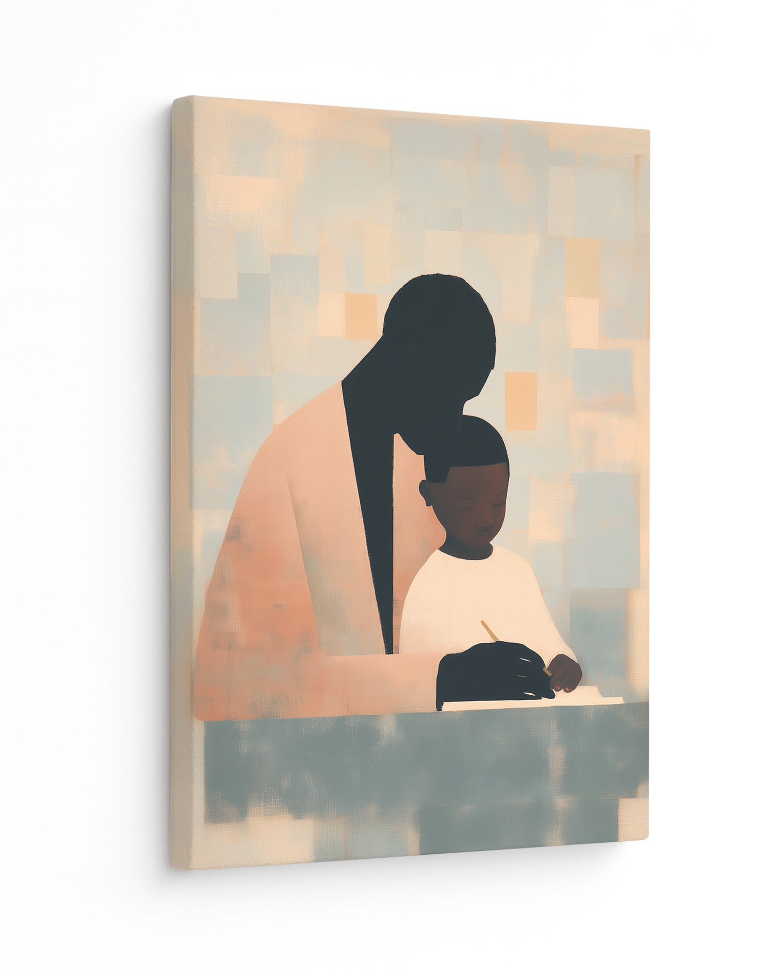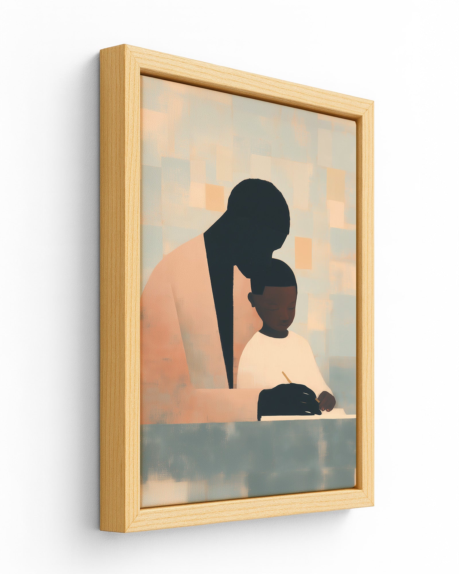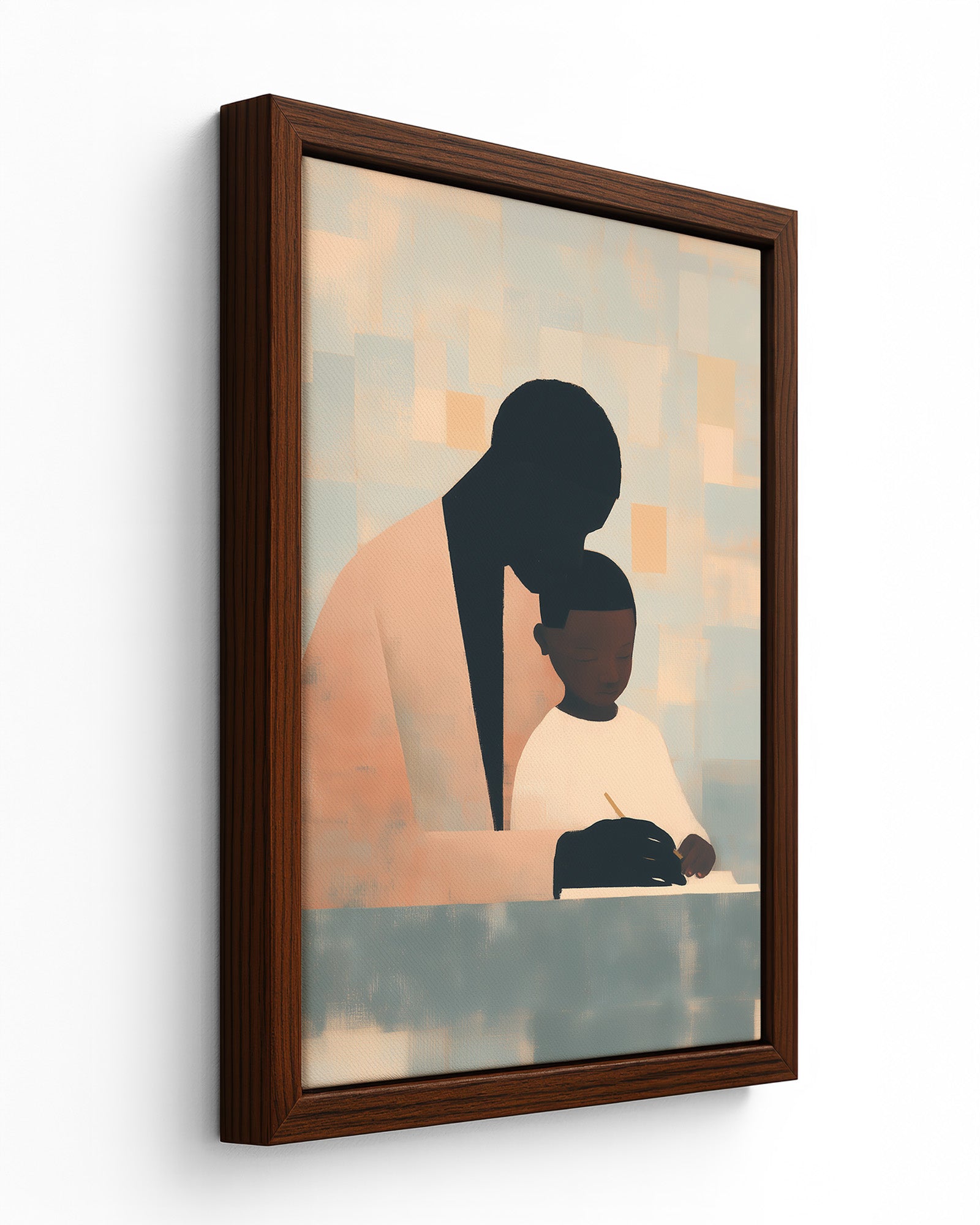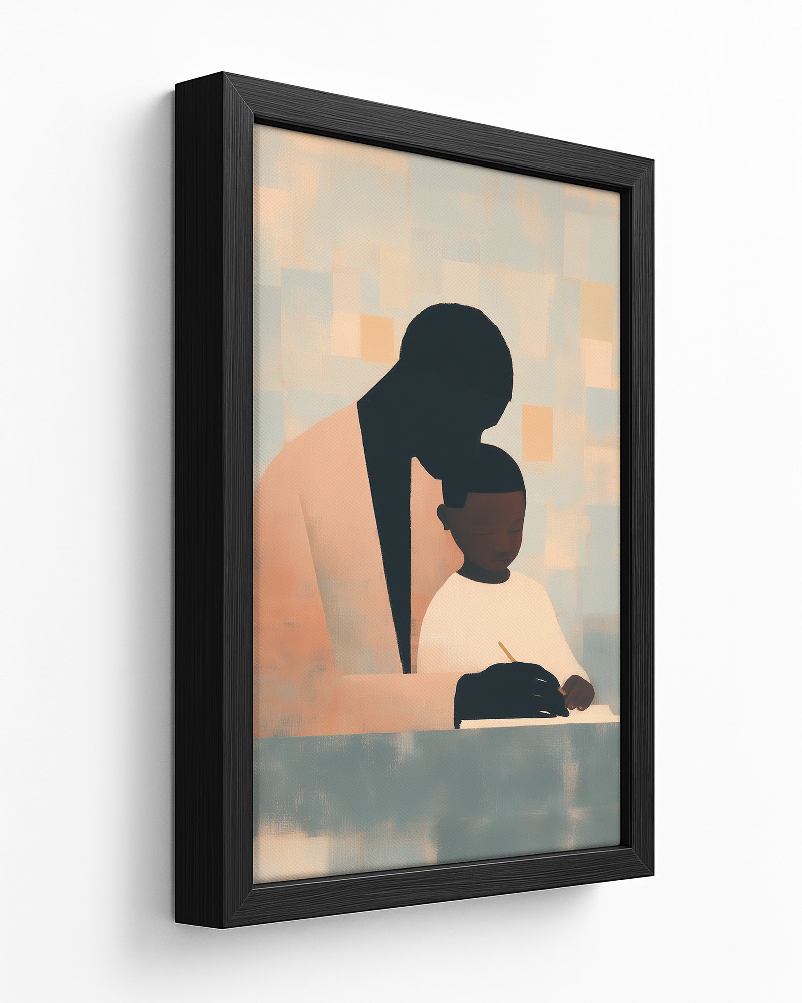 Guided Hands: Art on Paternal Presence, Educational Mentorship, and the Power of Attentive Care. This tender composition explores the profound intimacy of knowledge transfer between parent and child, revealing how guidance transcends mere academic instruction to become an act of deep presence and emotional investment.