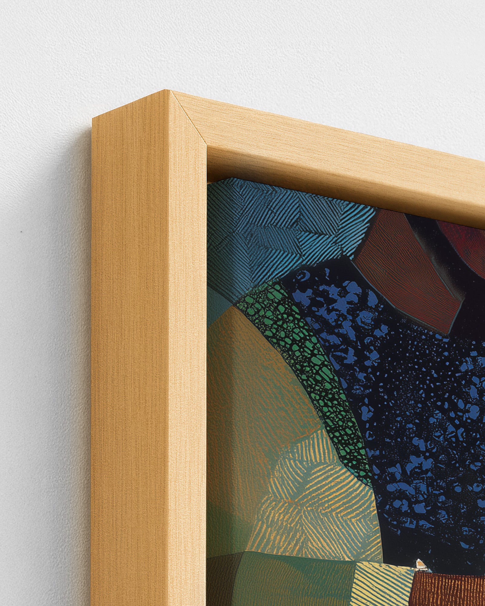 Premium artwork printed on high-quality paper, professionally mounted within a durable pine wood frame.