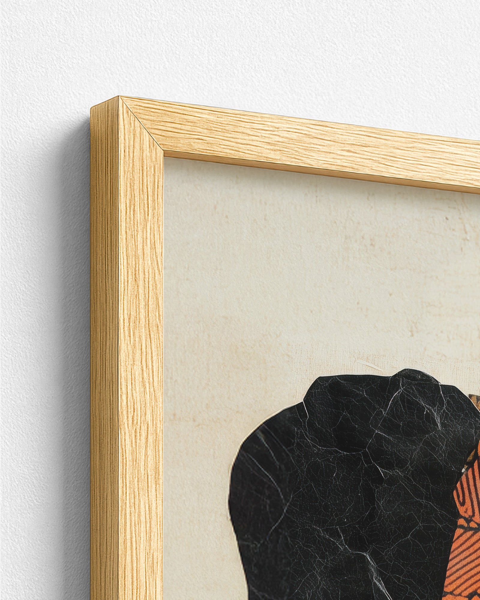 Premium artwork printed on high-quality paper, professionally mounted within a durable pine wood frame.