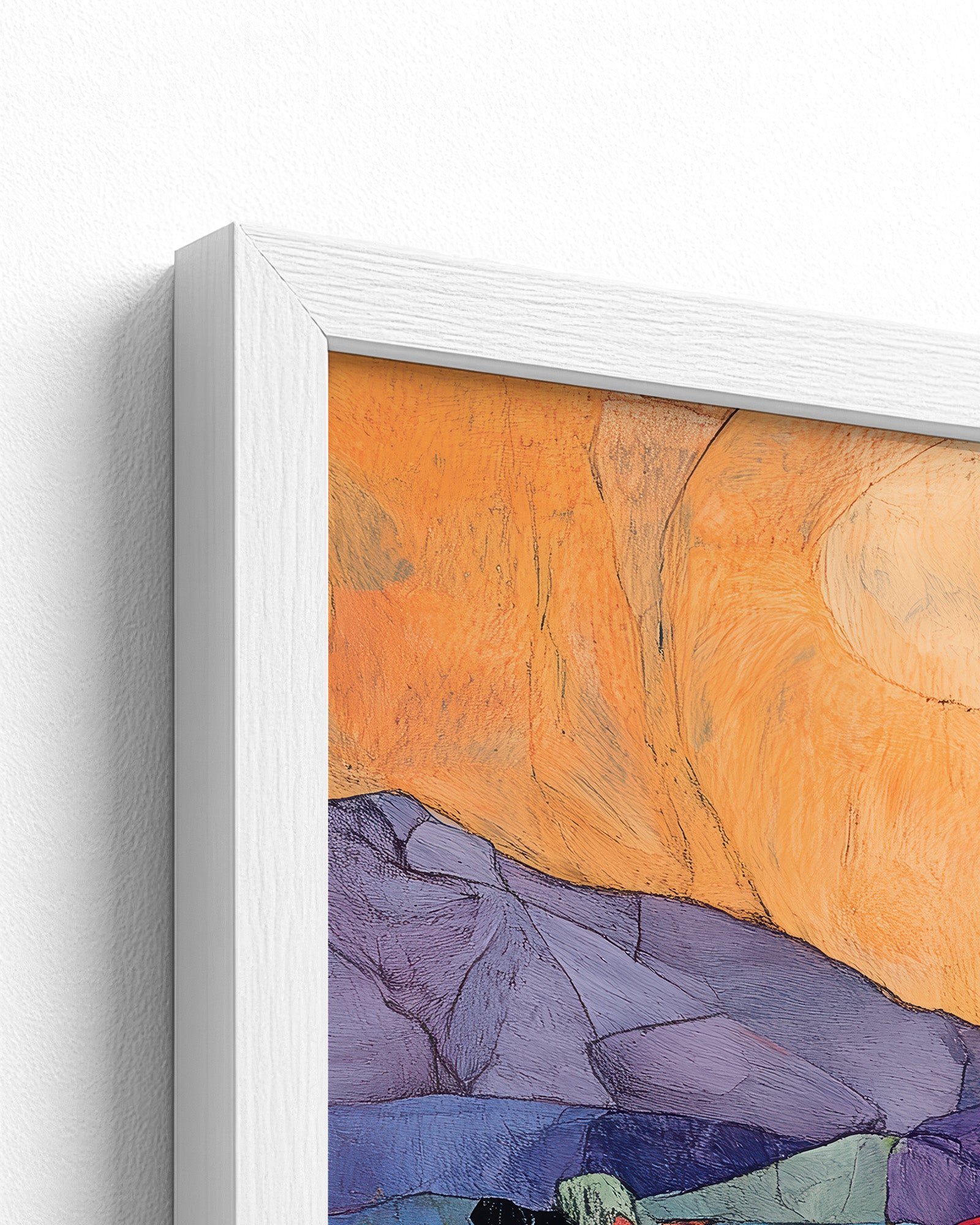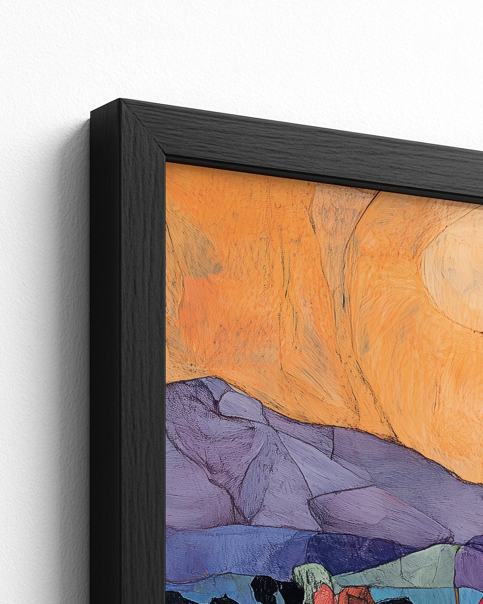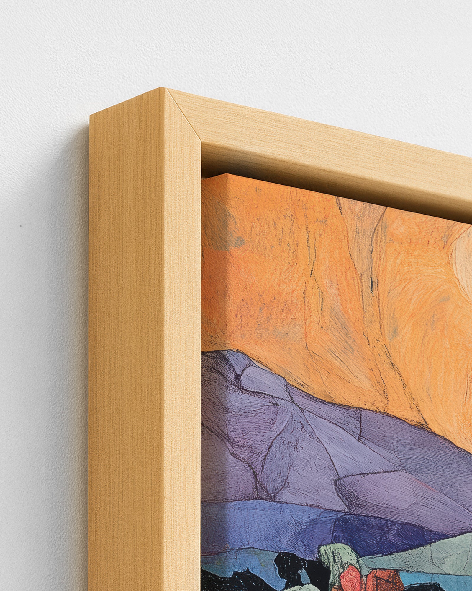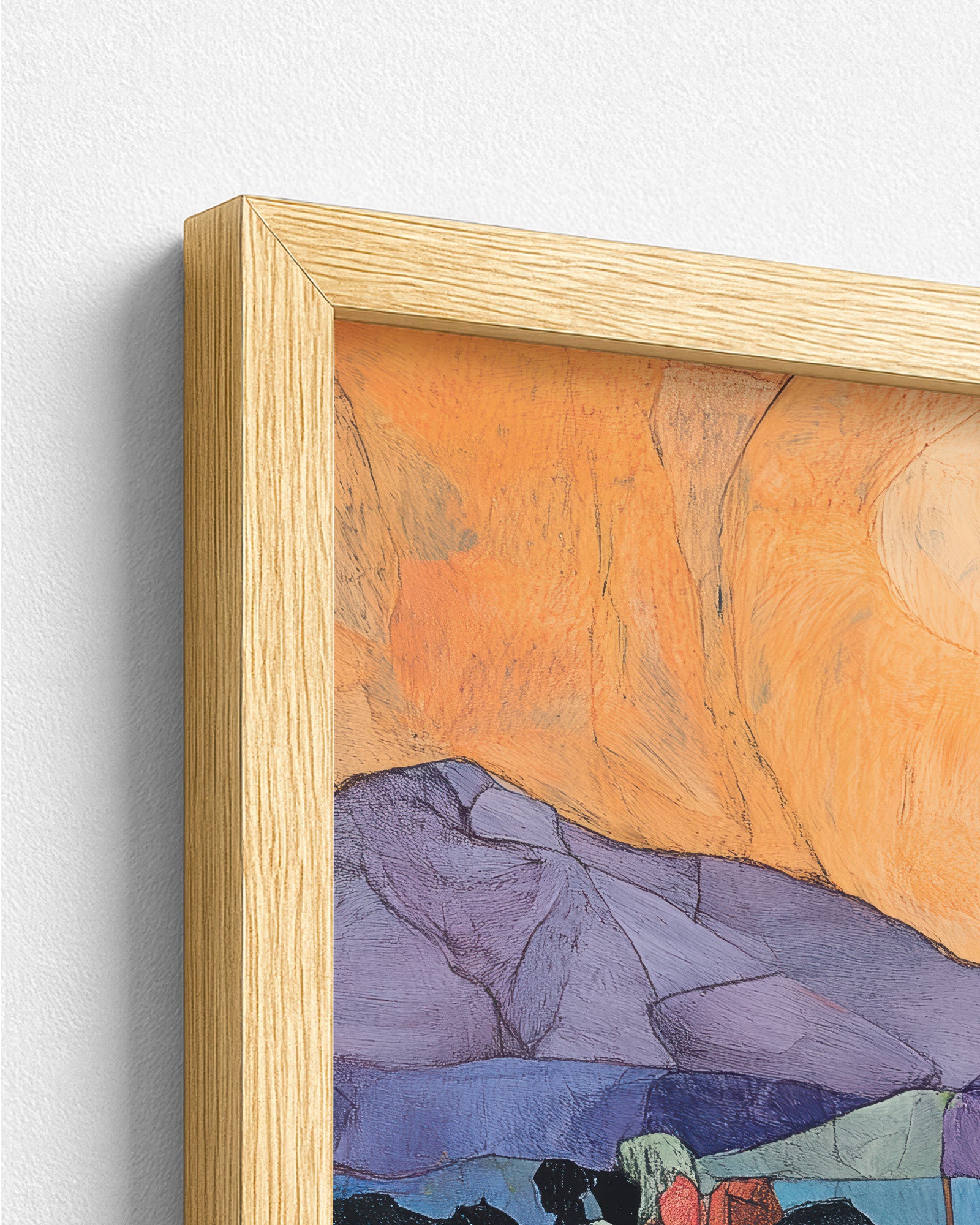 Premium artwork printed on high-quality paper, professionally mounted within a durable pine wood frame.