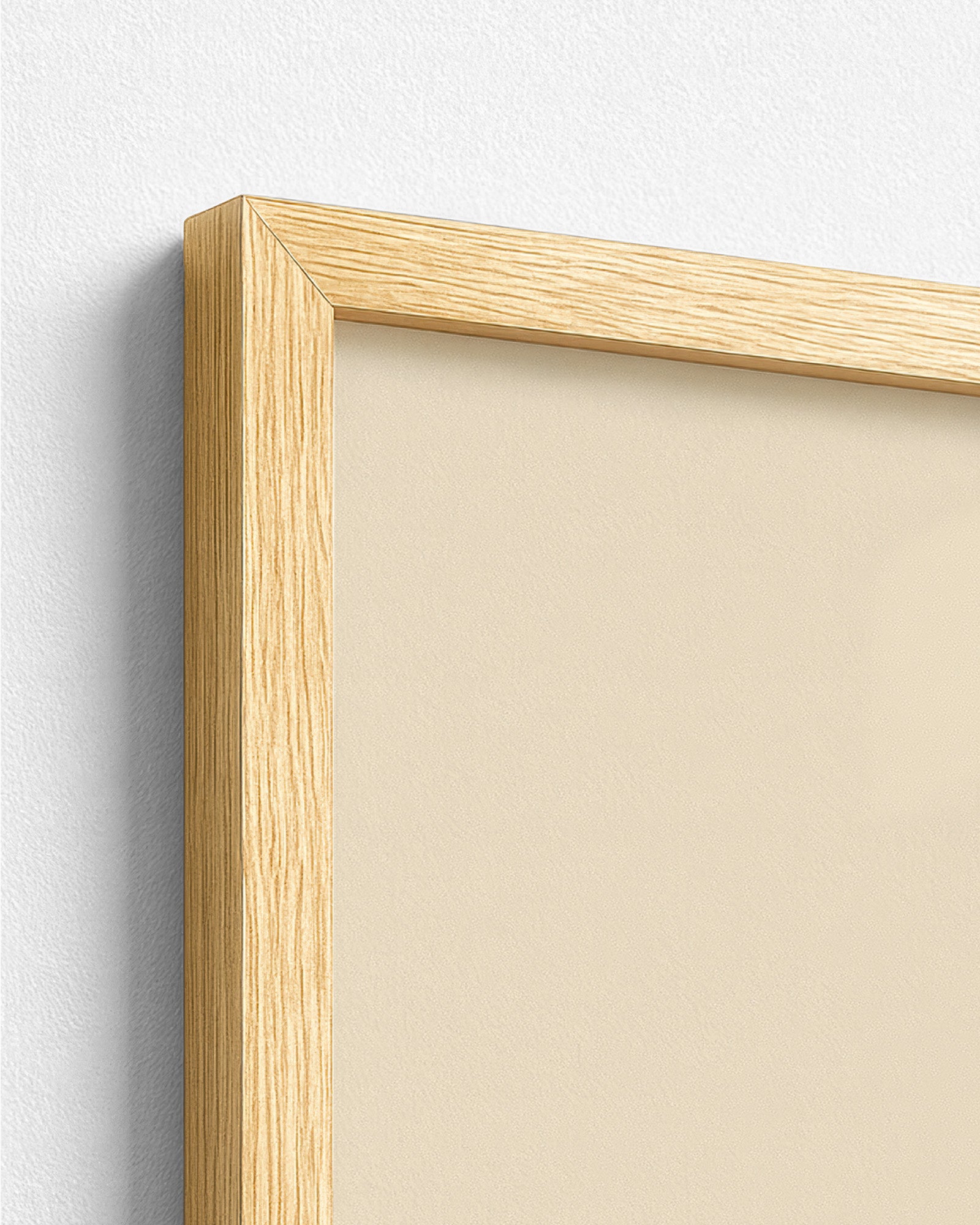 Premium artwork printed on high-quality paper, professionally mounted within a durable pine wood frame.