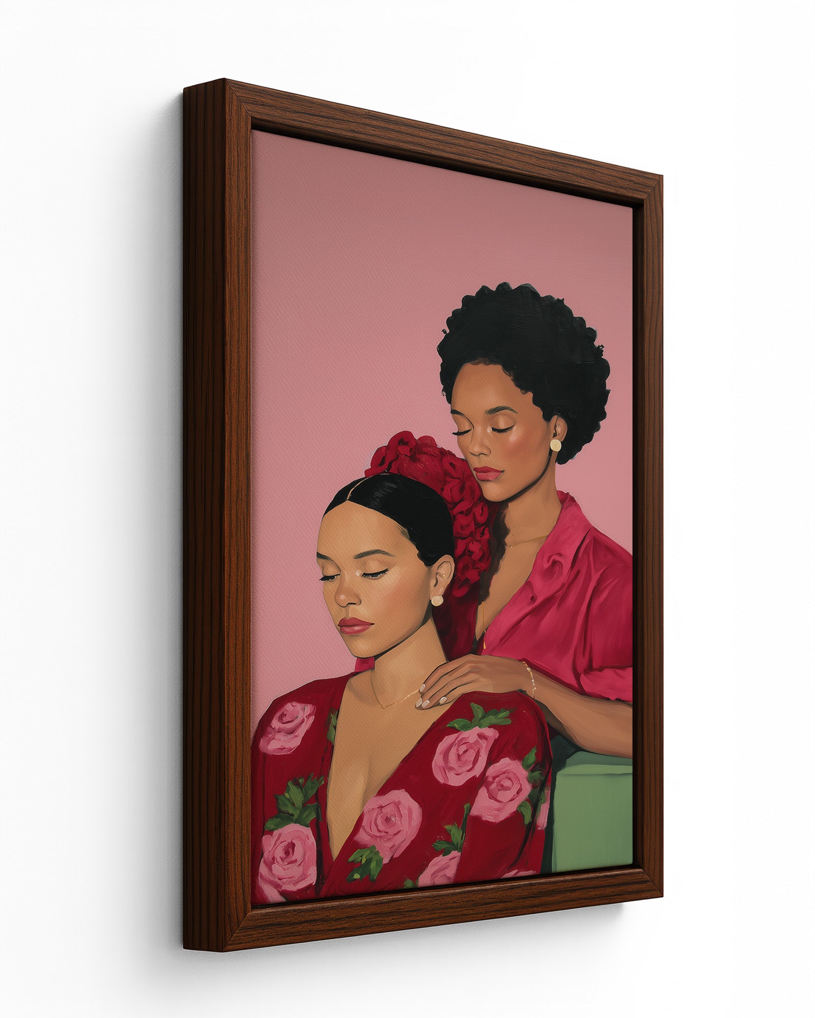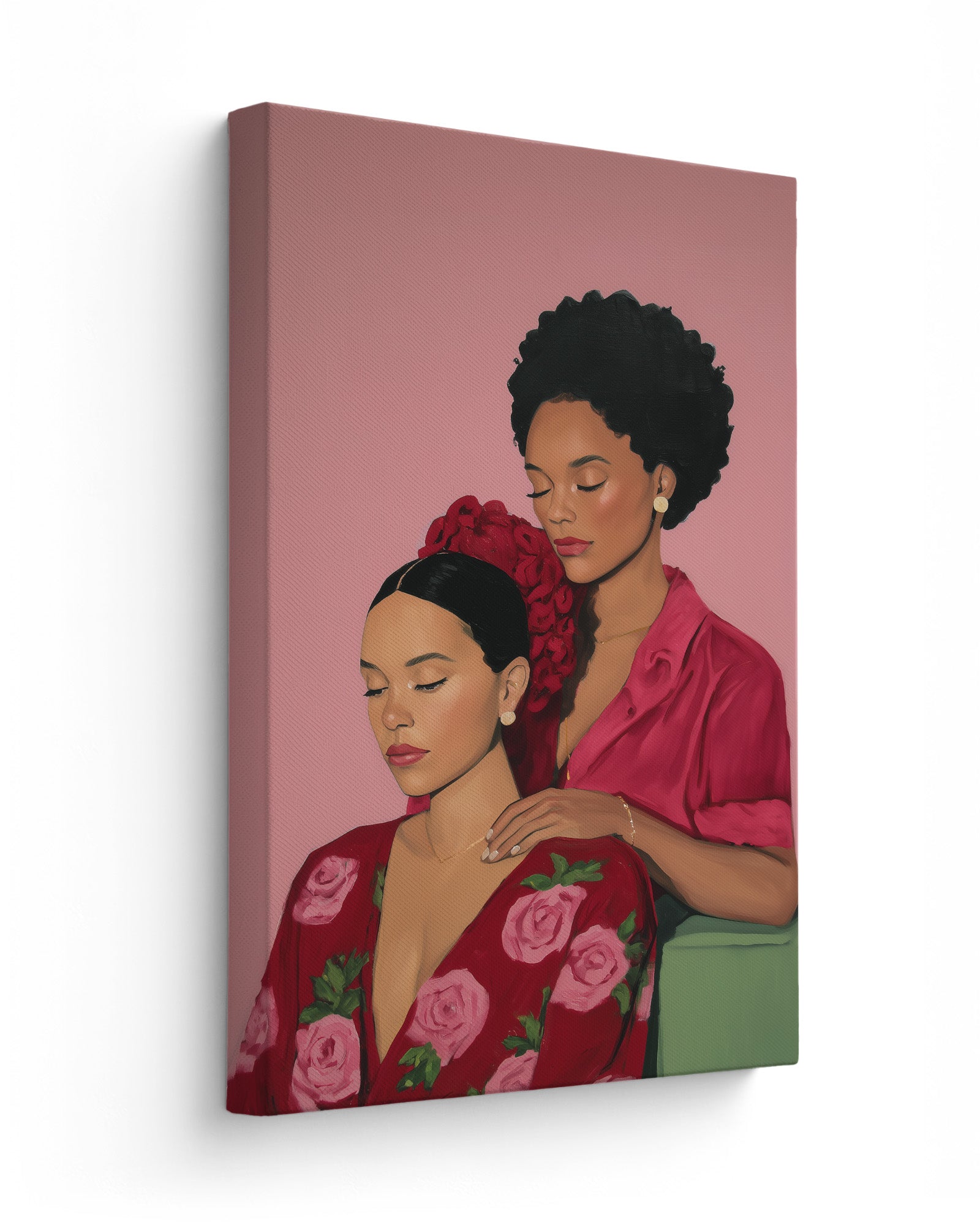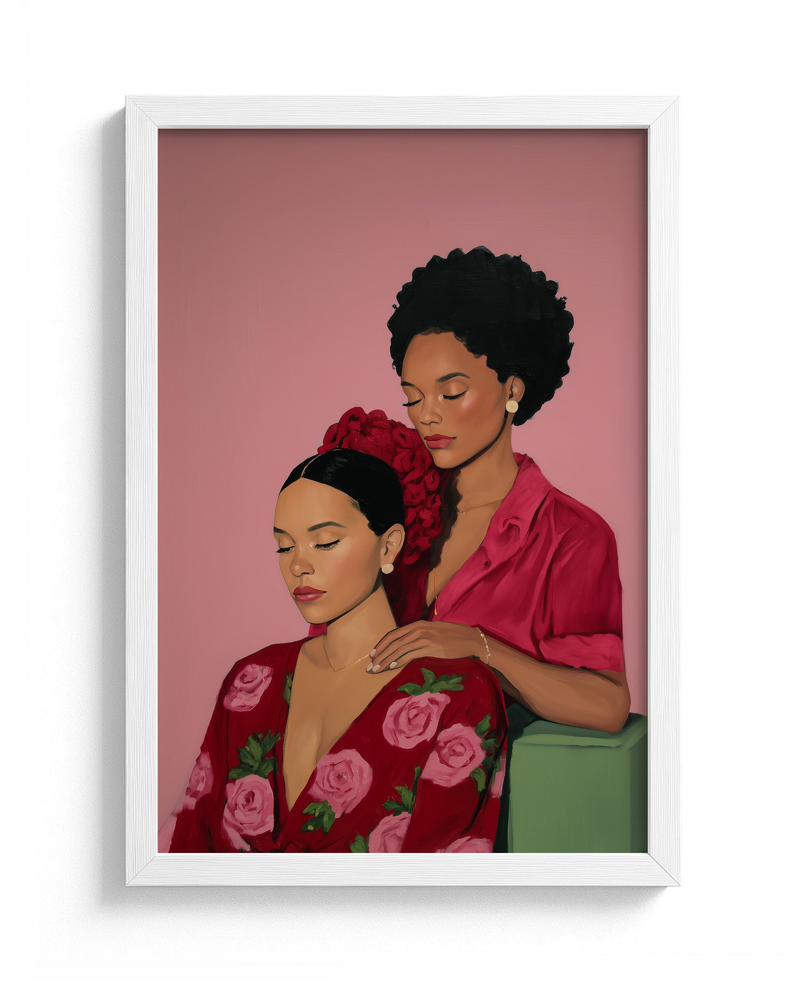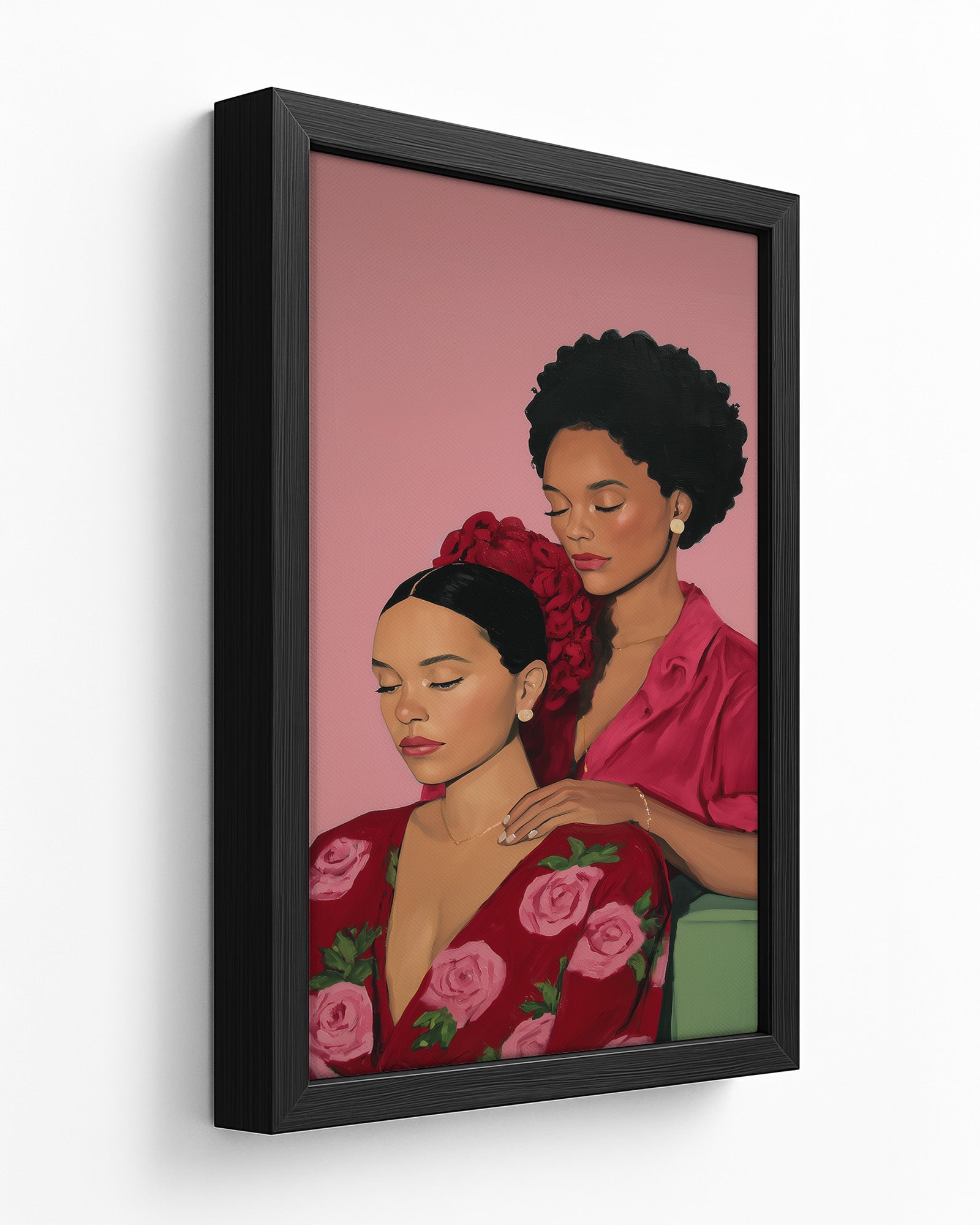 A tender artwork celebrating friendship and sisterhood, showing two women sharing a peaceful moment of care, trust, and deep emotional connection. The gentle gesture between them reflects safety, intimacy, and the beauty of being truly seen and supported by someone who understands you. This piece honors the softness of companionship and the strength found in vulnerability, reminding us that friendship is often expressed through quiet presence, nurturing touch, and shared stillness. It captures how meaningful bonds are built in moments of calm, love, and mutual respect.