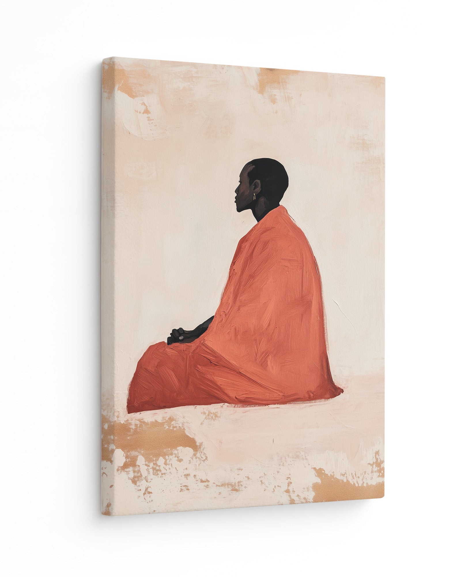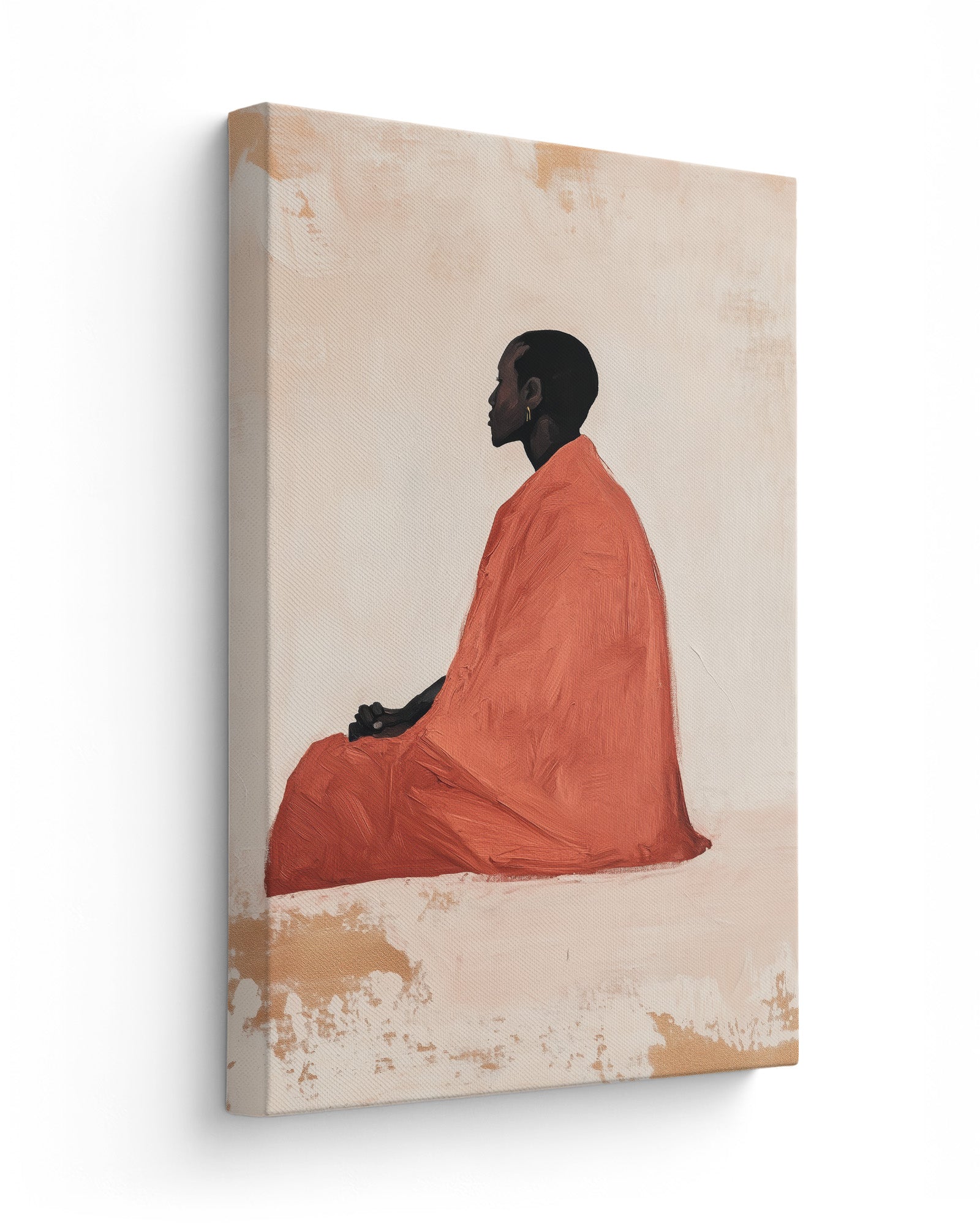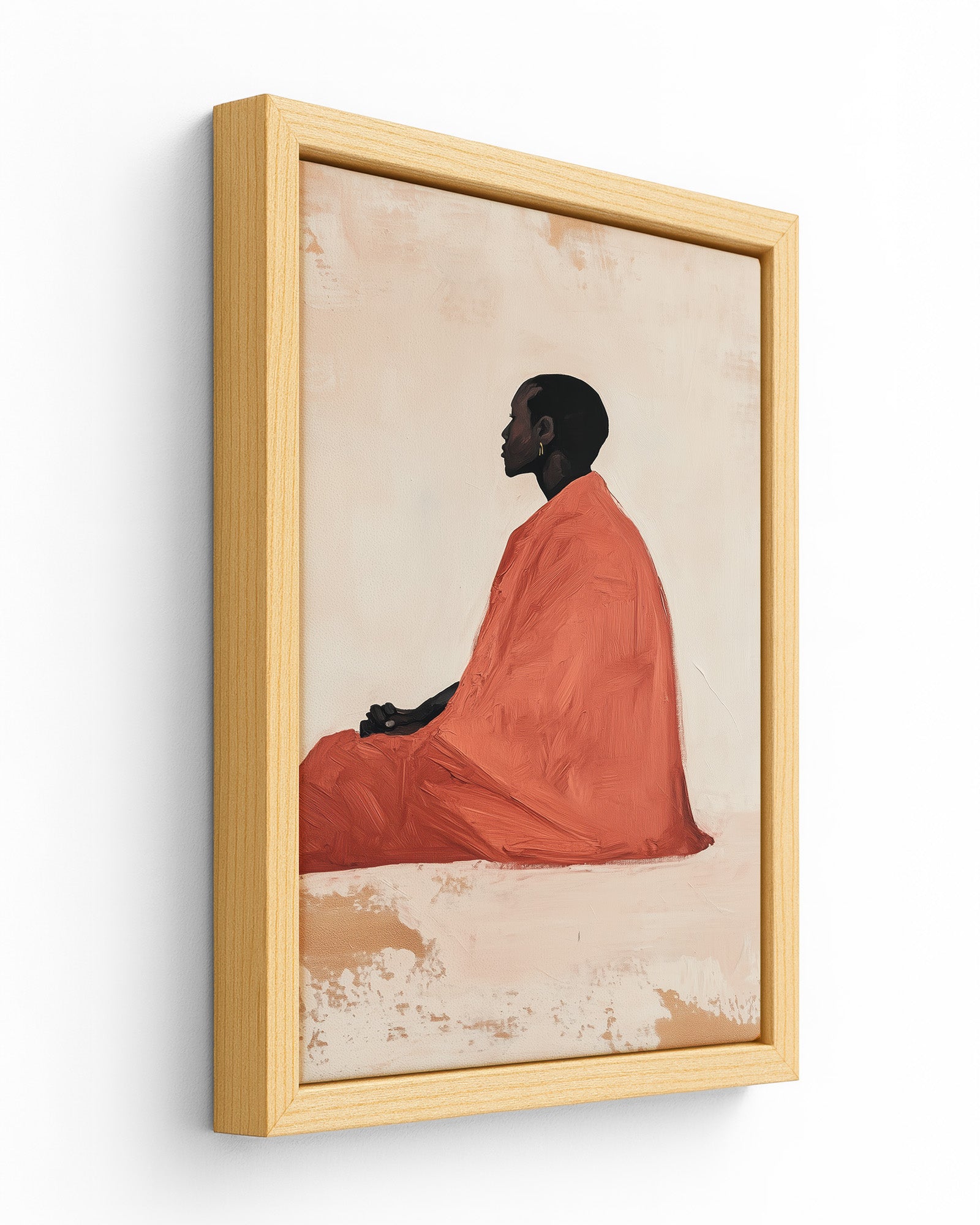 Capture the quiet beauty of cultural heritage with this earthy-tone painting of a woman sitting gracefully, her back turned, wearing a traditional tribal gown. The rich, muted palette of browns, ochres, and deep reds evokes a sense of grounding and connection to the earth, while the soft, abstract lines highlight her natural elegance.