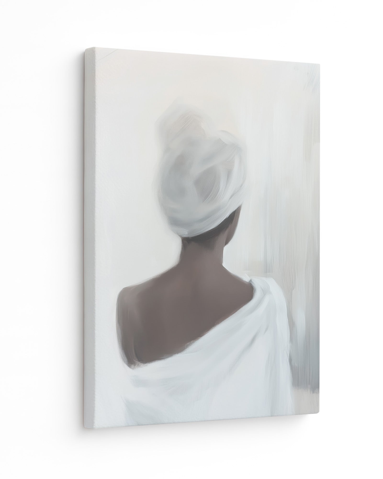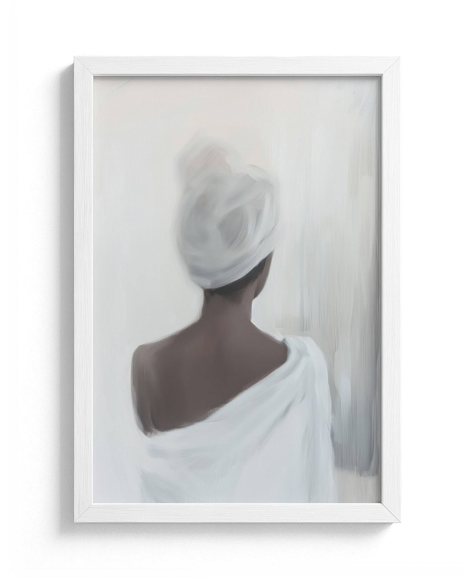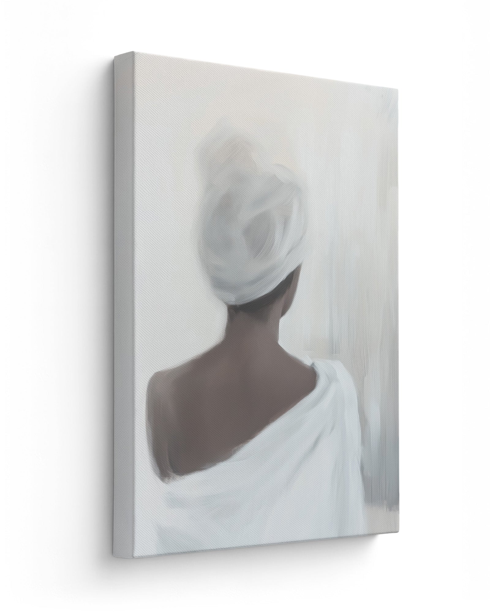 Bathed in misty whites and blurred contours, this piece evokes a sense of calm retreat — a sanctuary of self-care, stillness, and the slow unfolding of morning. Perfect for serene interiors, spas, bedrooms, or anyone drawn to the poetry of peace.