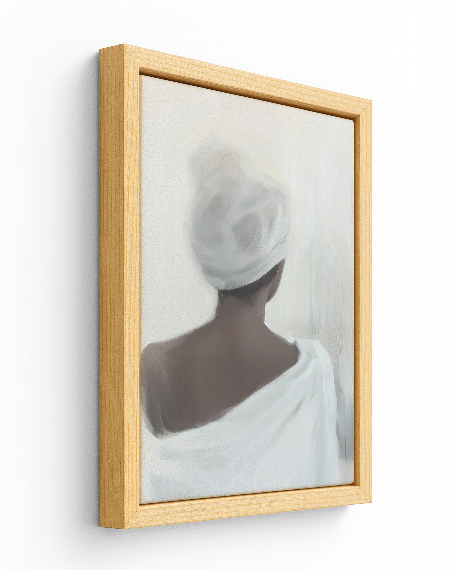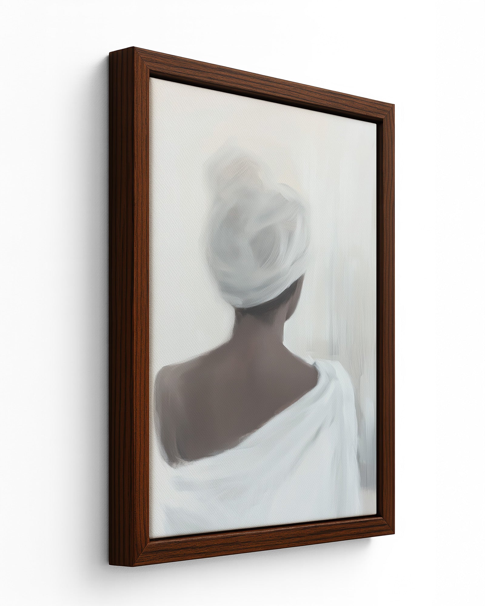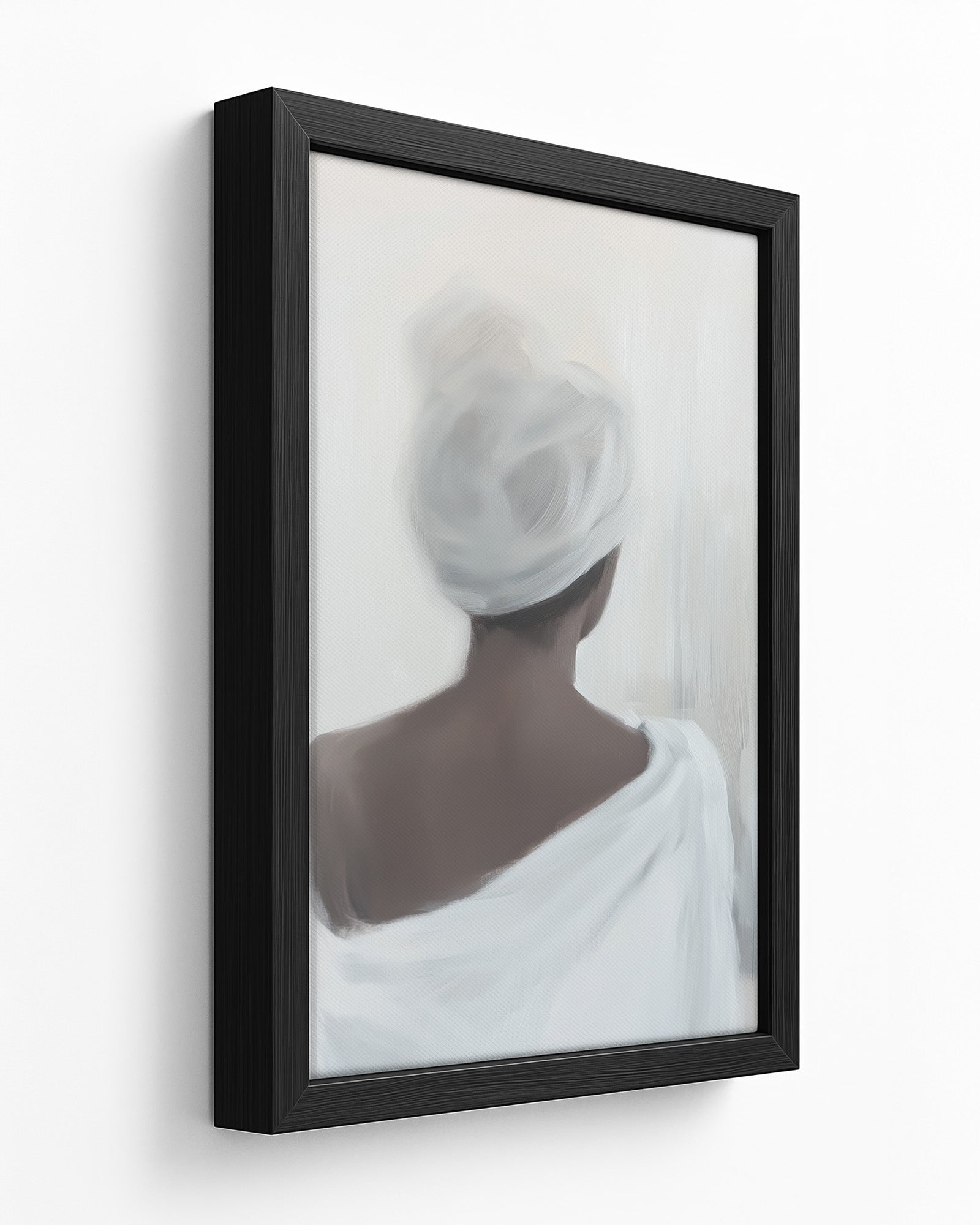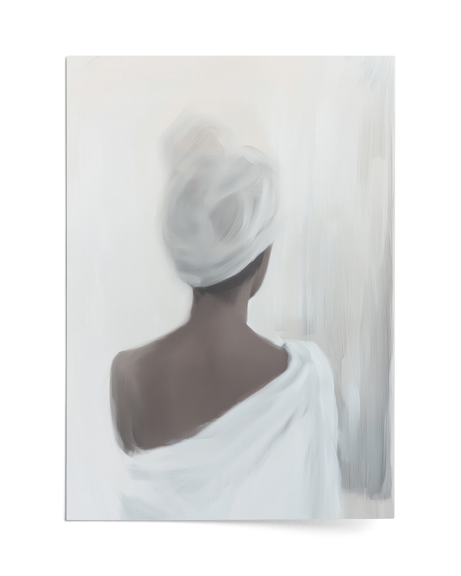 Bathed in misty whites and blurred contours, this piece evokes a sense of calm retreat — a sanctuary of self-care, stillness, and the slow unfolding of morning. Perfect for serene interiors, spas, bedrooms, or anyone drawn to the poetry of peace.