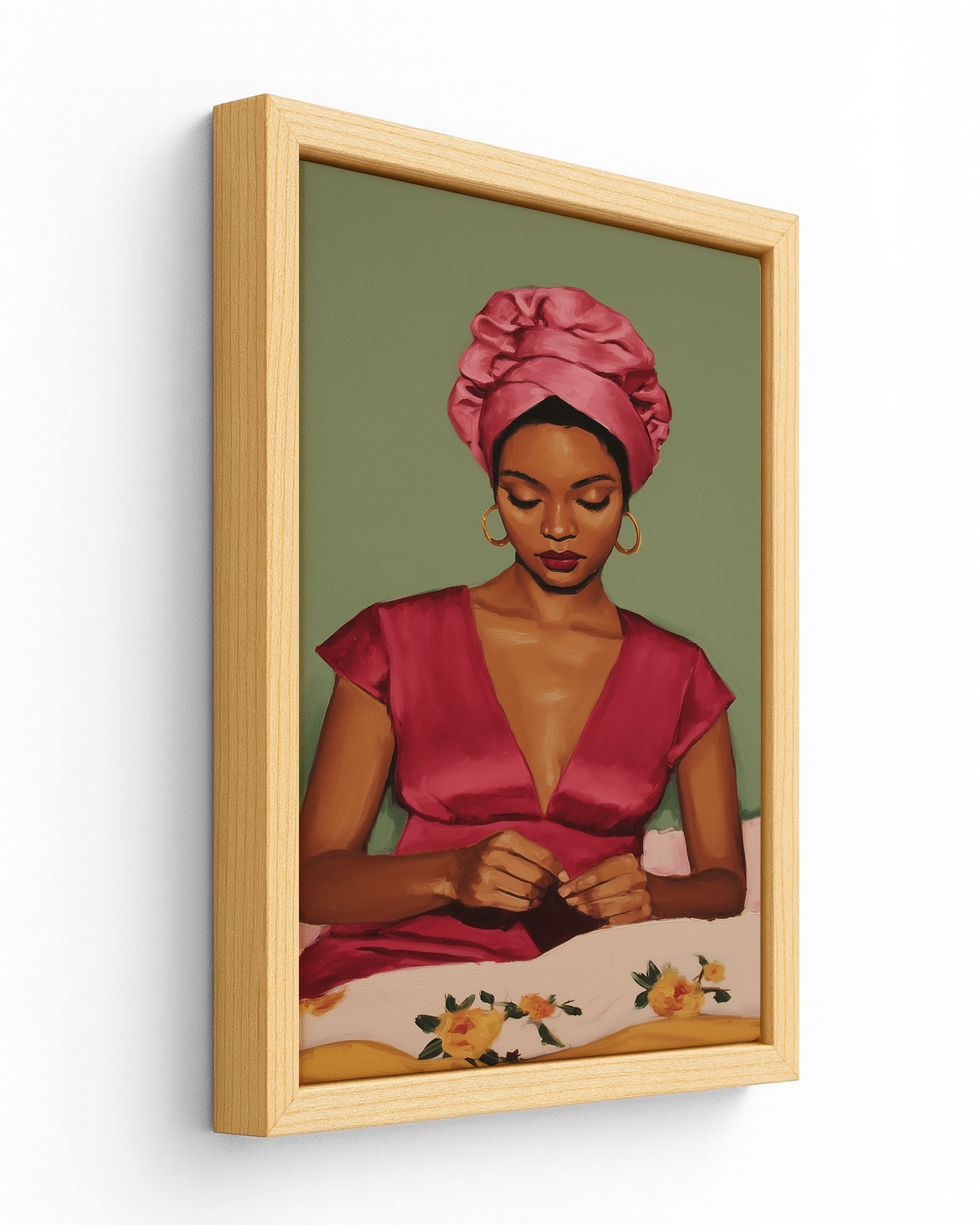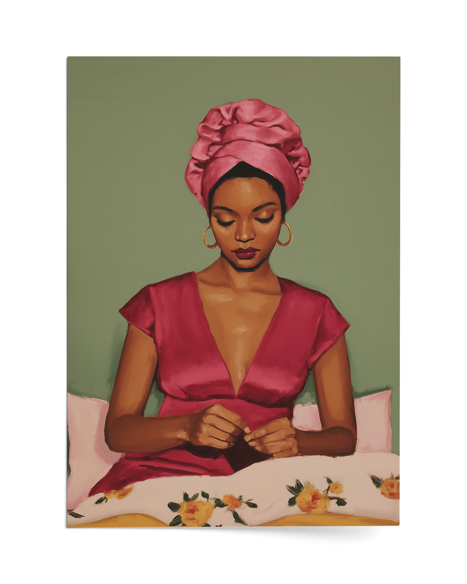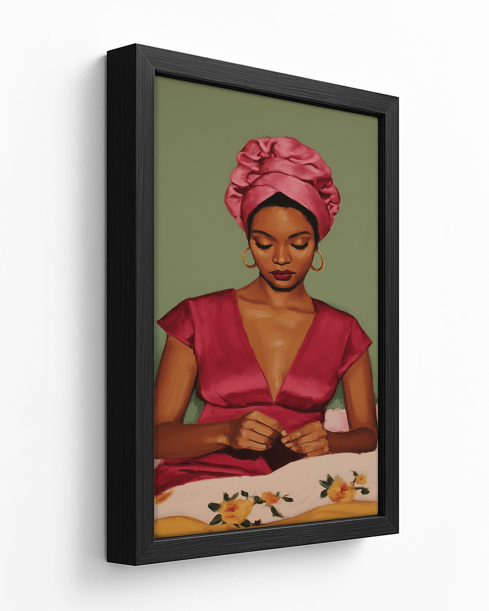 In Her Own Time is a powerful celebration of womanhood, presence, and self-direction. This artwork captures a moment of quiet intention, where preparation becomes an act of self-respect and autonomy. It honours femininity as something defined from within, showing how confidence is built in stillness and personal ritual. A statement piece for spaces that value empowerment, self-awareness, and female-centered storytelling.