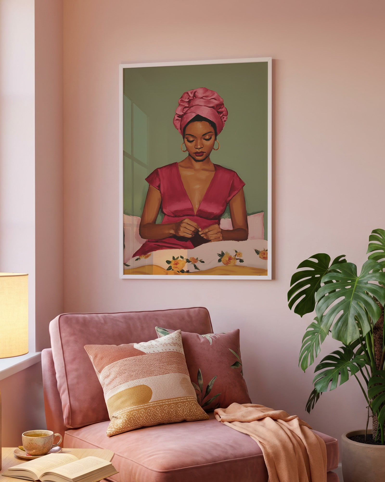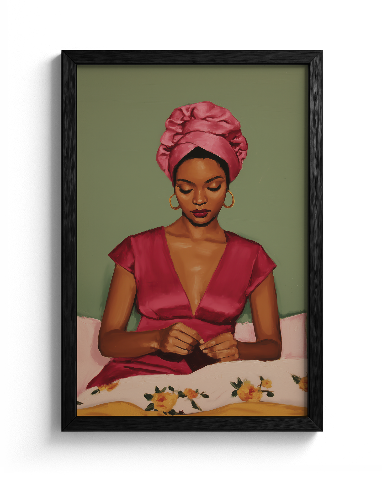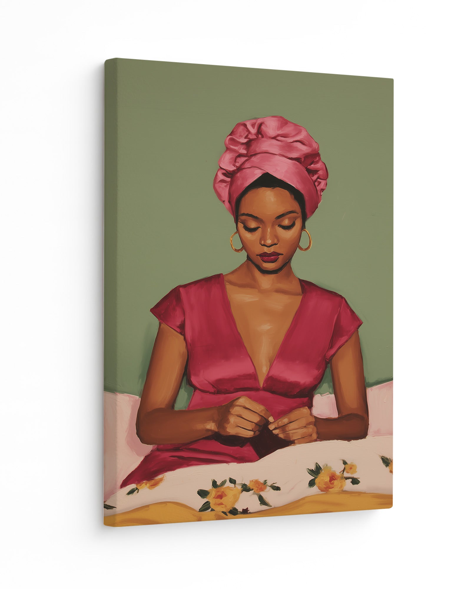 In Her Own Time is a powerful celebration of womanhood, presence, and self-direction. This artwork captures a moment of quiet intention, where preparation becomes an act of self-respect and autonomy. It honours femininity as something defined from within, showing how confidence is built in stillness and personal ritual. A statement piece for spaces that value empowerment, self-awareness, and female-centered storytelling.