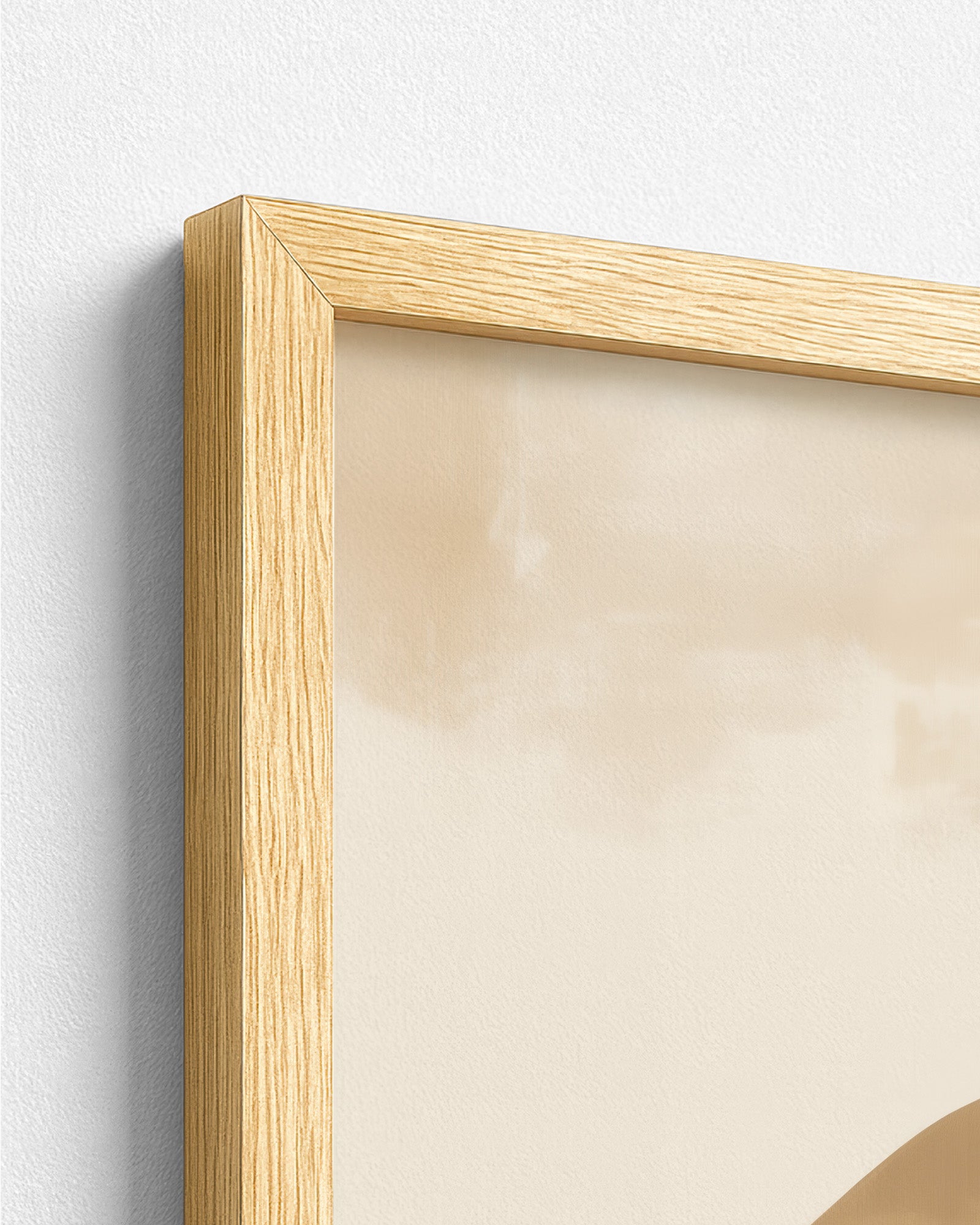 Premium artwork printed on high-quality paper, professionally mounted within a durable pine wood frame.