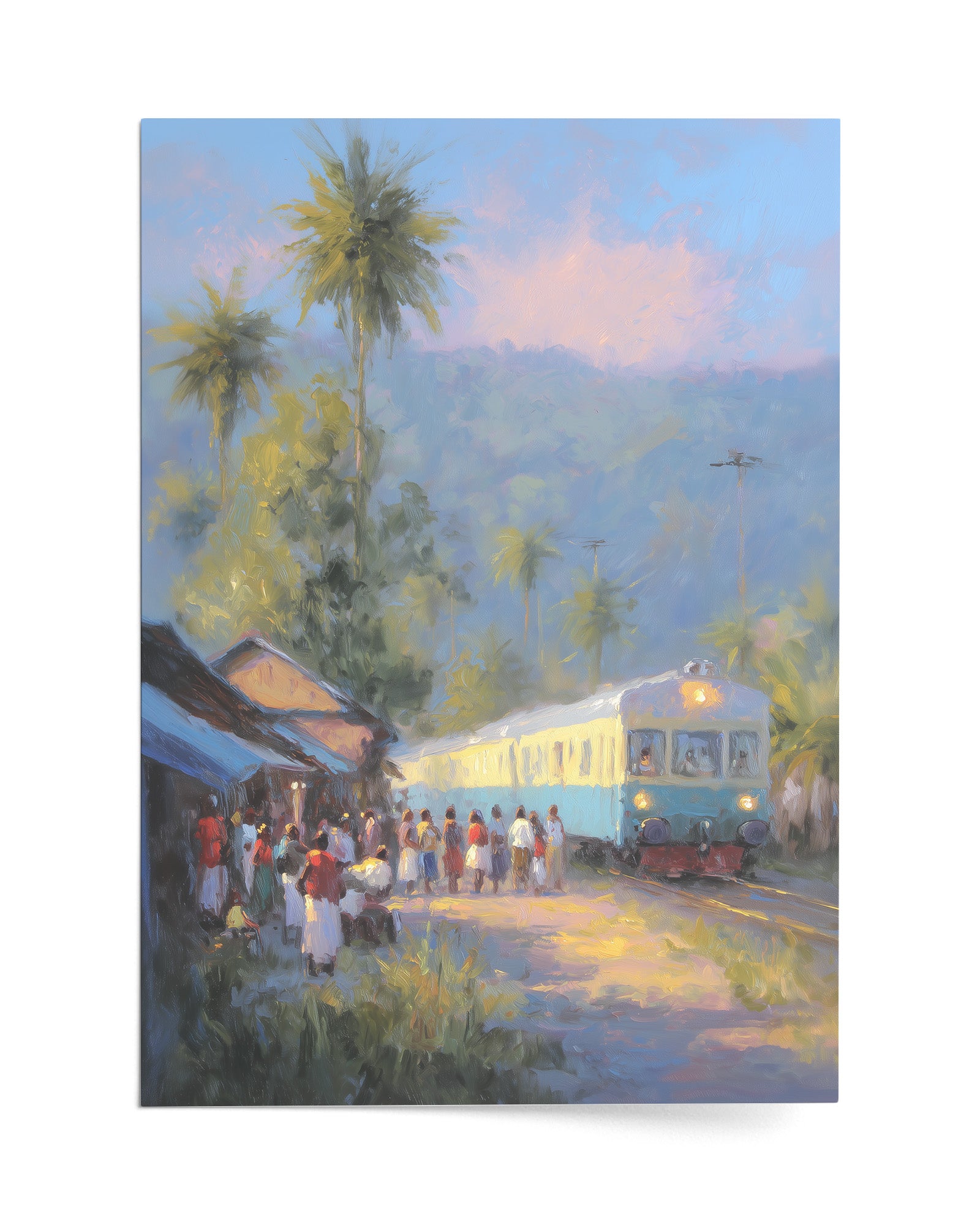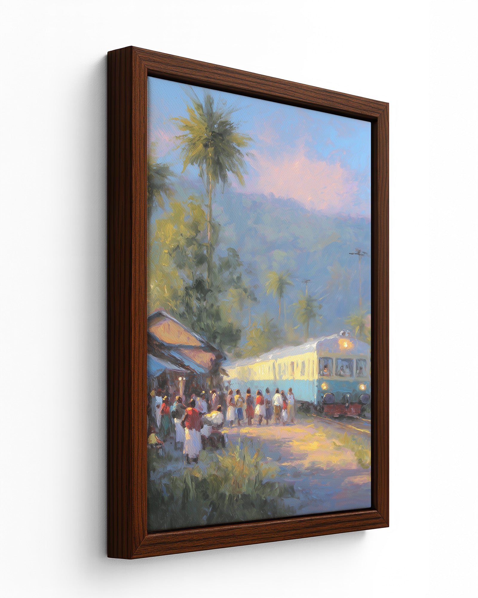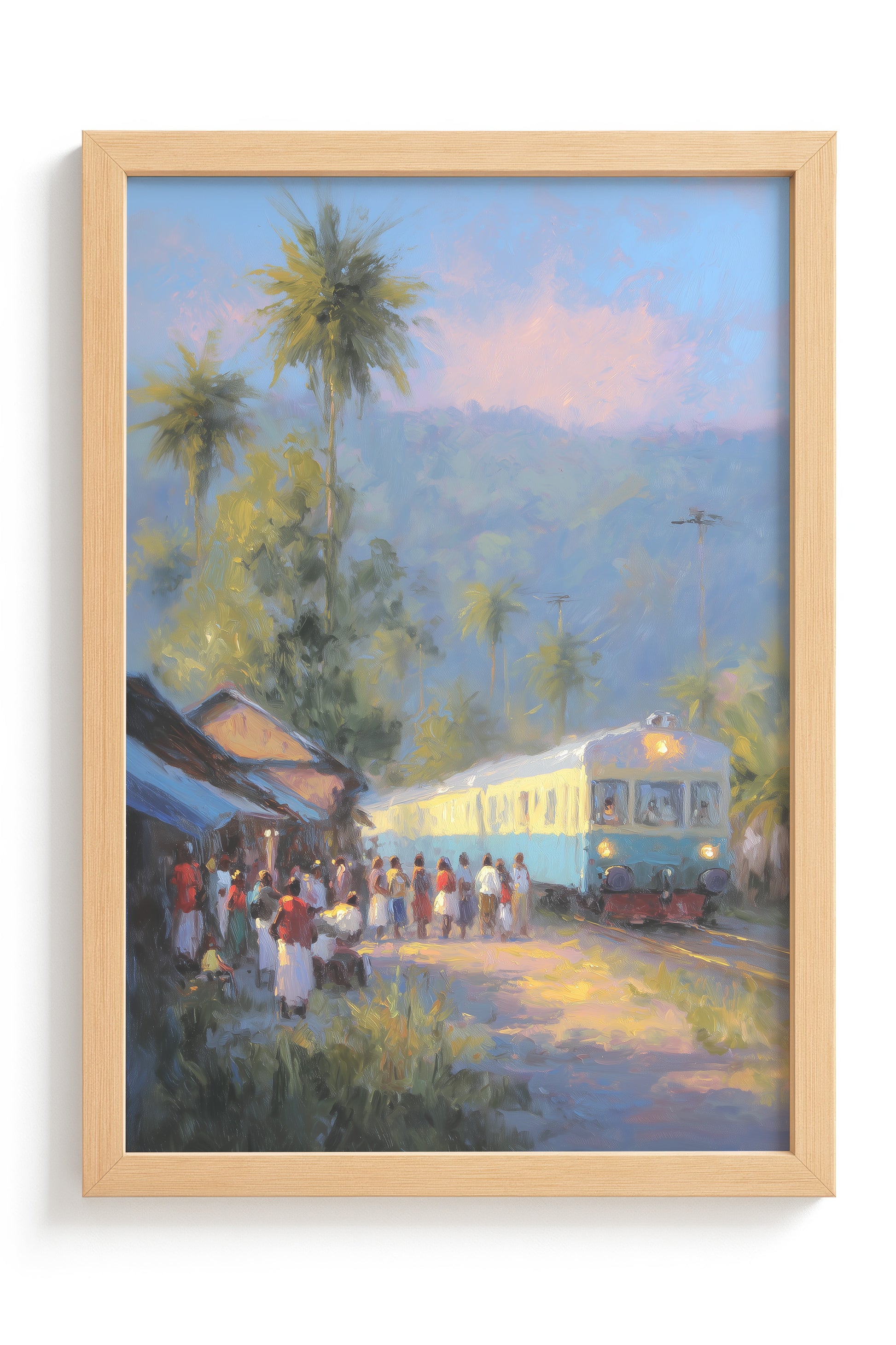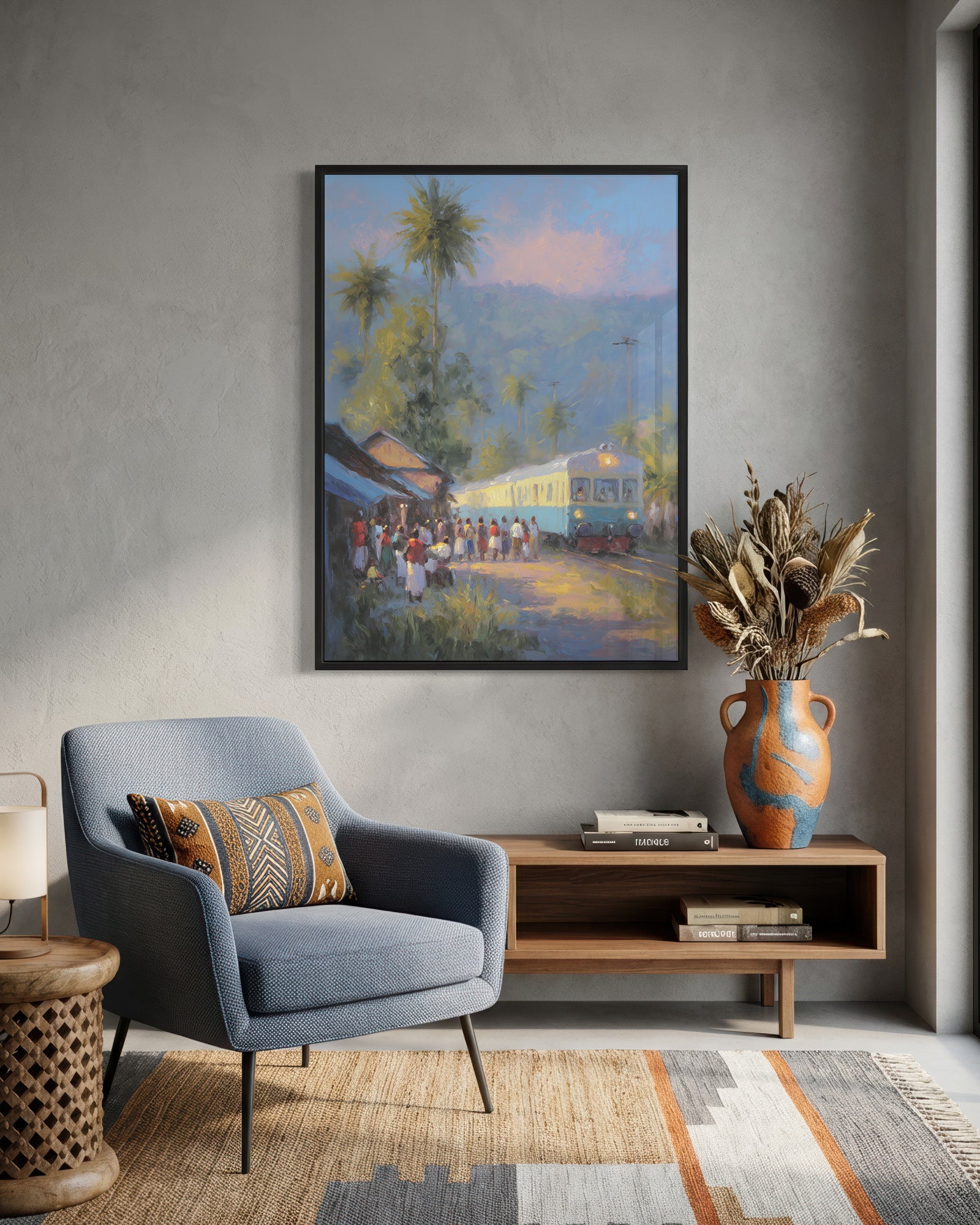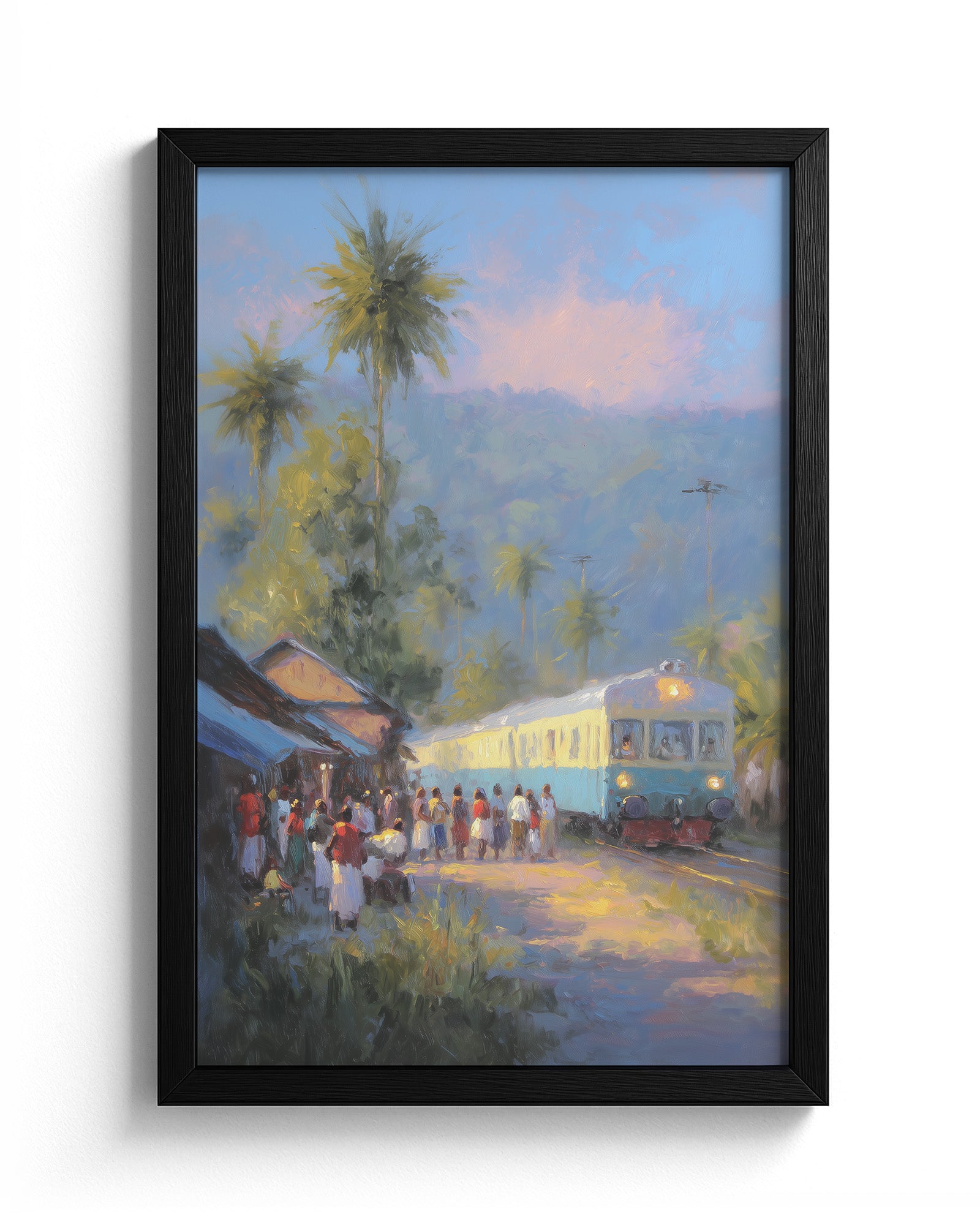 Katanga Rails Call: Art on Congo's Mining Diaspora, Katanga's Extraction Economy, and the Sacred Homecoming of Those Who Labored in Darkness. This moving composition honors the return of Katanga's scattered miners and their families—those who left the interior for the dangerous work of extracting Congo's mineral wealth—revealing how the train becomes vessel through which they finally claim return from the mines that claimed their health and years.