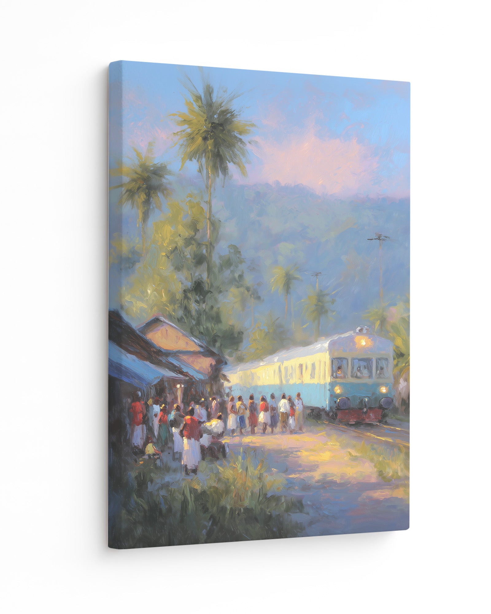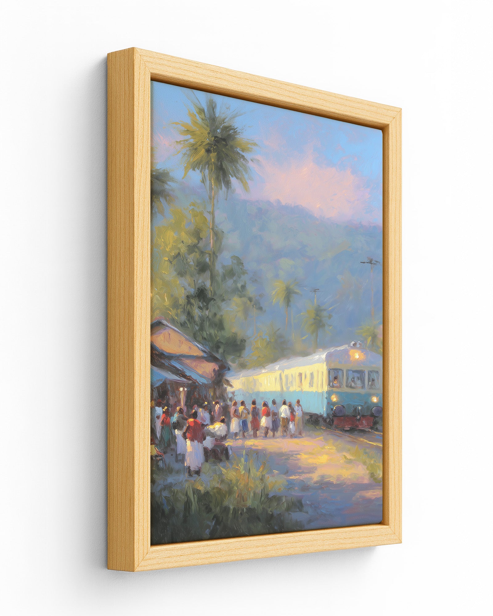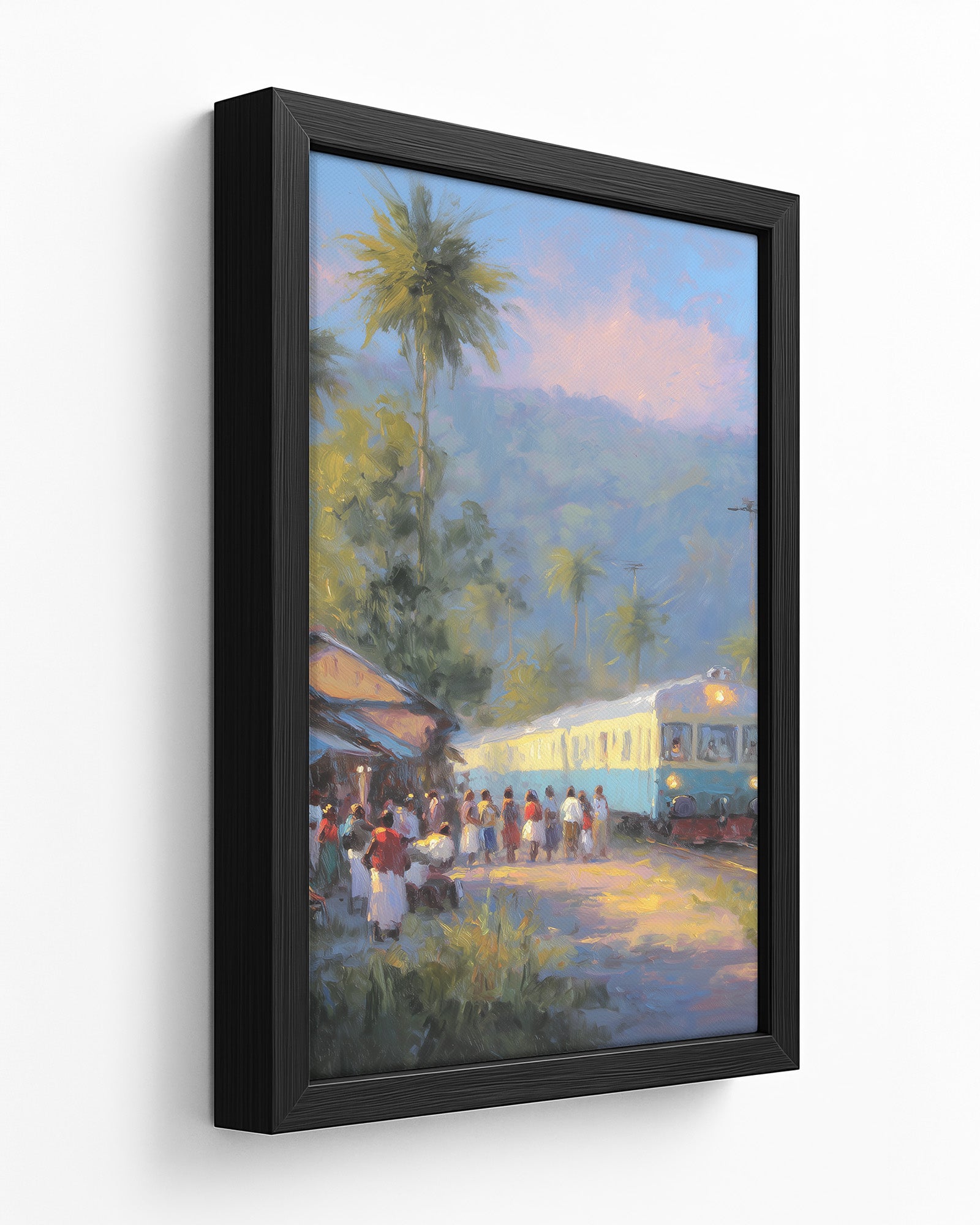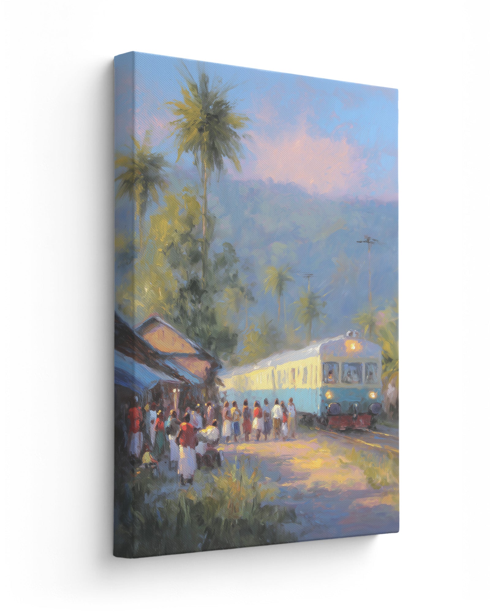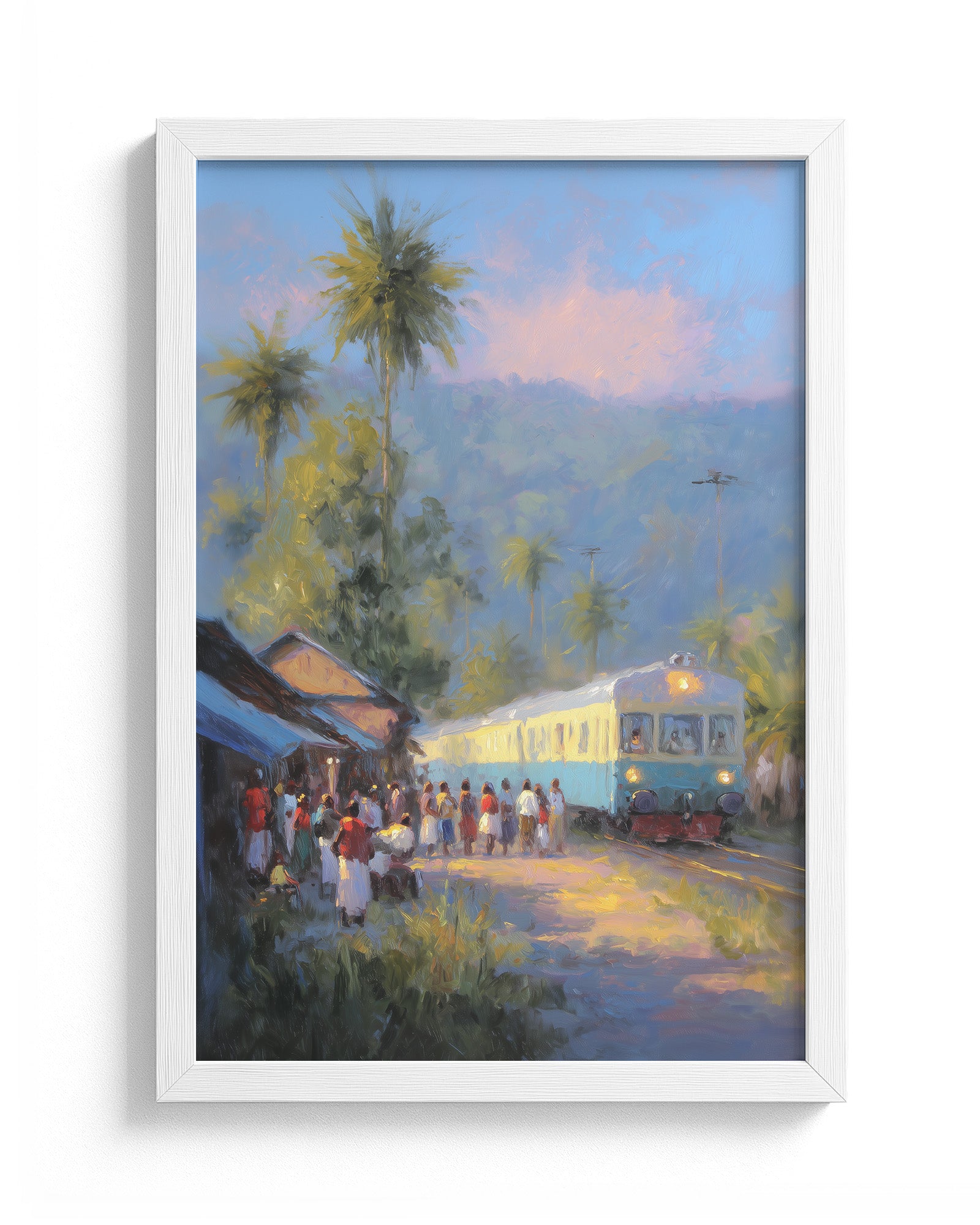 Katanga Rails Call: Art on Congo's Mining Diaspora, Katanga's Extraction Economy, and the Sacred Homecoming of Those Who Labored in Darkness. This moving composition honors the return of Katanga's scattered miners and their families—those who left the interior for the dangerous work of extracting Congo's mineral wealth—revealing how the train becomes vessel through which they finally claim return from the mines that claimed their health and years.